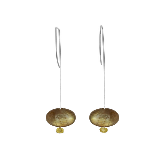 Straight Drop Earrings with Labradorite and Round Beads