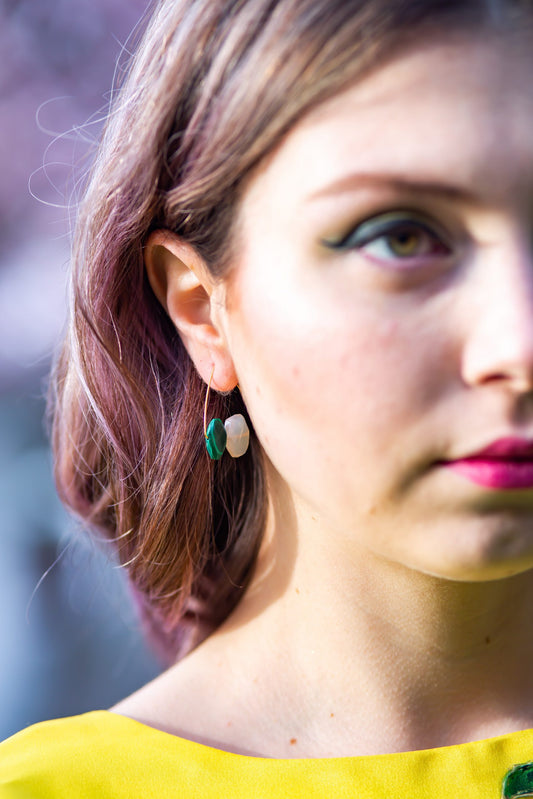 Short Curve Earrings with Rhodochrosite, Yellow Agate and Opal (Pearl options)