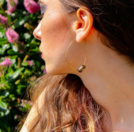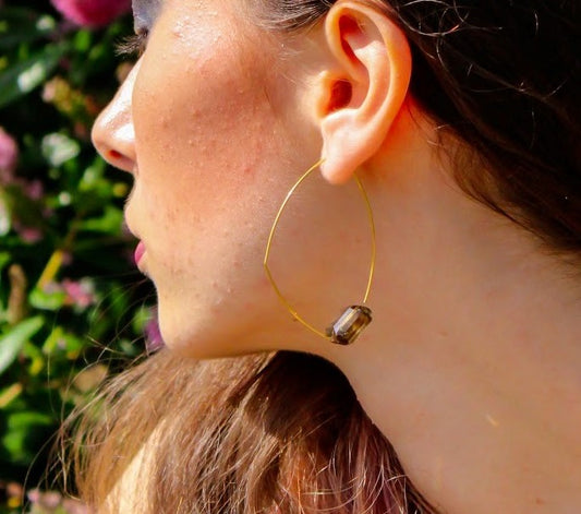 Triangle Loop Earrings with Sea Bamboo and Kyanite