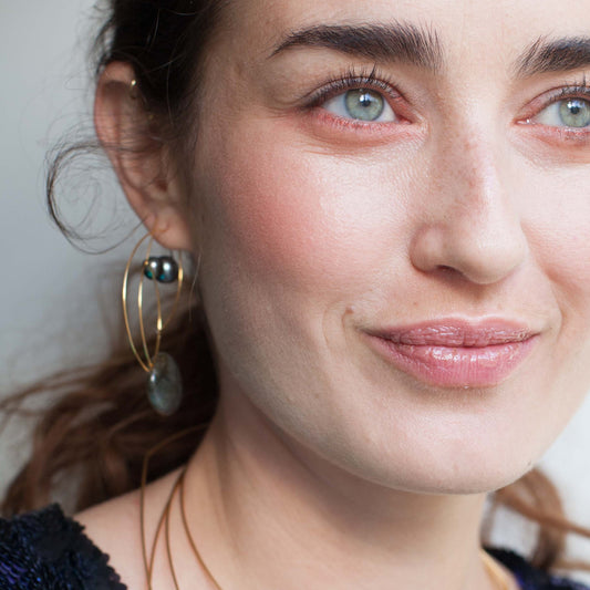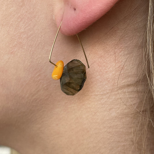 Petite Triangle Lobe Huggers with Labradorite and Green & Orange Sea Bamboo