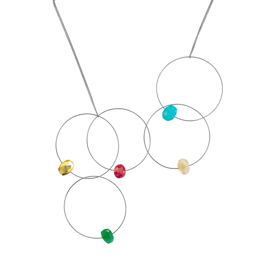 'Morph it!' Hoop Necklace with Multi Coloured Gemstones