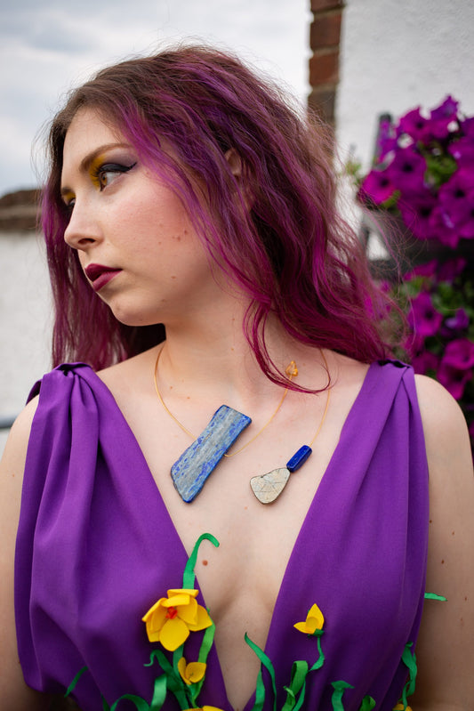 Asymmetric Necklace with Lapis Lazuli, Pyrite and Citrine