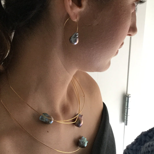 Asymmetric Neckwire with Large Grey Baroque Pearls