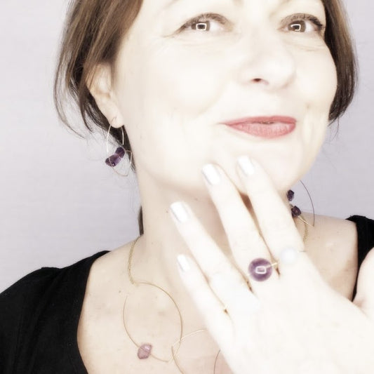 Large Triangle Loop Earrings with hand-cut Gemstones