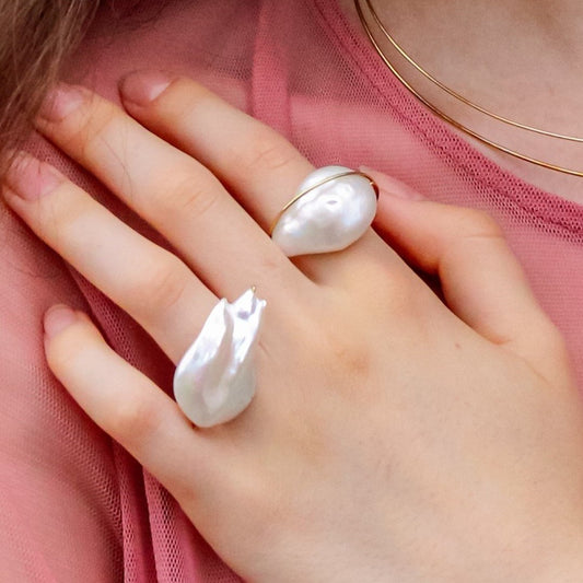 Circle Wrap Ring with Peach Ripley Baroque Pearl or Round Freshwater Pearl options