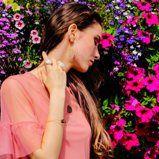 Triangle Ring with Peach Ripley Baroque or Freshwater Pearl (14mm)
