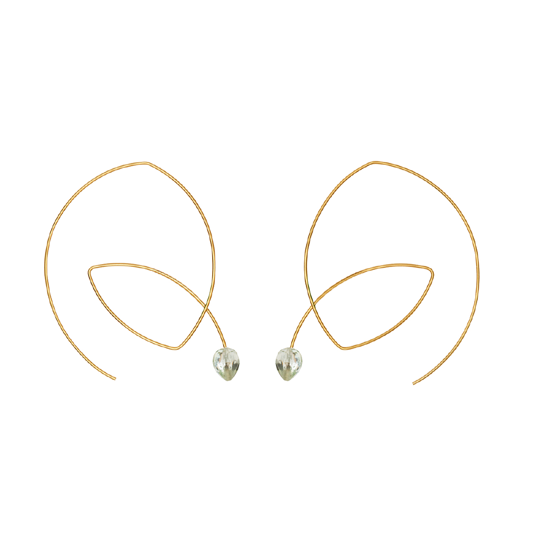 A contemporary pair of angled loop earrings set with glassy, beautiful gems. These statement earrings would pair perfectly with a crisp white dress!