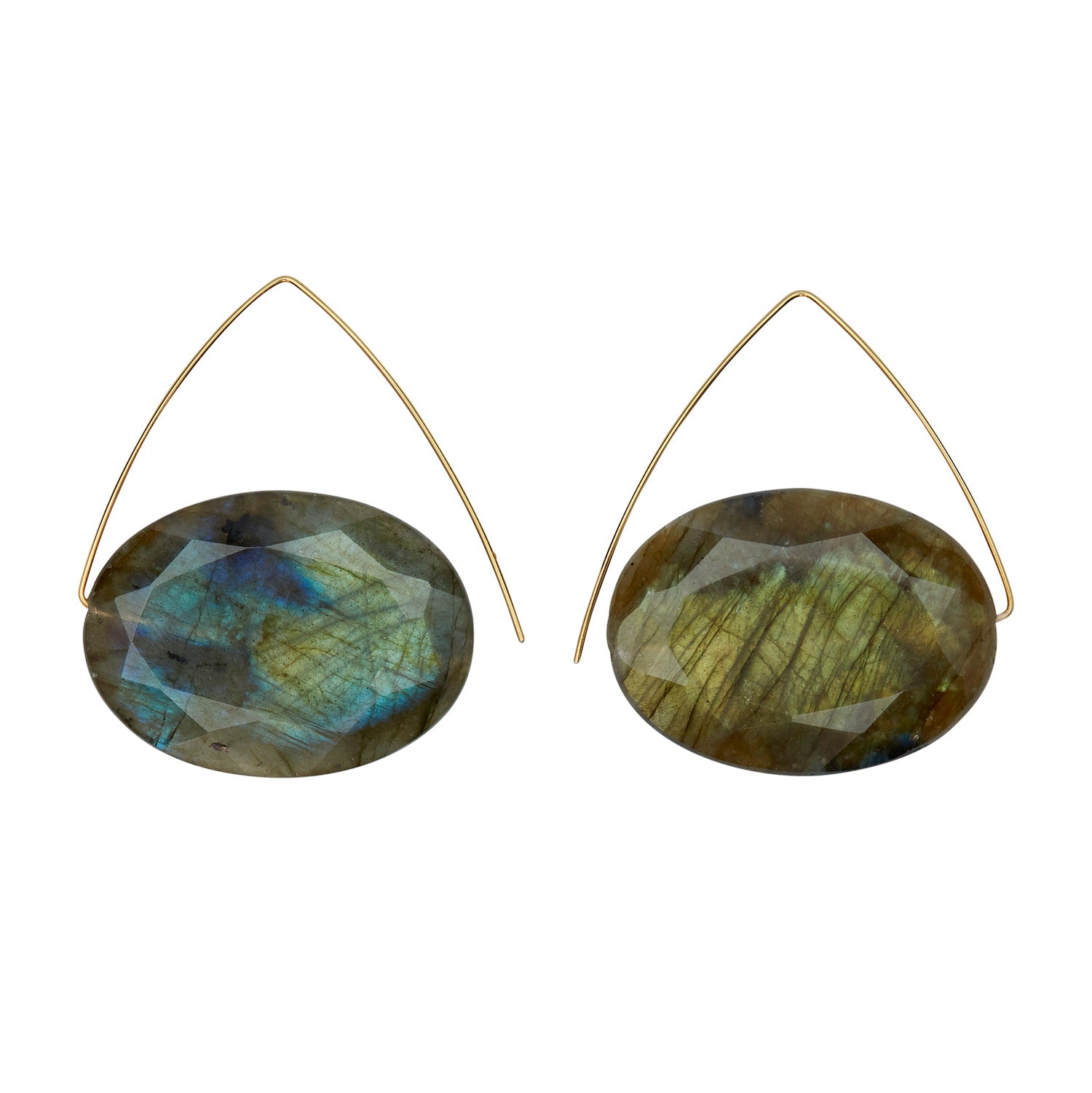 Quite simply a beautiful minimal design to highlight these beautiful Labradorite gemstones. The large cut facets showcase the beautiful range of colours found in this natural stone. A bold pair of earrings for lovers of Labradorite.
