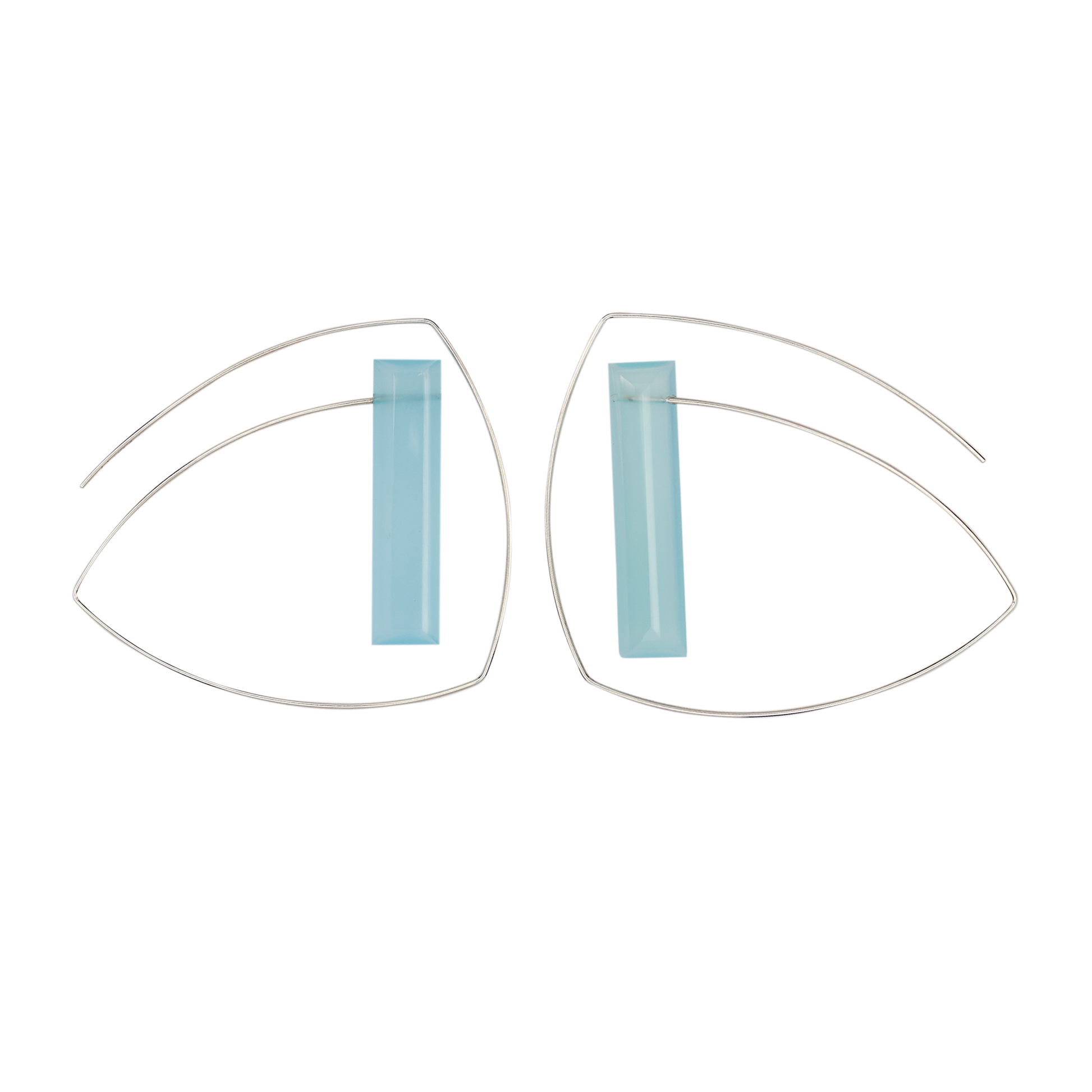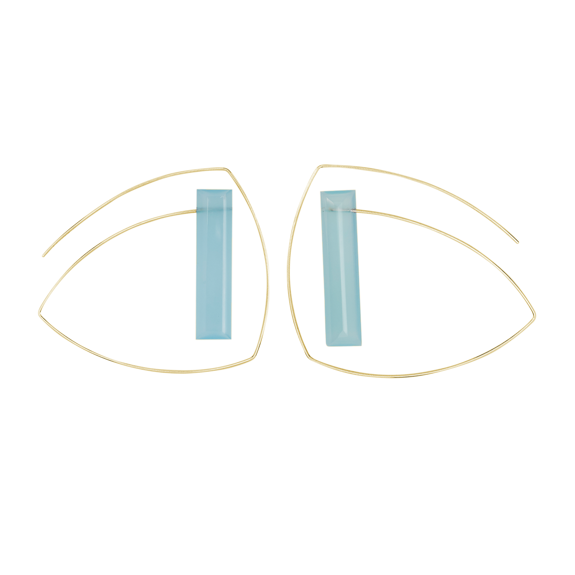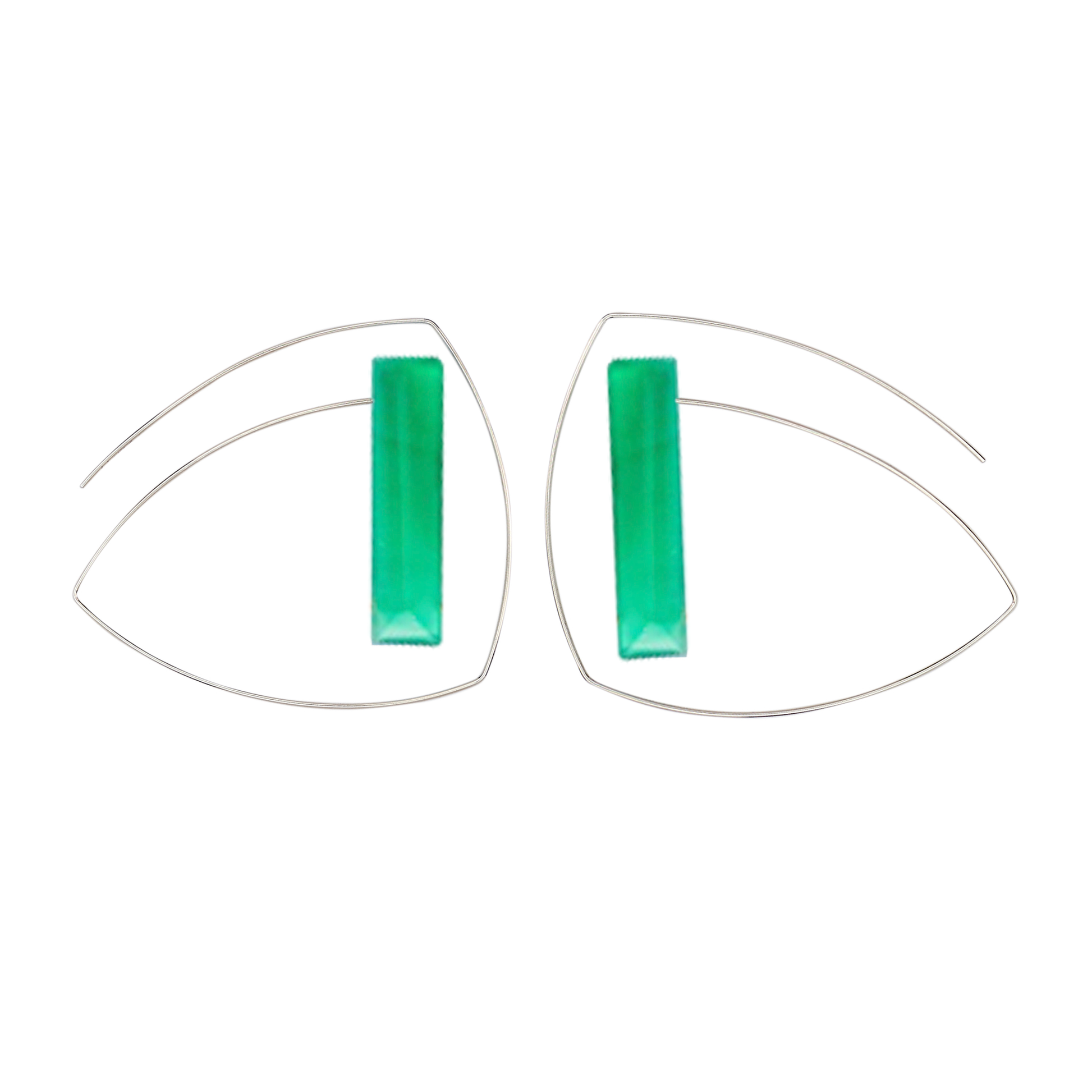 Large Triangle Loop Earrings with hand-cut Gemstones