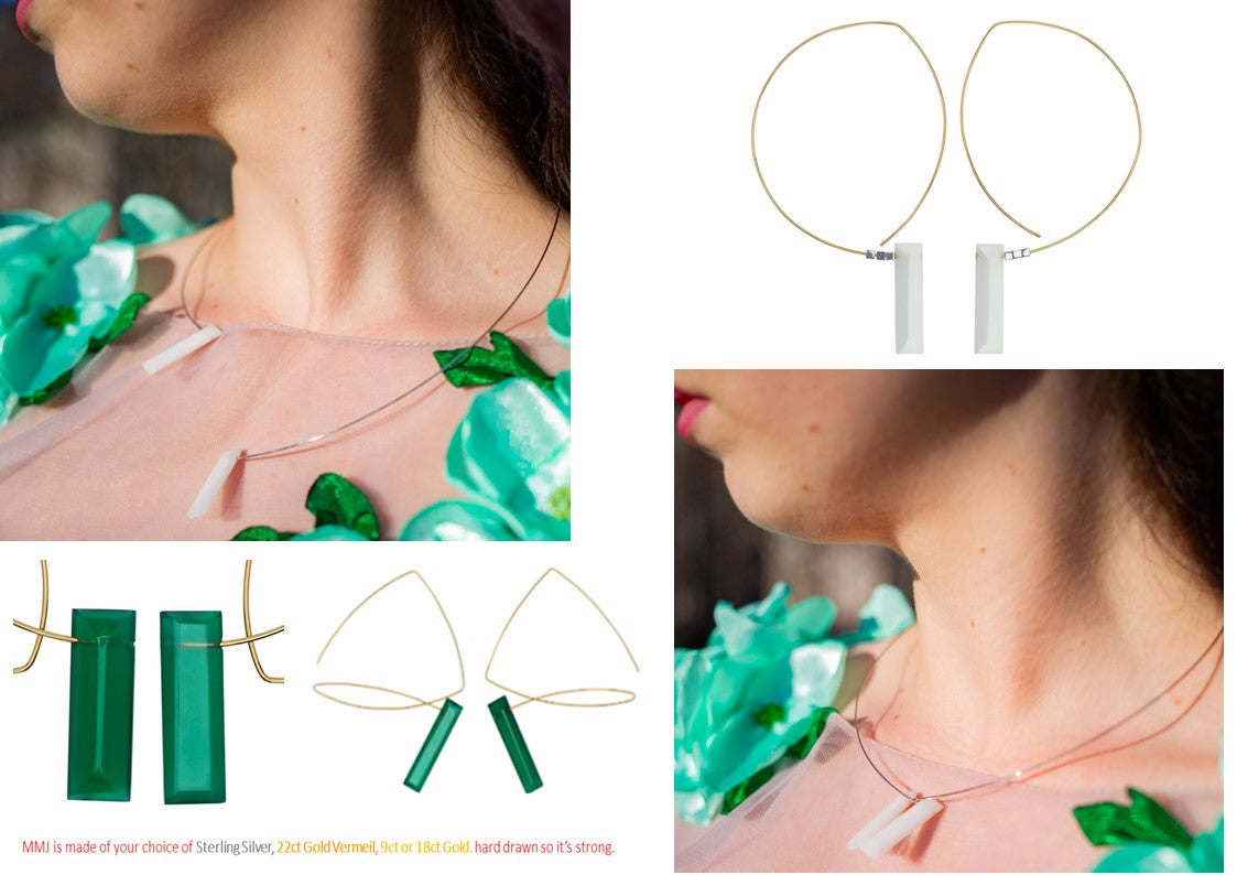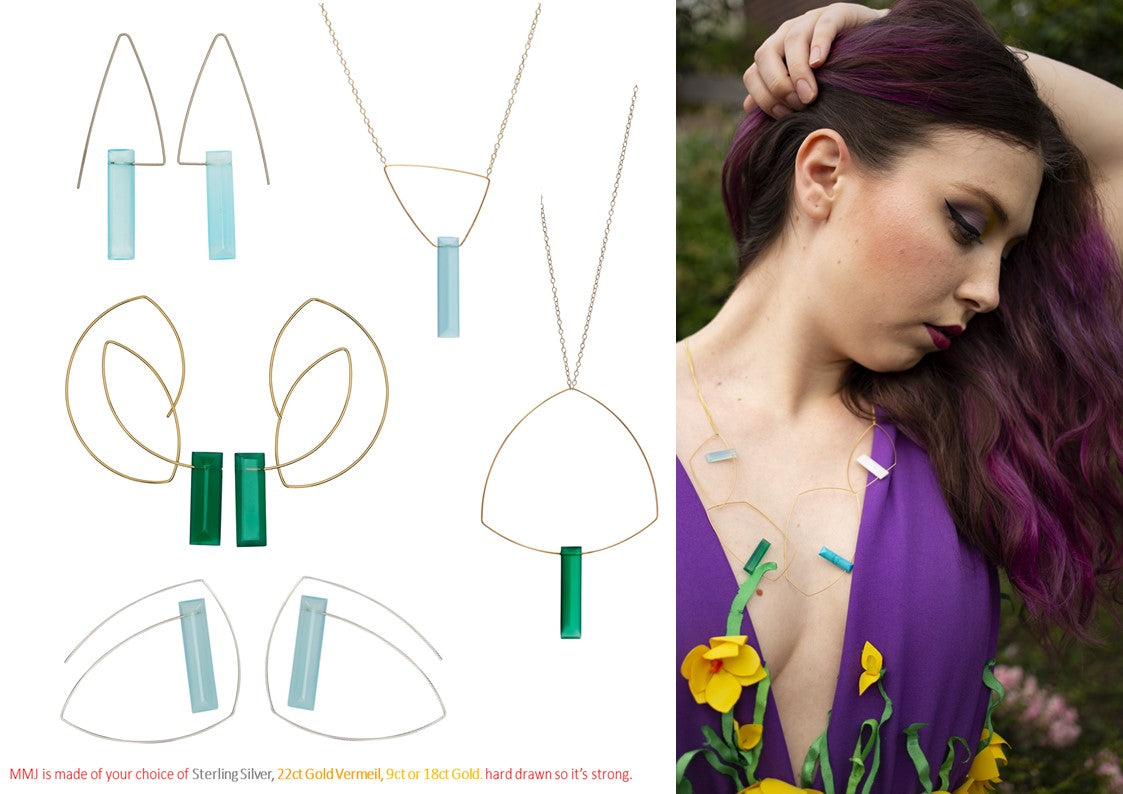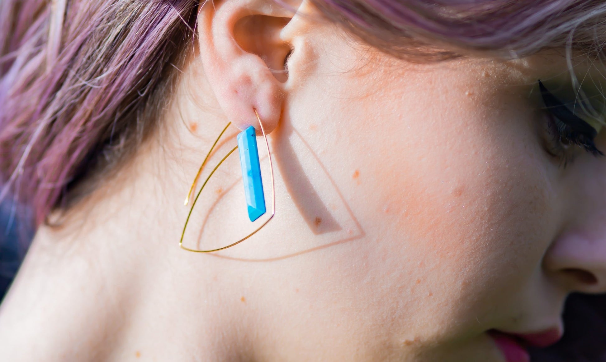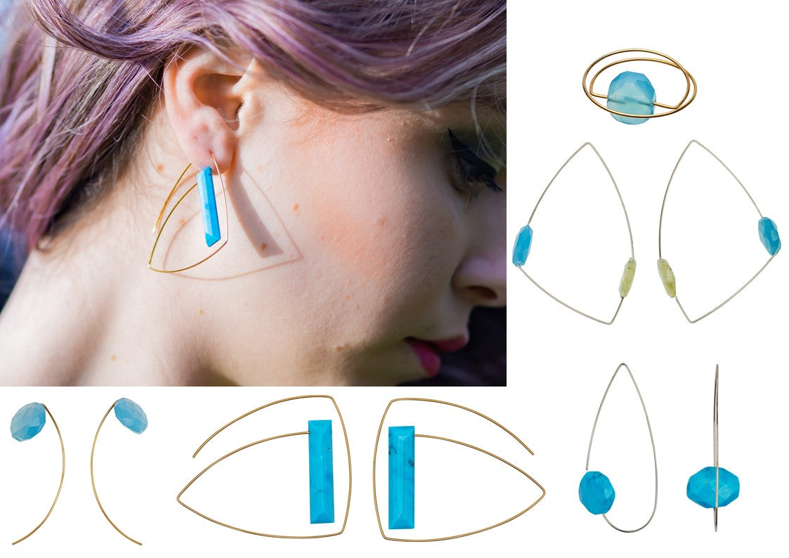 Large Triangle Loop Earrings with hand-cut Gemstones