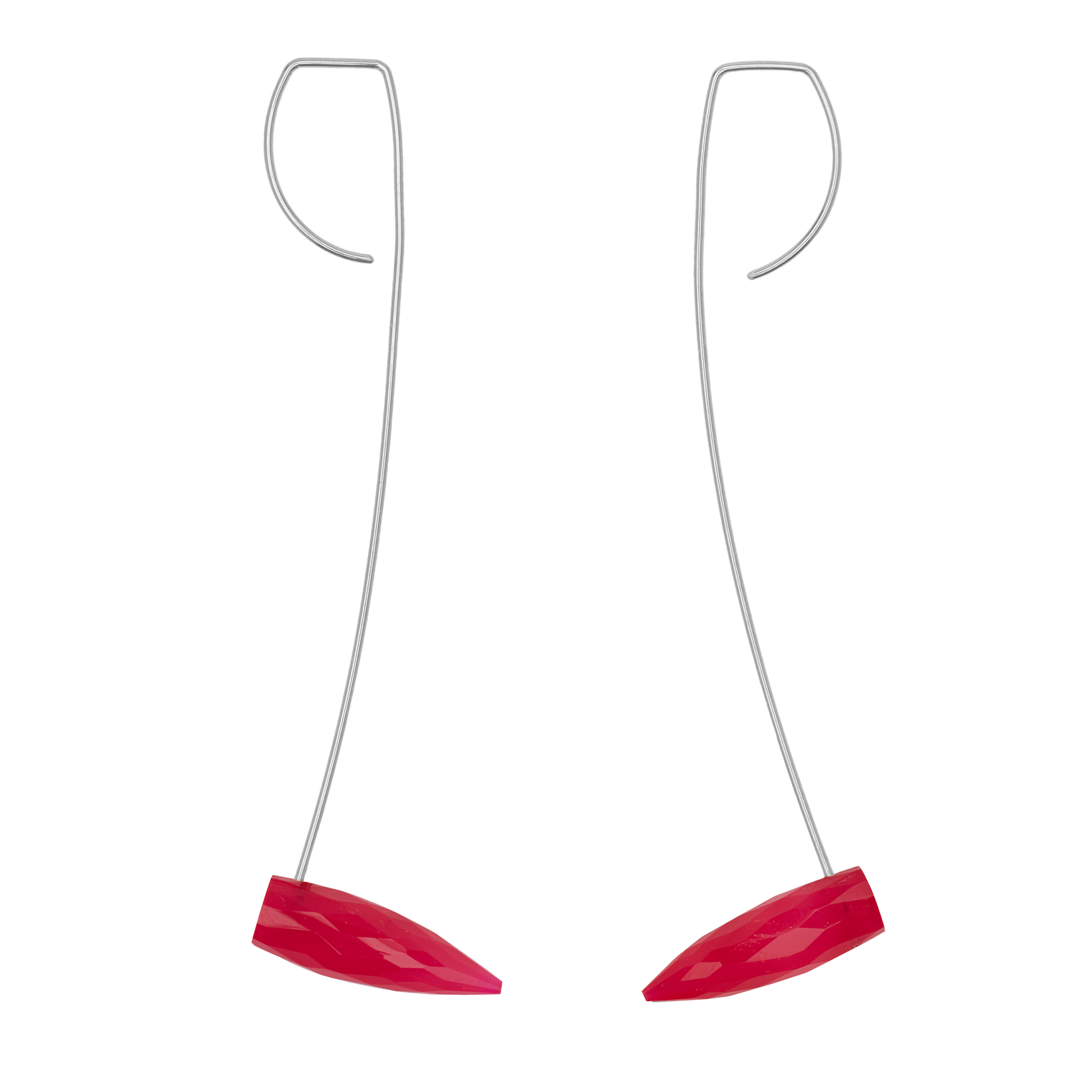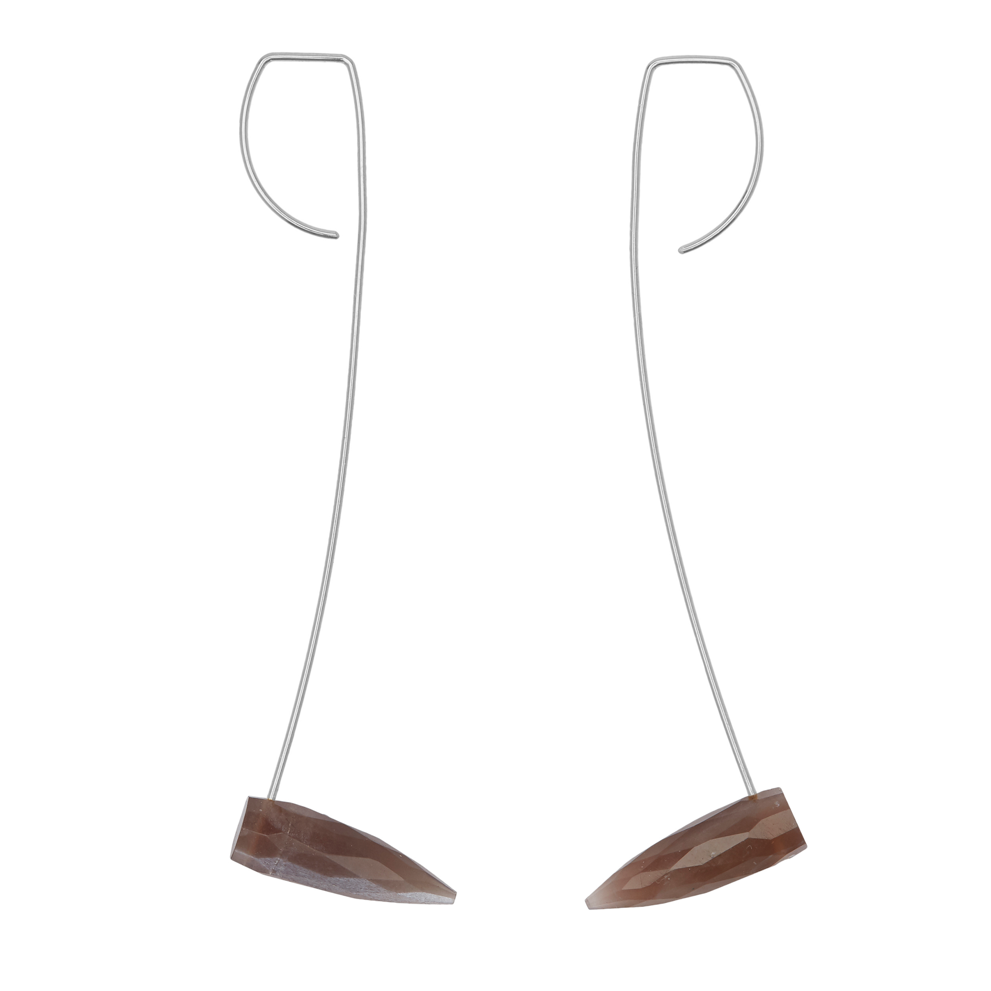 Bullet gemstone, named after its shape, is truly beautiful with its iridescent flashes. A mystifying gemstone to showcase these beautiful drop earrings.