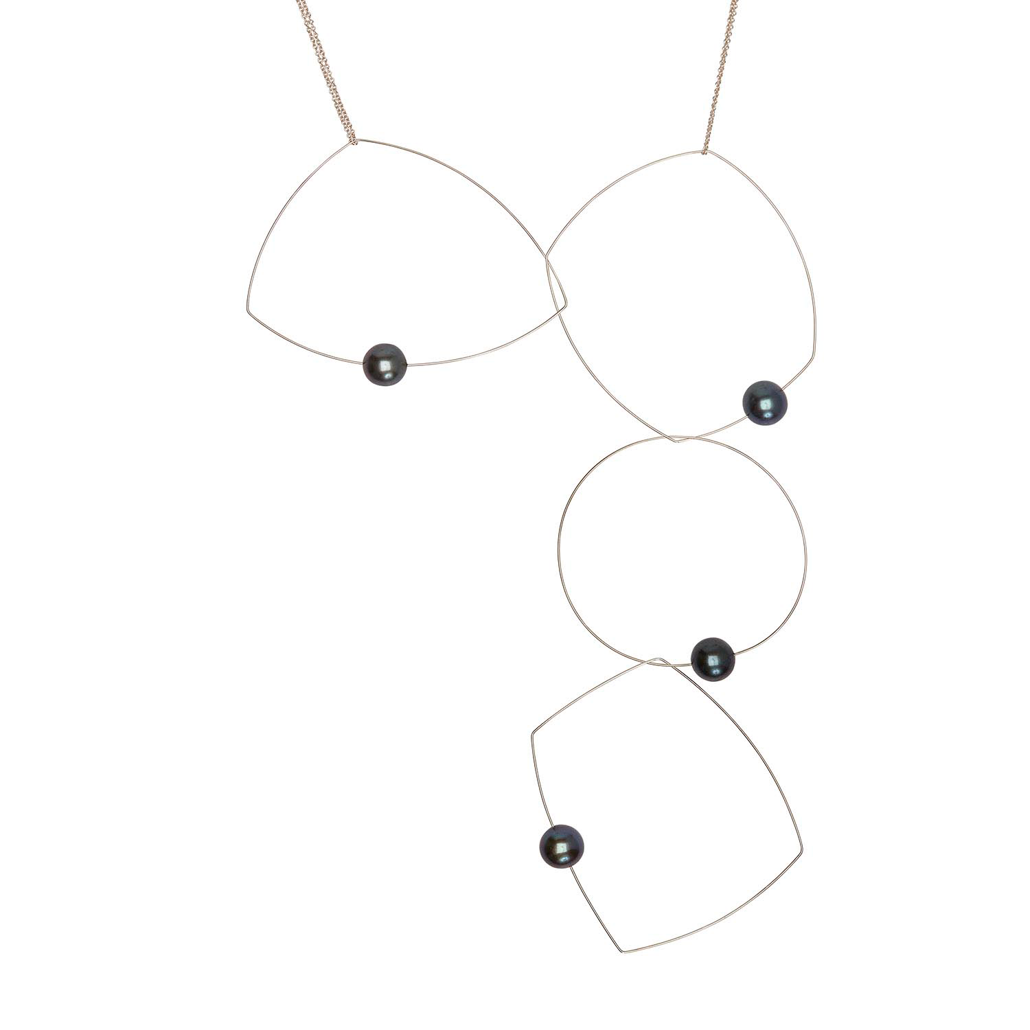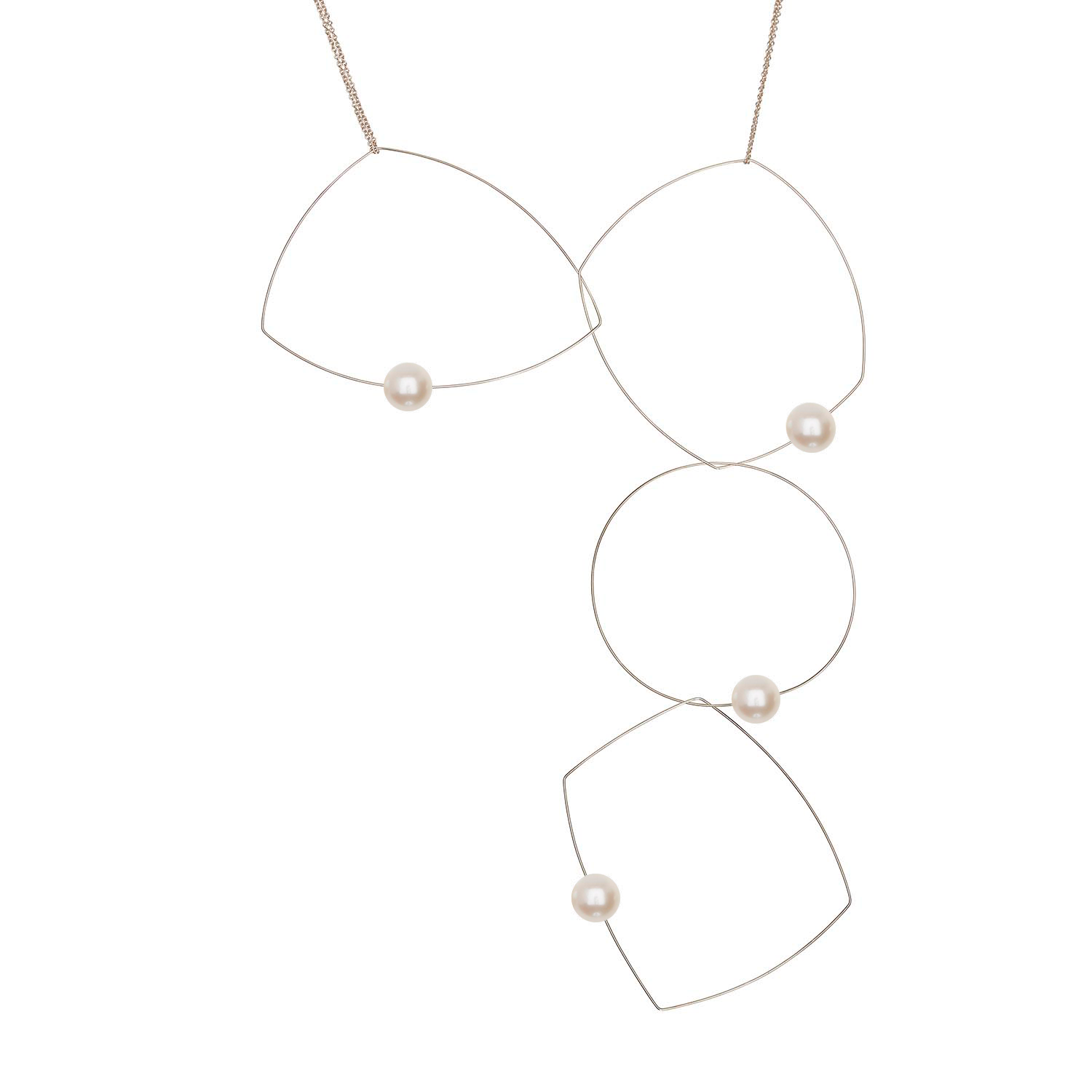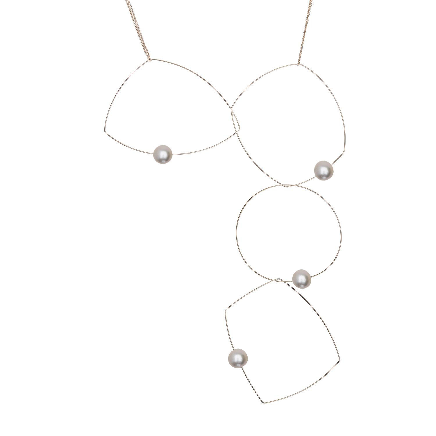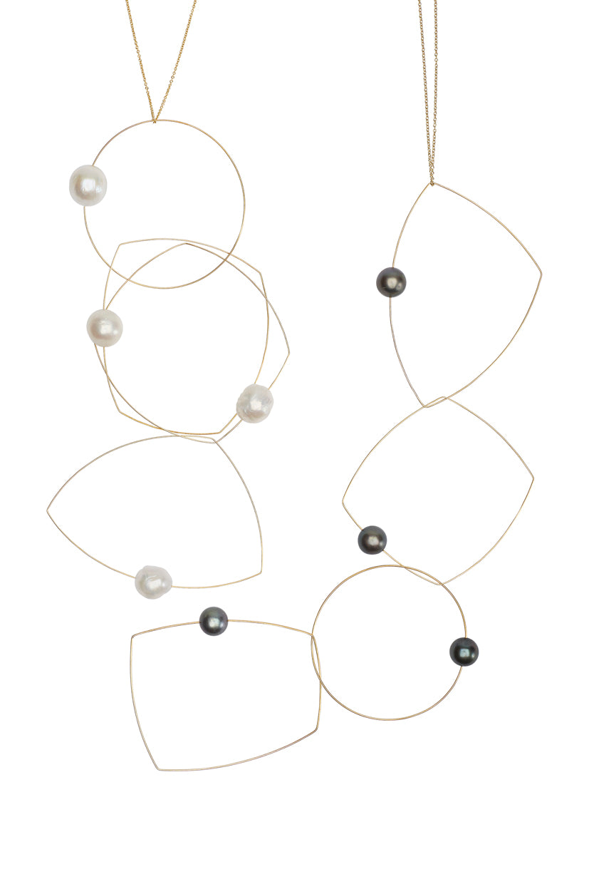 Four shapes, one chain, a dozen possibilities! A versatile freshwater pearl necklace to add to your jewellery collection. The chain can be taken off and the hoops held in position in a multitude of ways to create many different looks. A staple for any jewellery lover! Our signature multi wear necklace can be worn as short as 15" and long as 30".