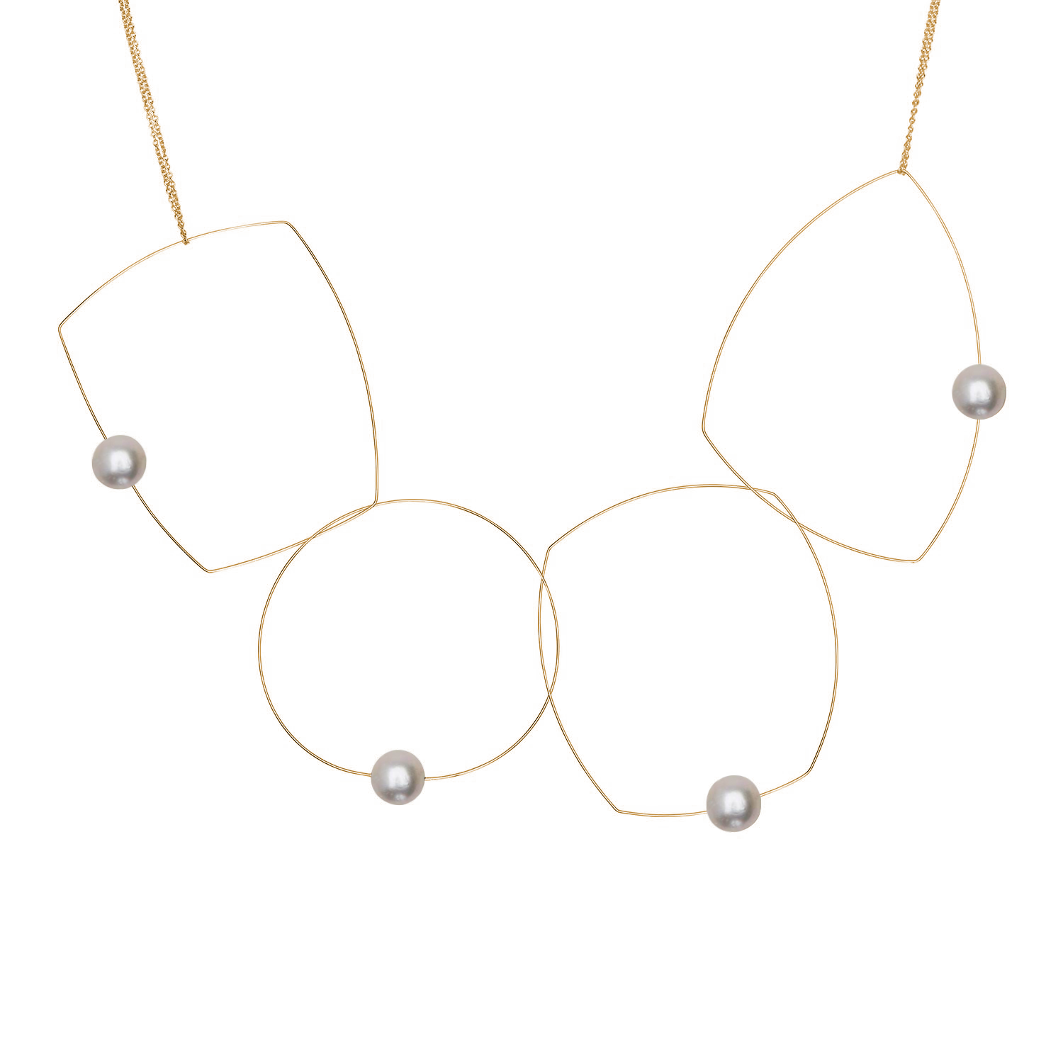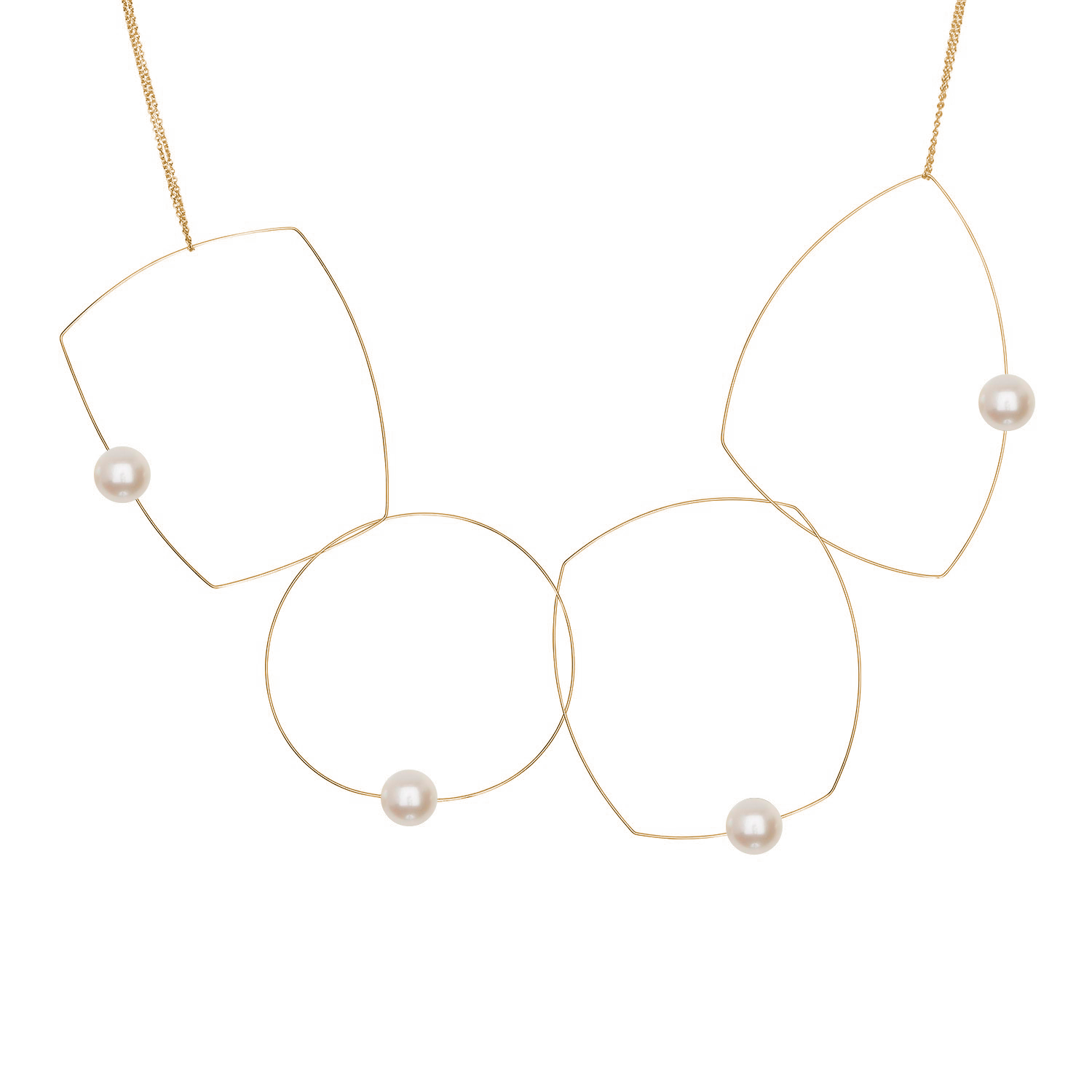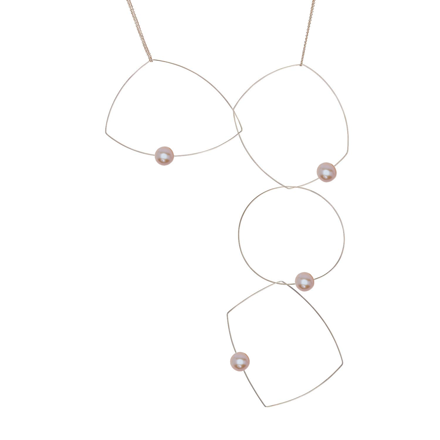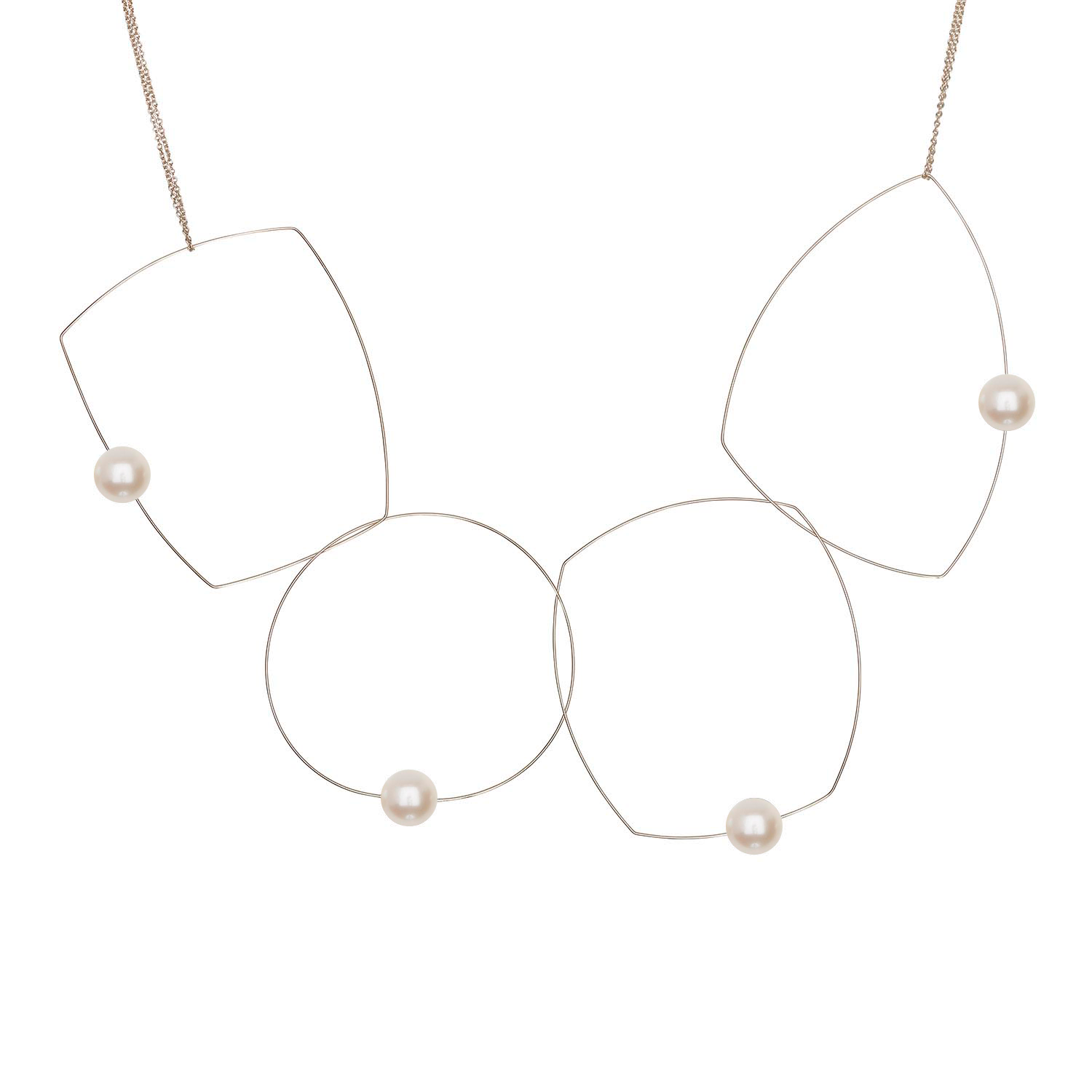Four shapes, one chain, a dozen possibilities! A versatile freshwater pearl necklace to add to your jewellery collection. The chain can be taken off and the hoops held in position in a multitude of ways to create many different looks. A staple for any jewellery lover! Our signature multi wear necklace can be worn as short as 15" and long as 30".
