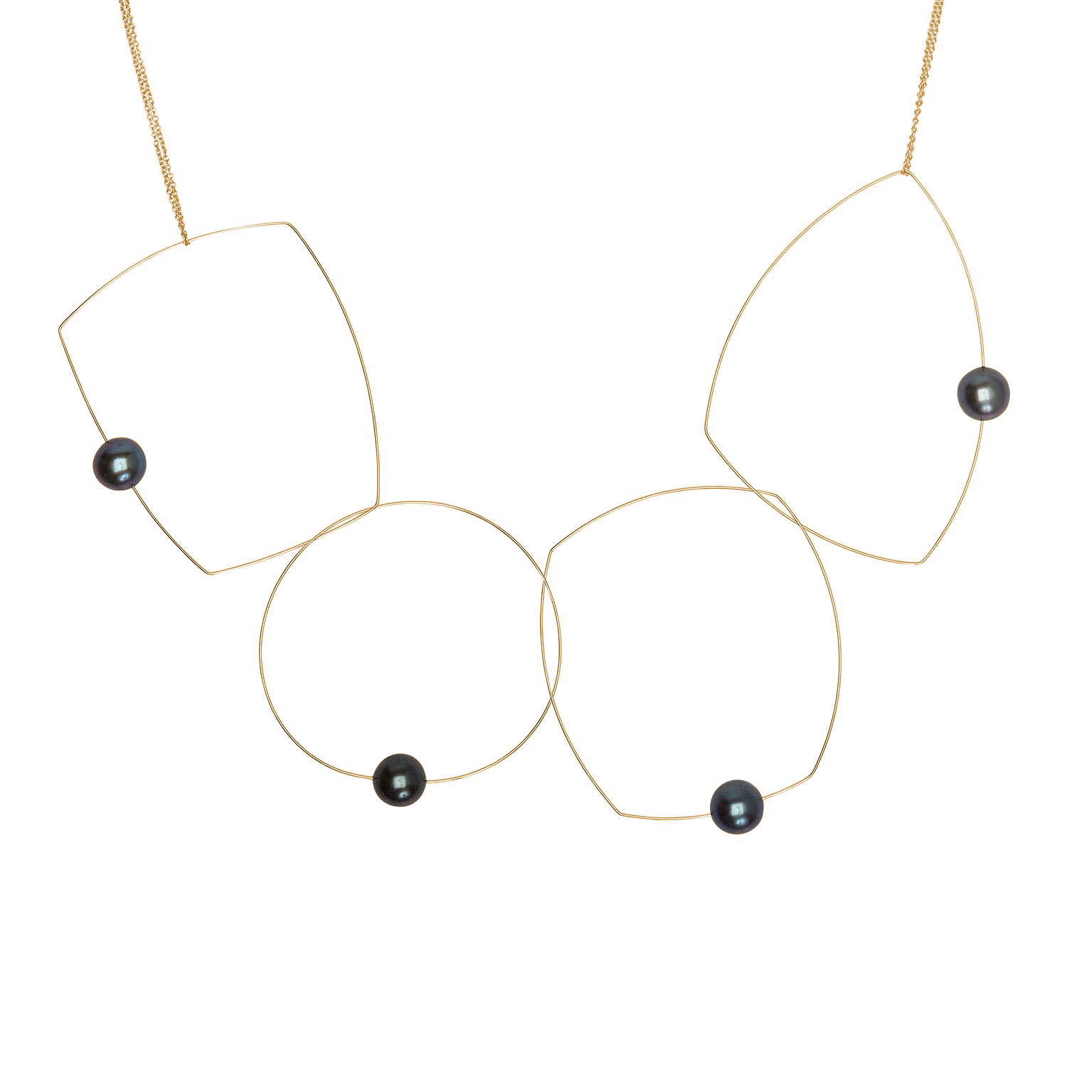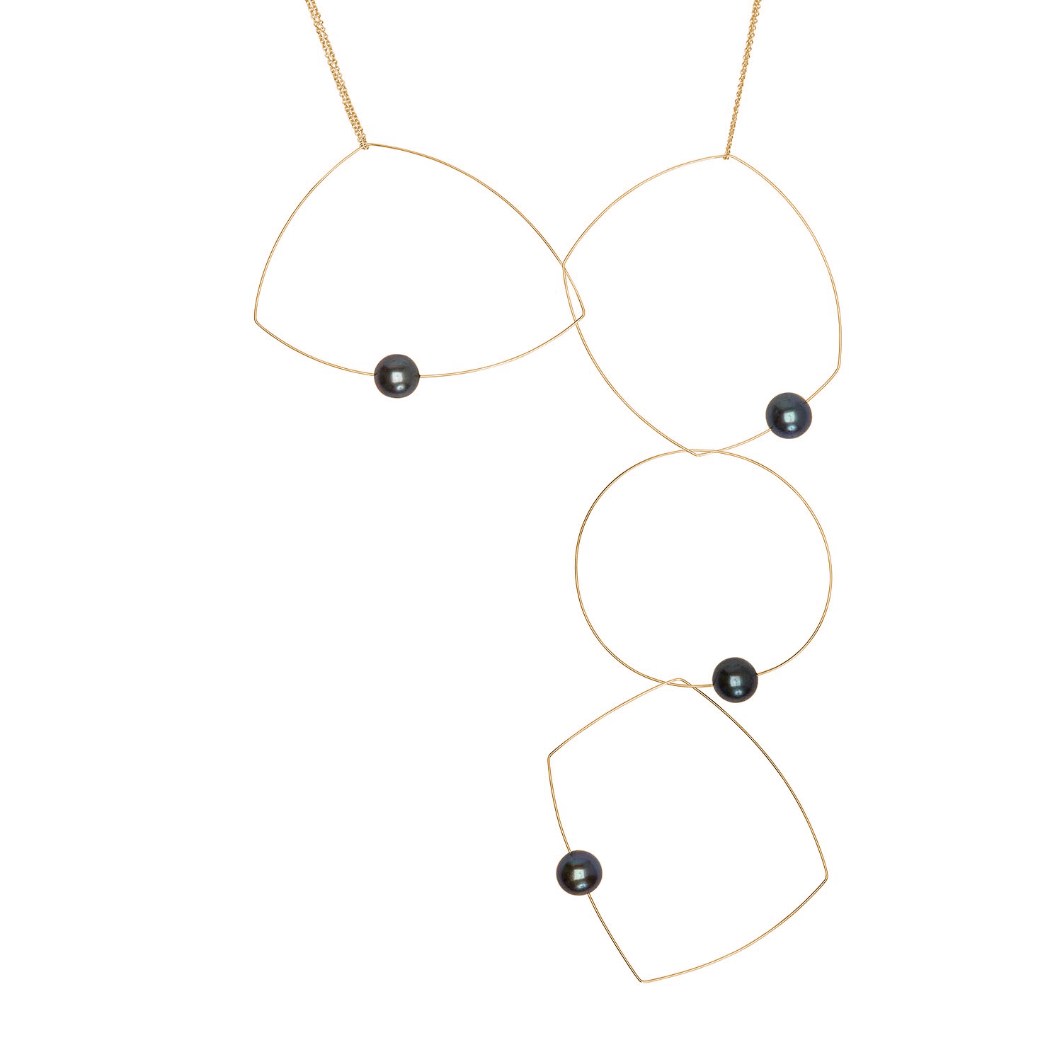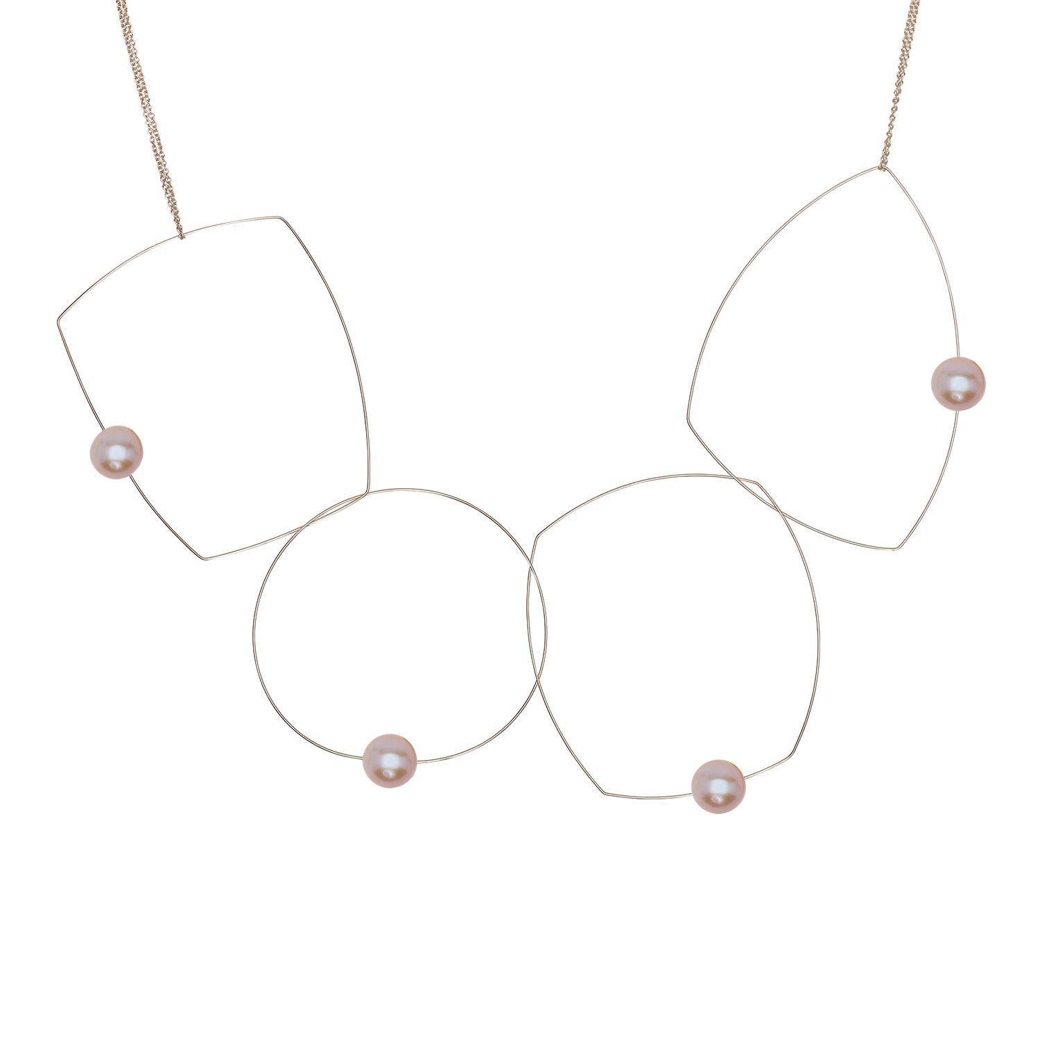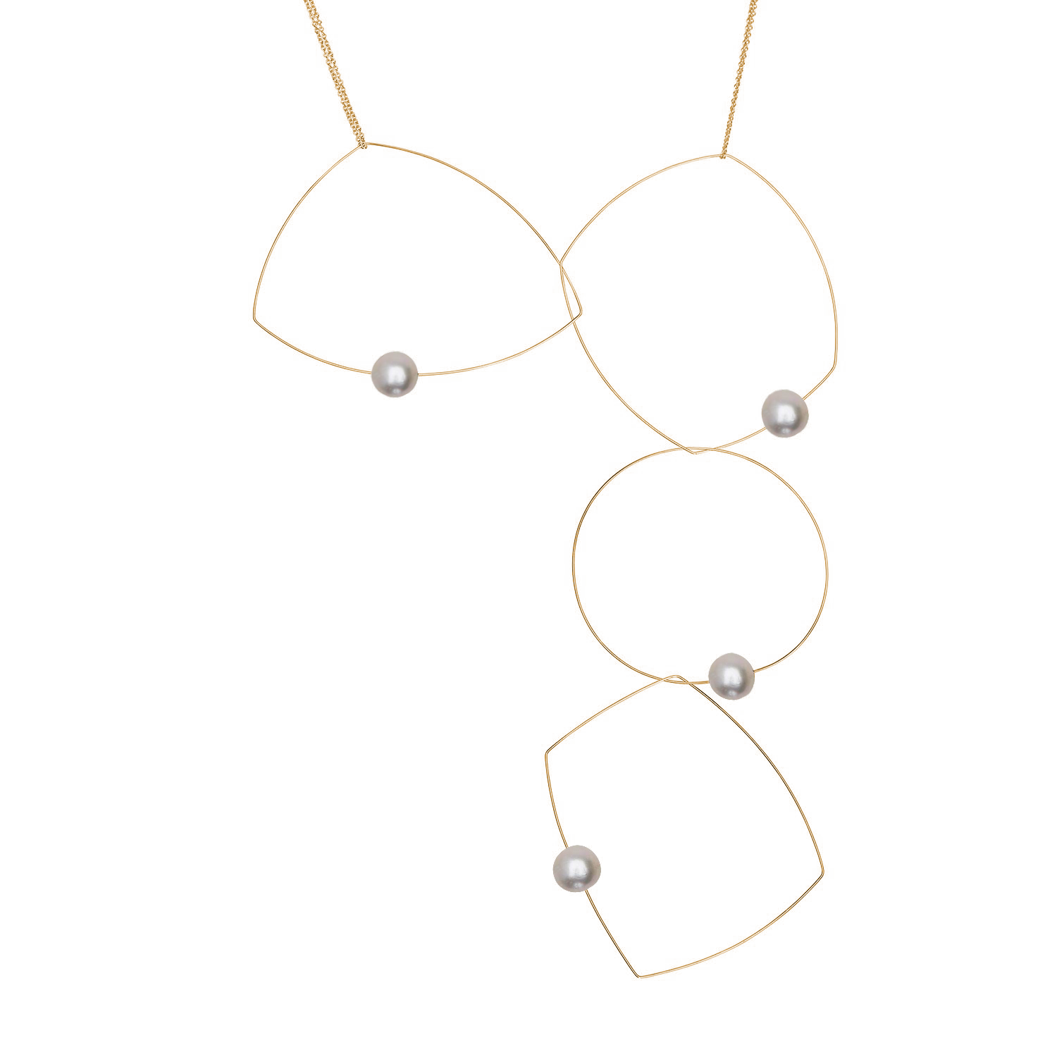 Four shapes, one chain, a dozen possibilities! A versatile freshwater pearl necklace to add to your jewellery collection. The chain can be taken off and the hoops held in position in a multitude of ways to create many different looks. A staple for any jewellery lover! Our signature multi wear necklace can be worn as short as 15" and long as 30".