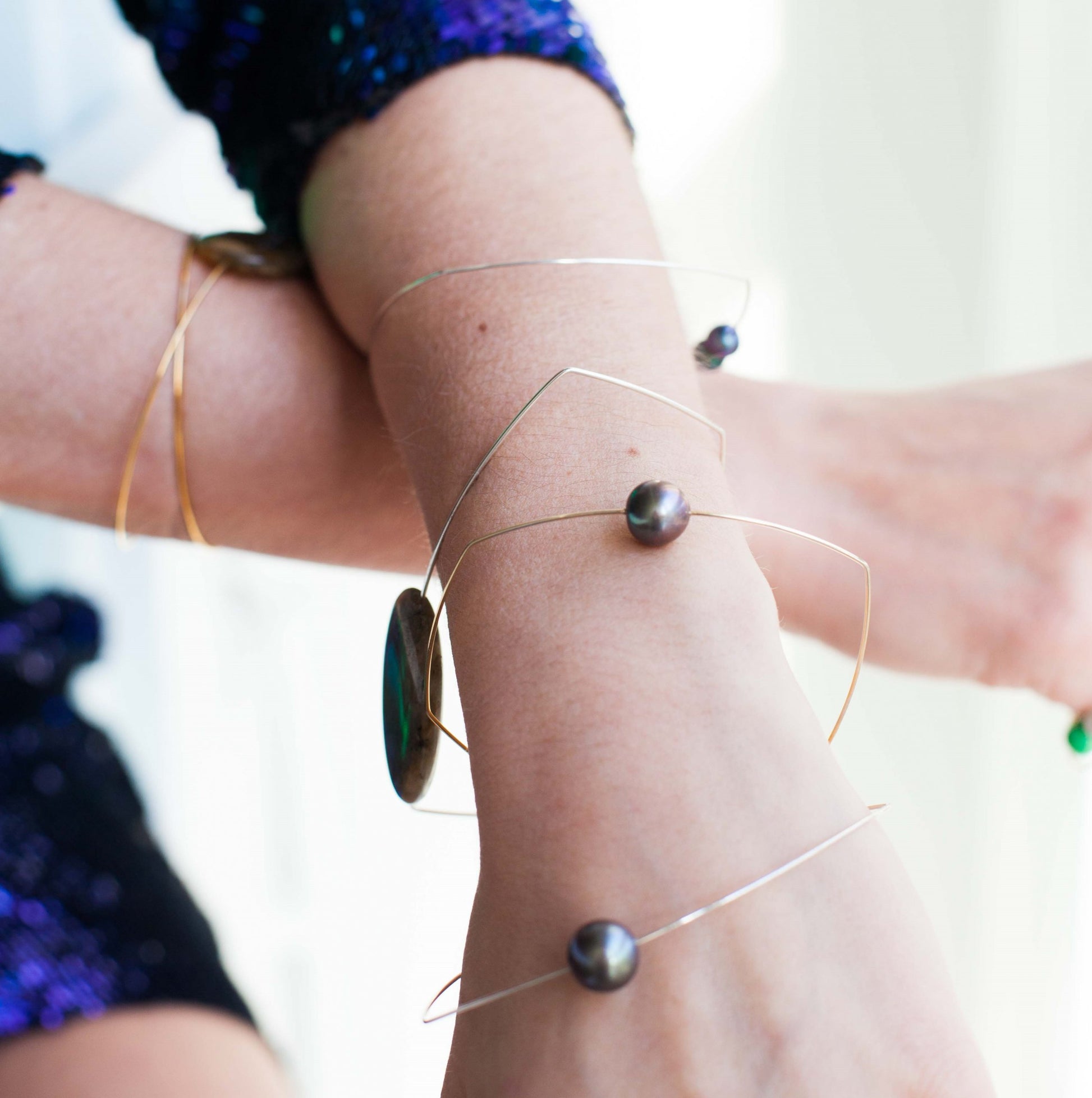 A classic piece of MMJ - modern and minimal, this teardrop shaped wire bangle and freshwater pearl will look stunning with any outfit!