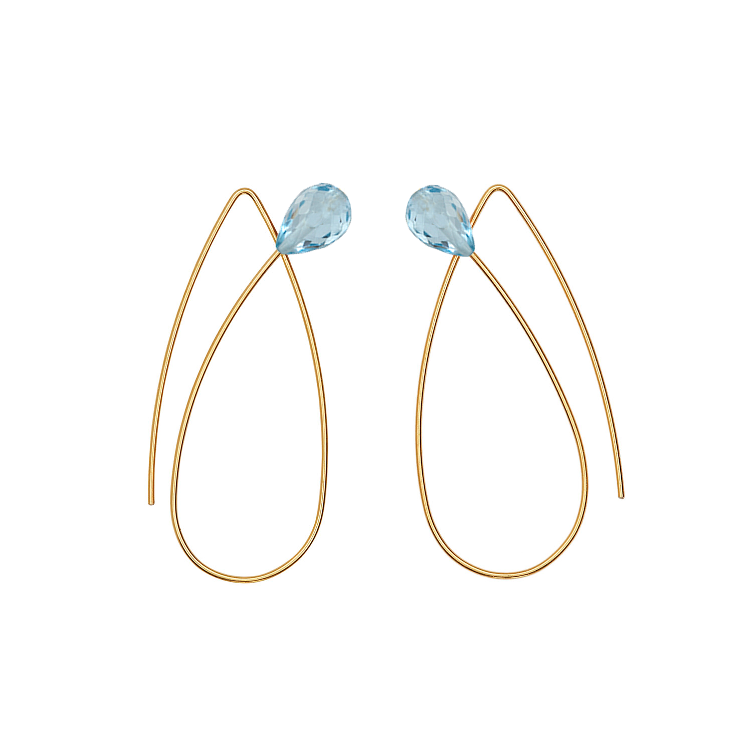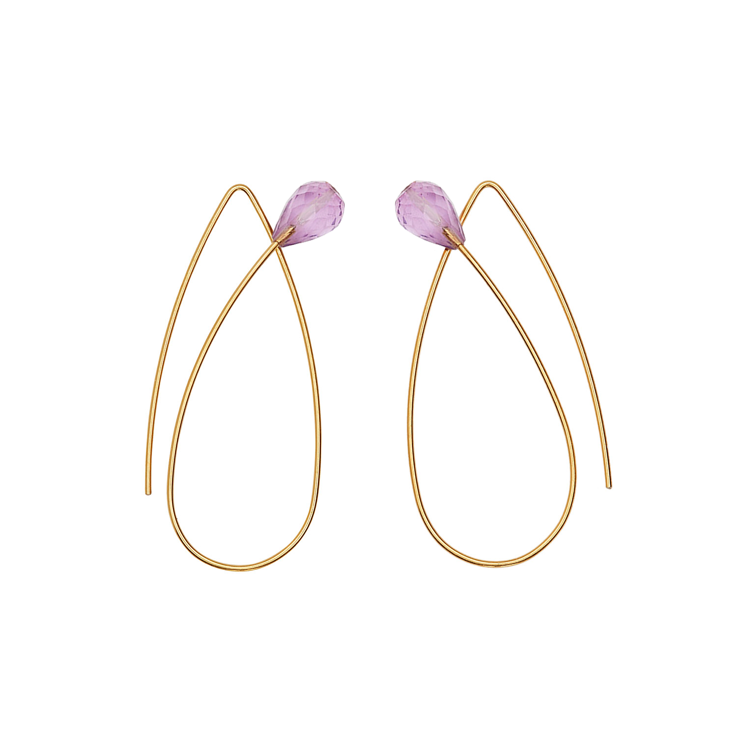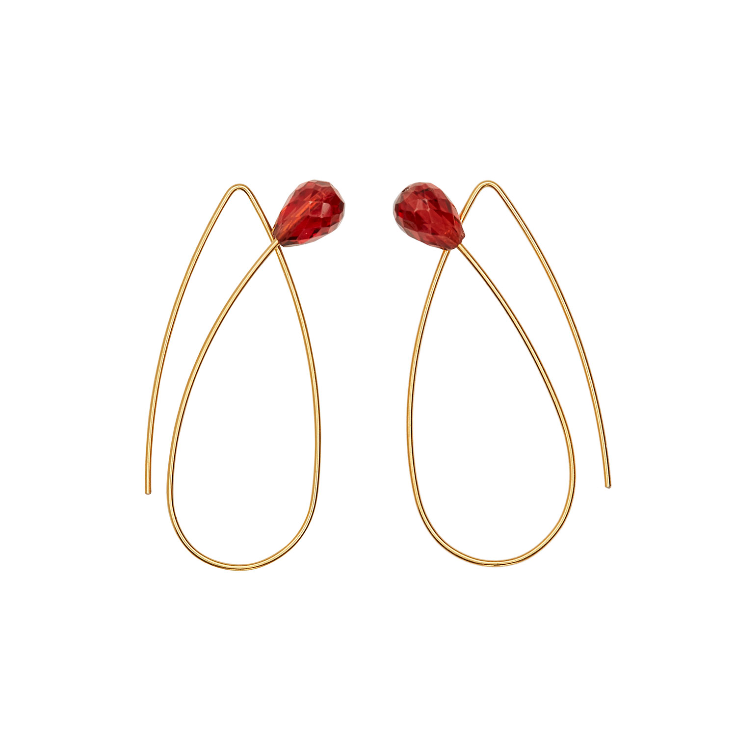Pear shaped faceted beads of opulent gemstones on these small pointed loops - a unique geometric shaped pair of earrings!