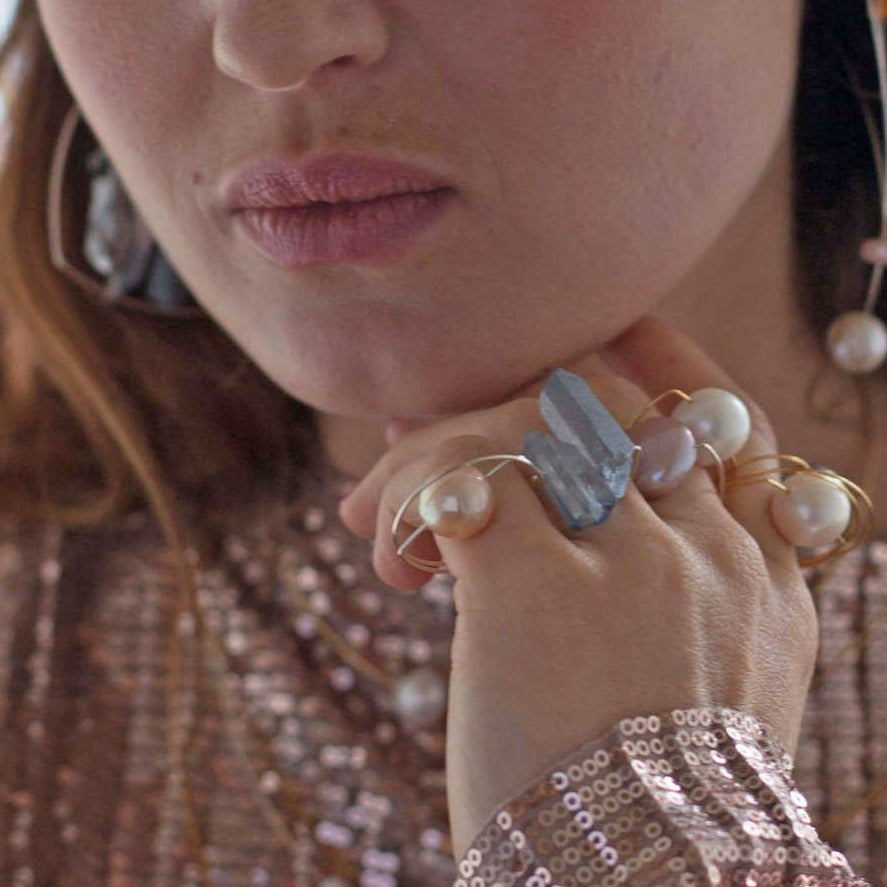 MMJ Signature Ring - A strong graphic shaped ring with a white pearl. Super comfortable and great to stack with other rings.