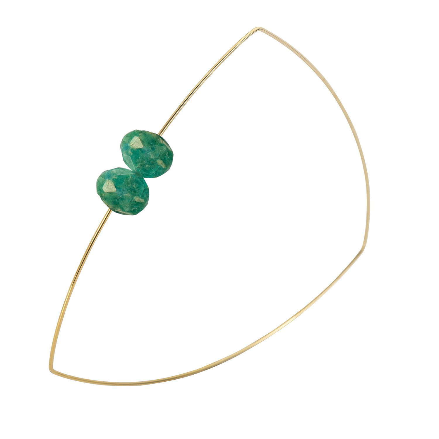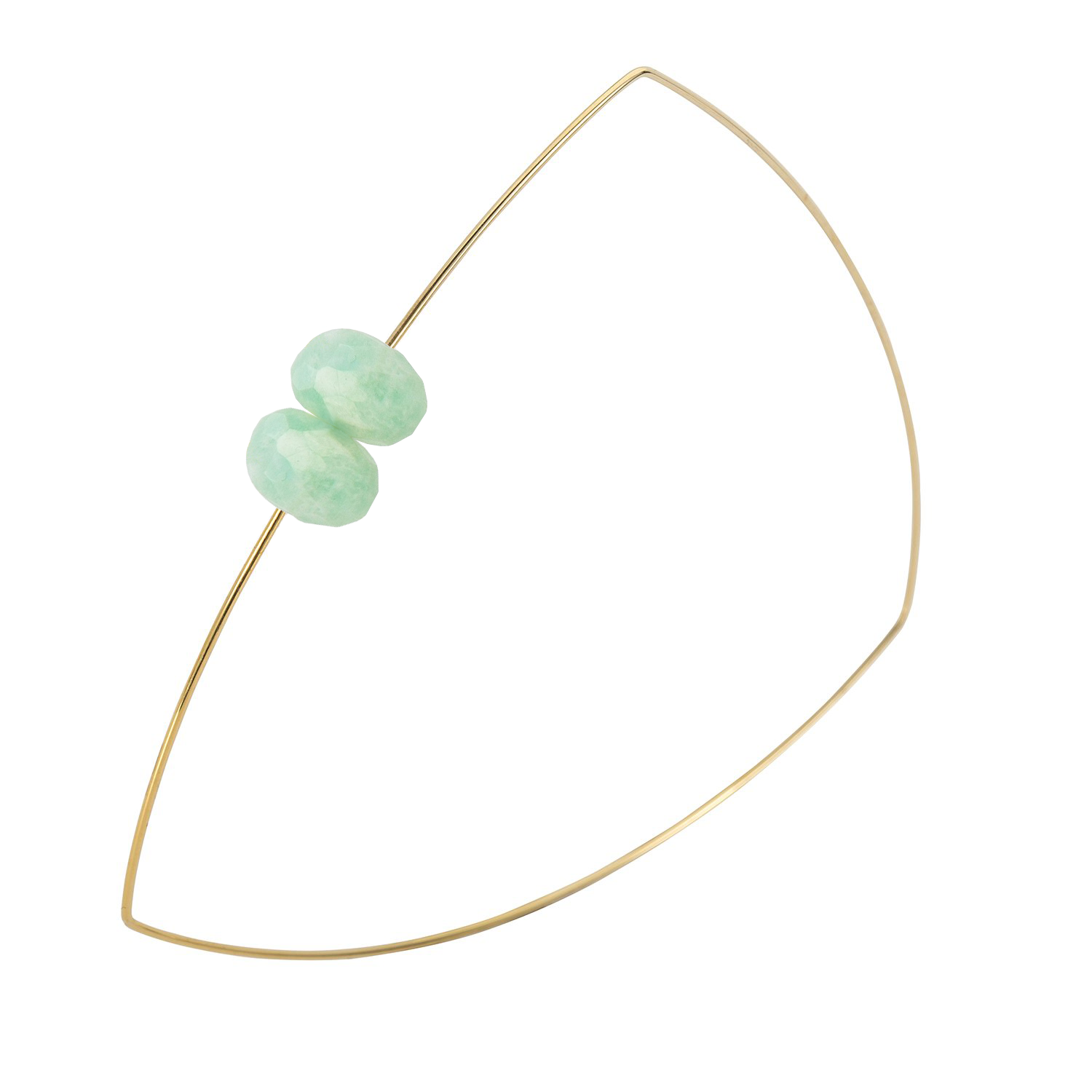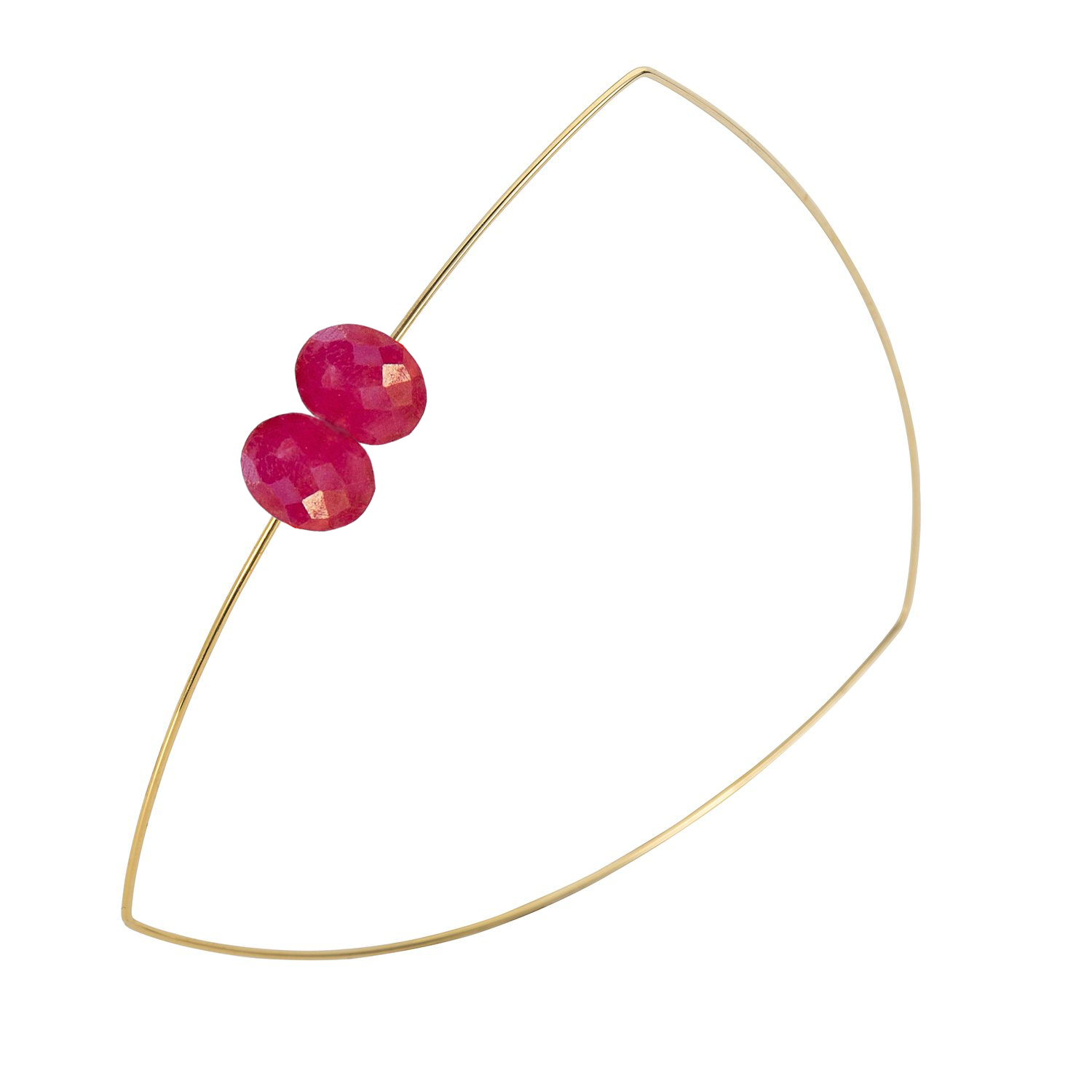 A pretty pair of hand-cut gems come together on this triangle shaped wire bangle. Absolutely lovely on its own or wear stacked with our other bangles to create some stylish shapes.