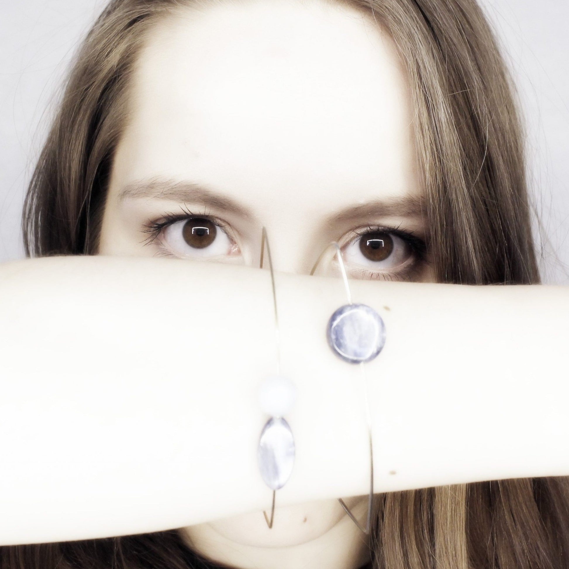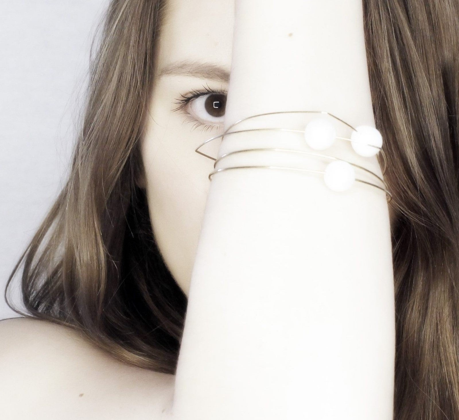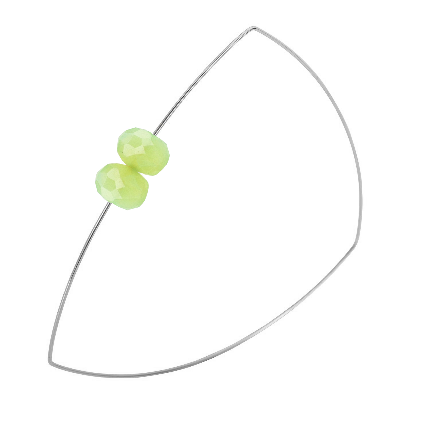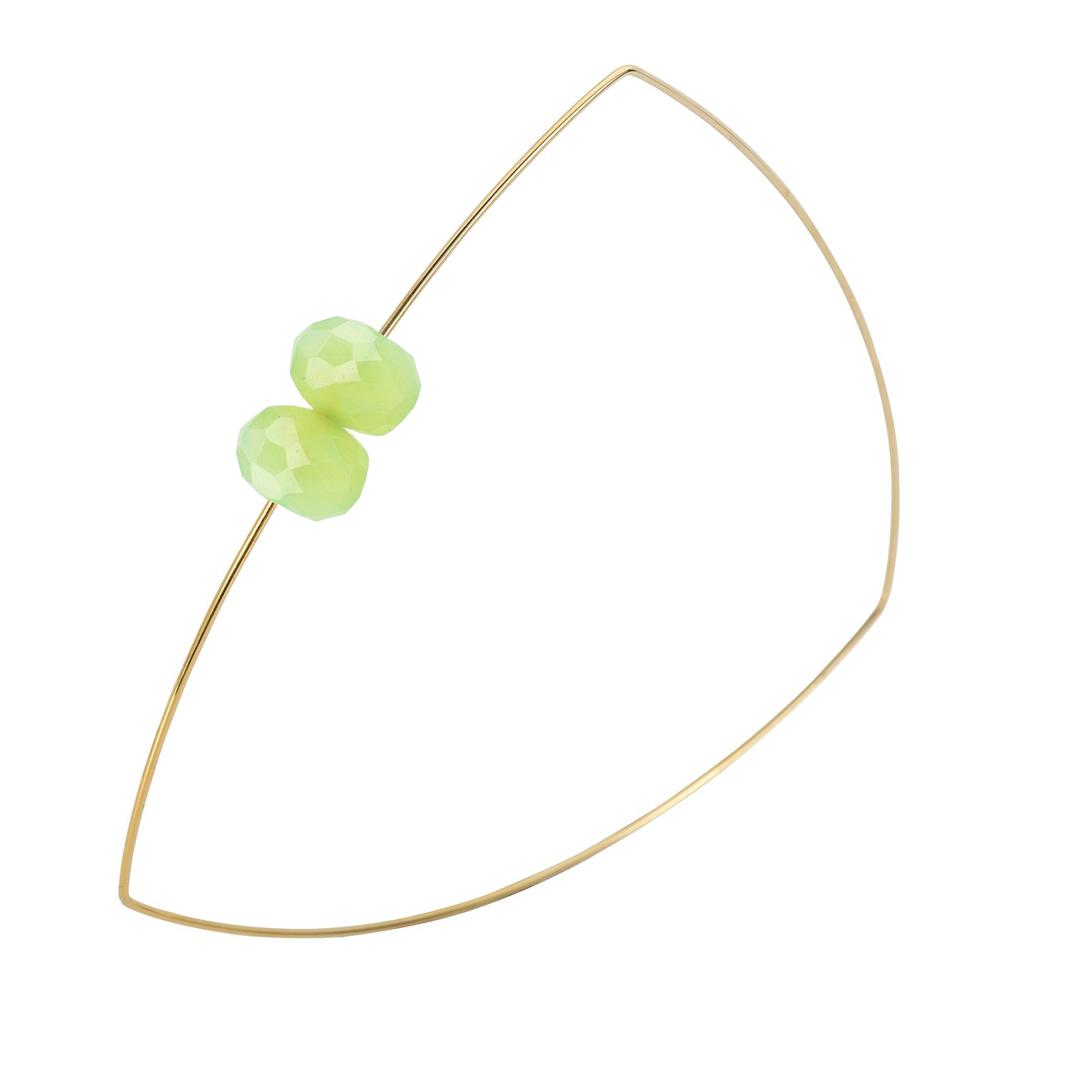 A pretty pair of hand-cut gems come together on this triangle shaped wire bangle. Absolutely lovely on its own or wear stacked with our other bangles to create some stylish shapes.