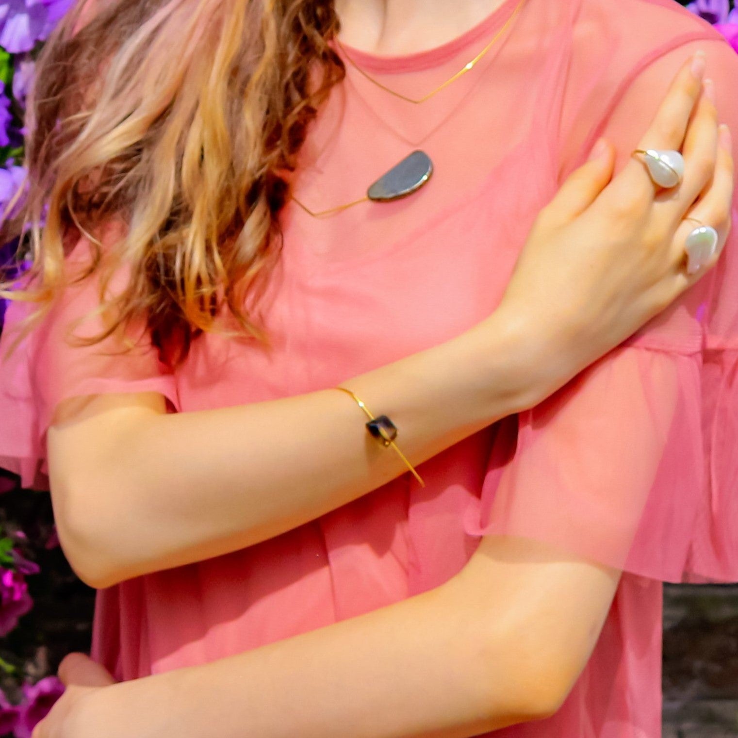 Triangle Bangle with hand-cut precious Gemstones