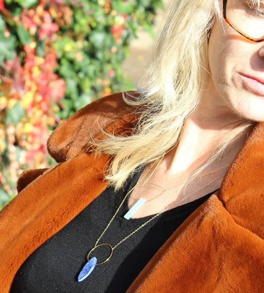 Multi Shape Pendant Necklace with Turquoise and Labradorite