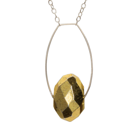 Rounded Rectangle Pendant Necklace with Gold Pyrite