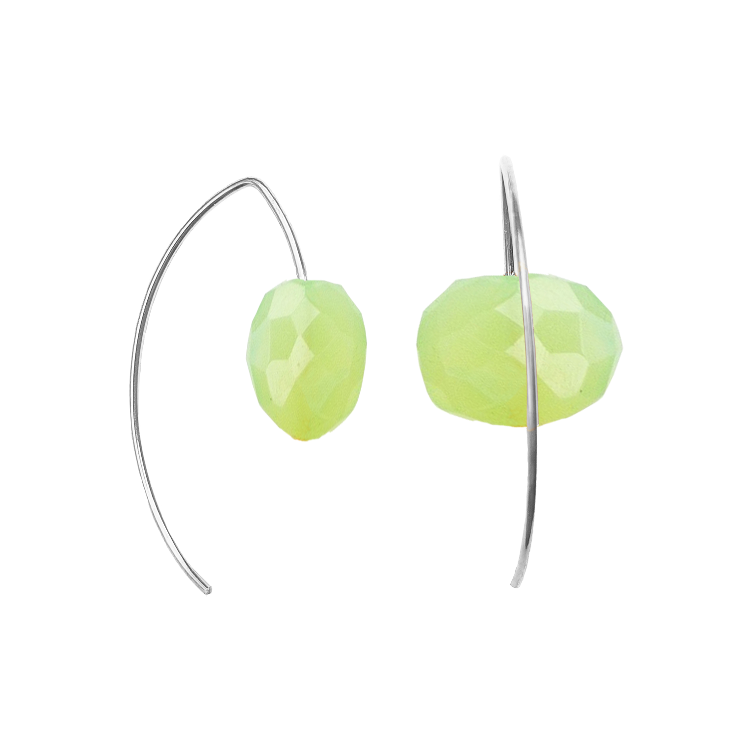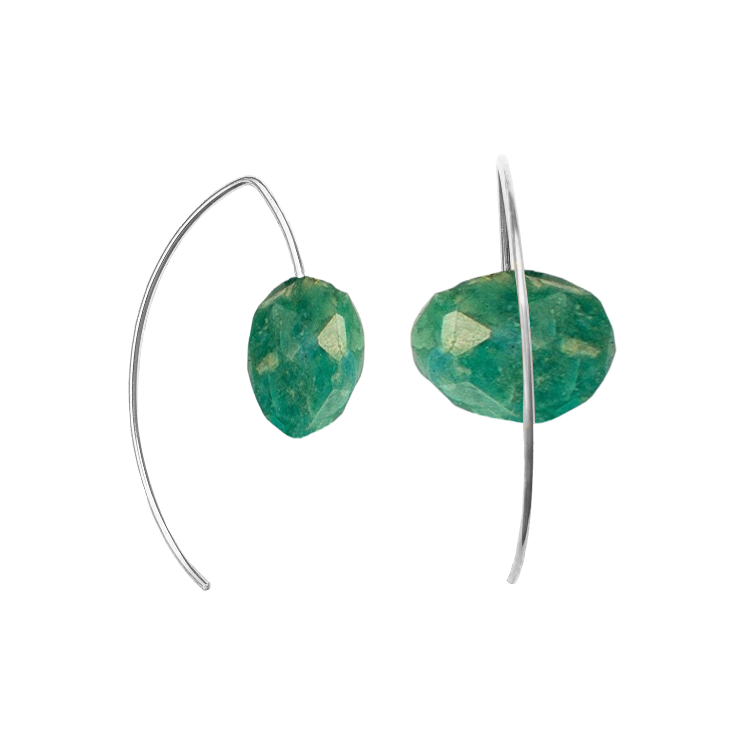 Our bestselling style of earrings - short curved earrings with large oval pieces of faceted hand-cut gemstones sit just below the earlobe.