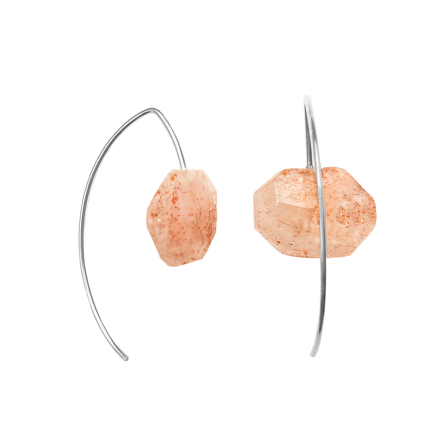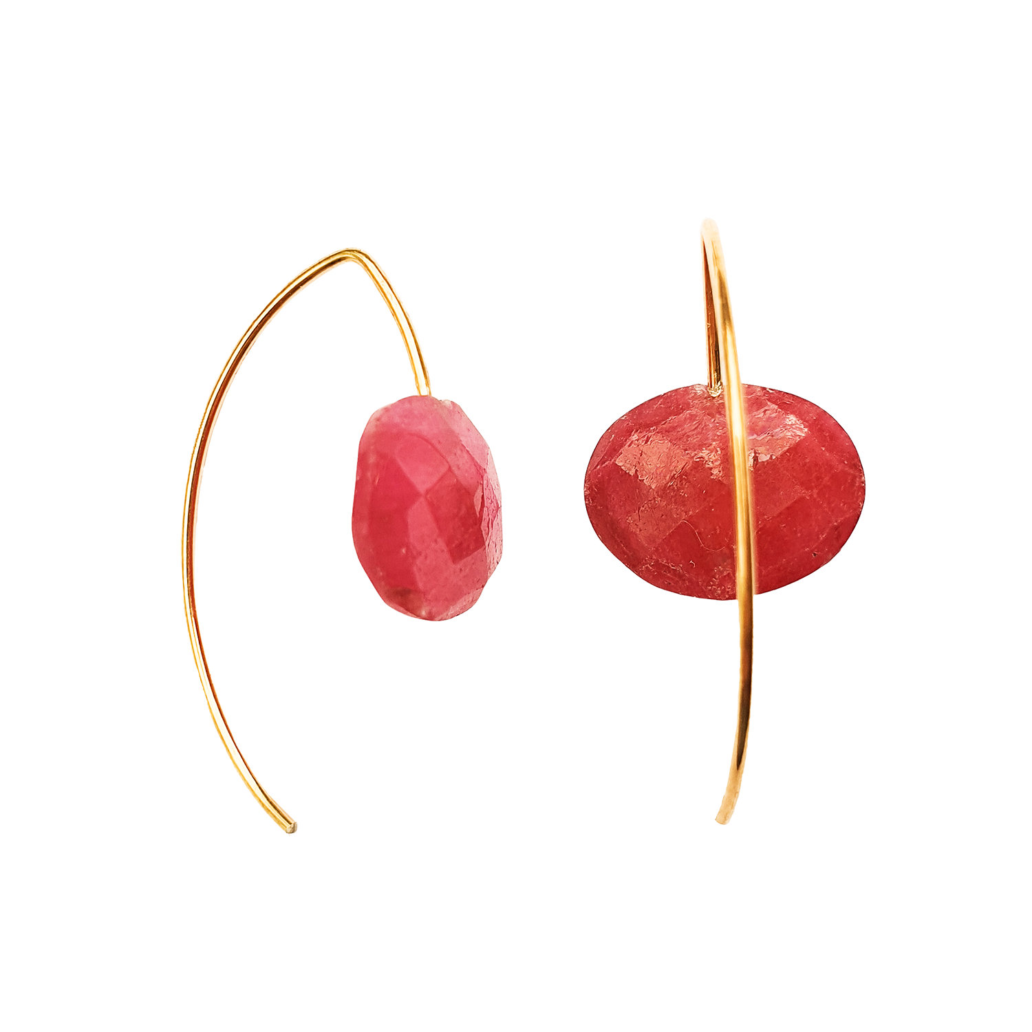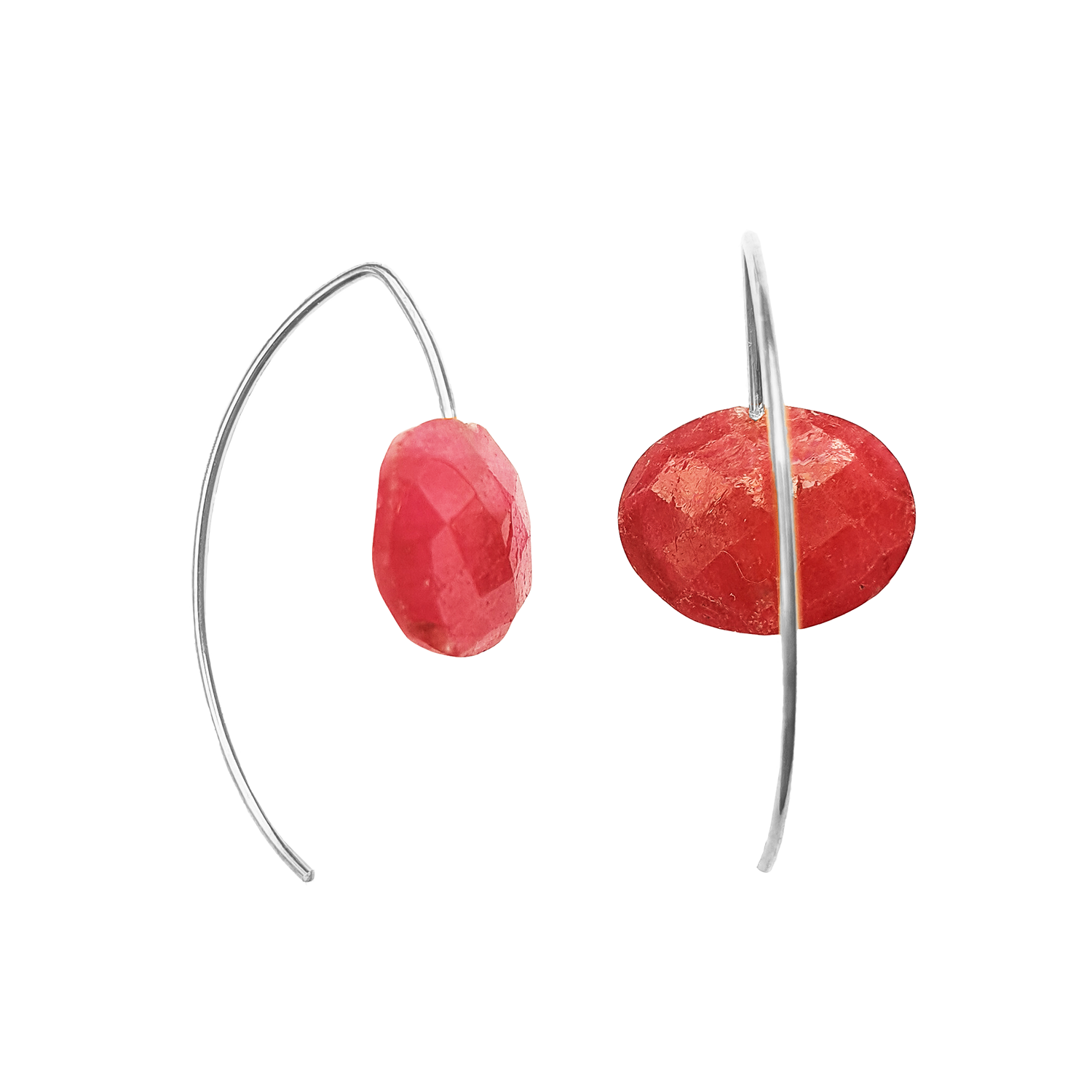 Short Curve Earrings with Hand-cut Precious Gemstones