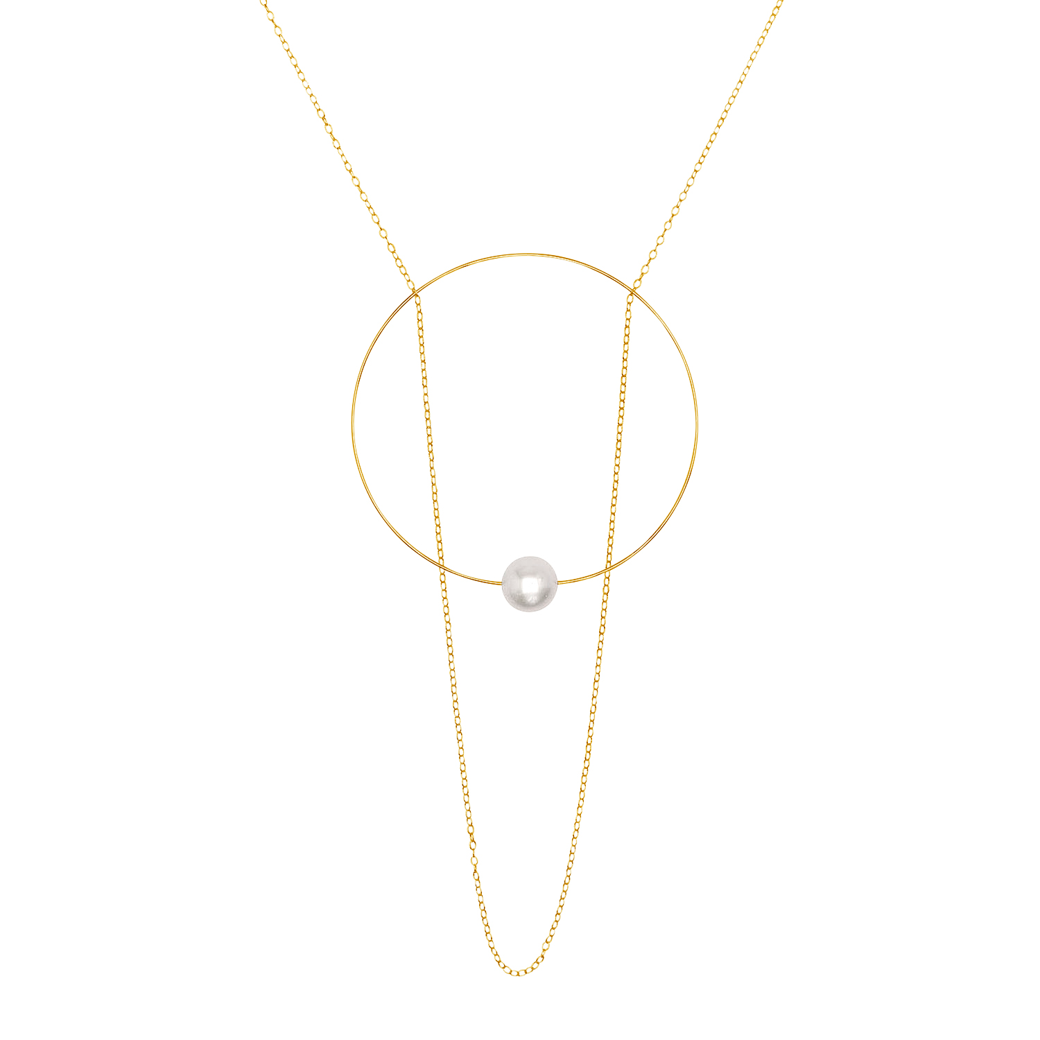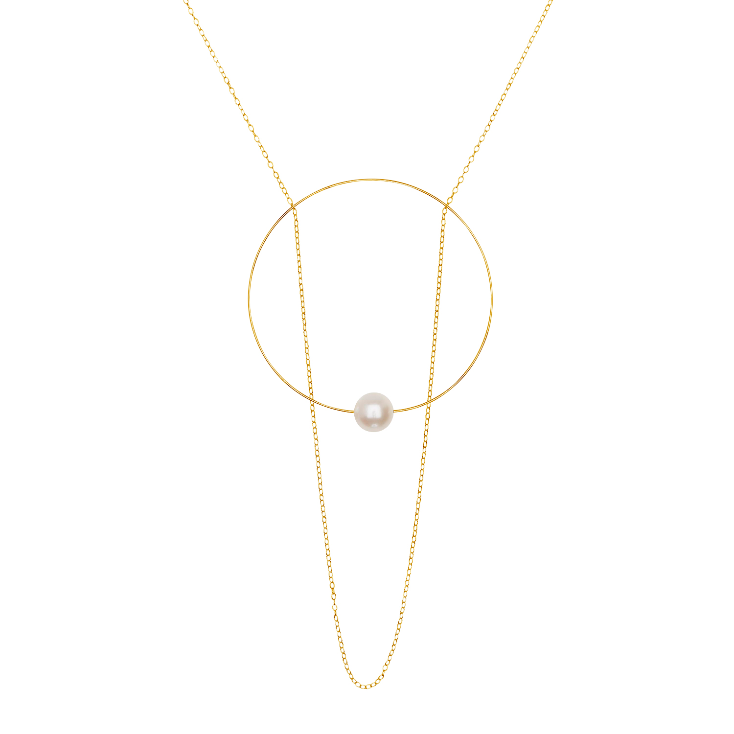 The chain sits on the neck at 16". The circular pendant measures 5.7cm and the pearl approximately measures 10mm.