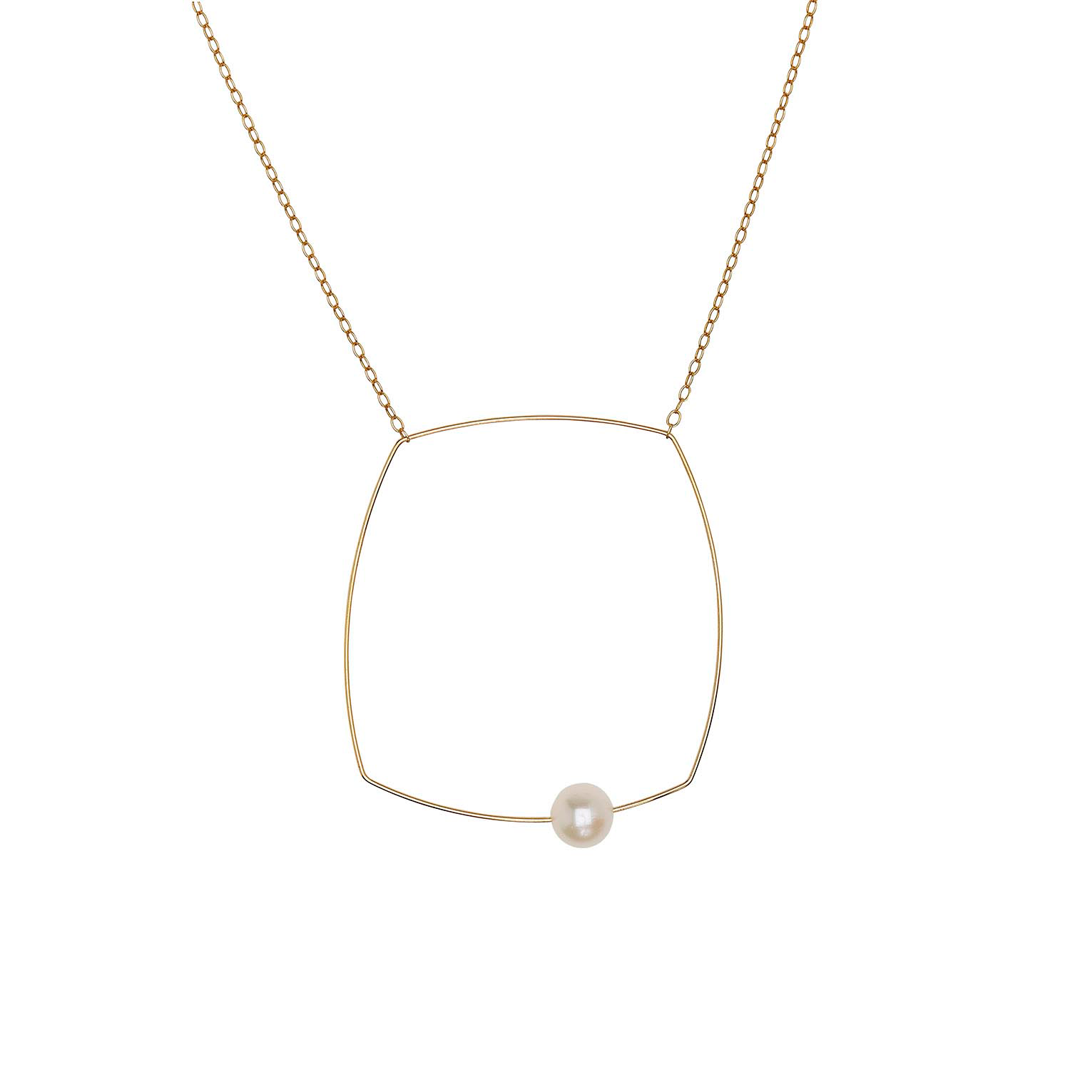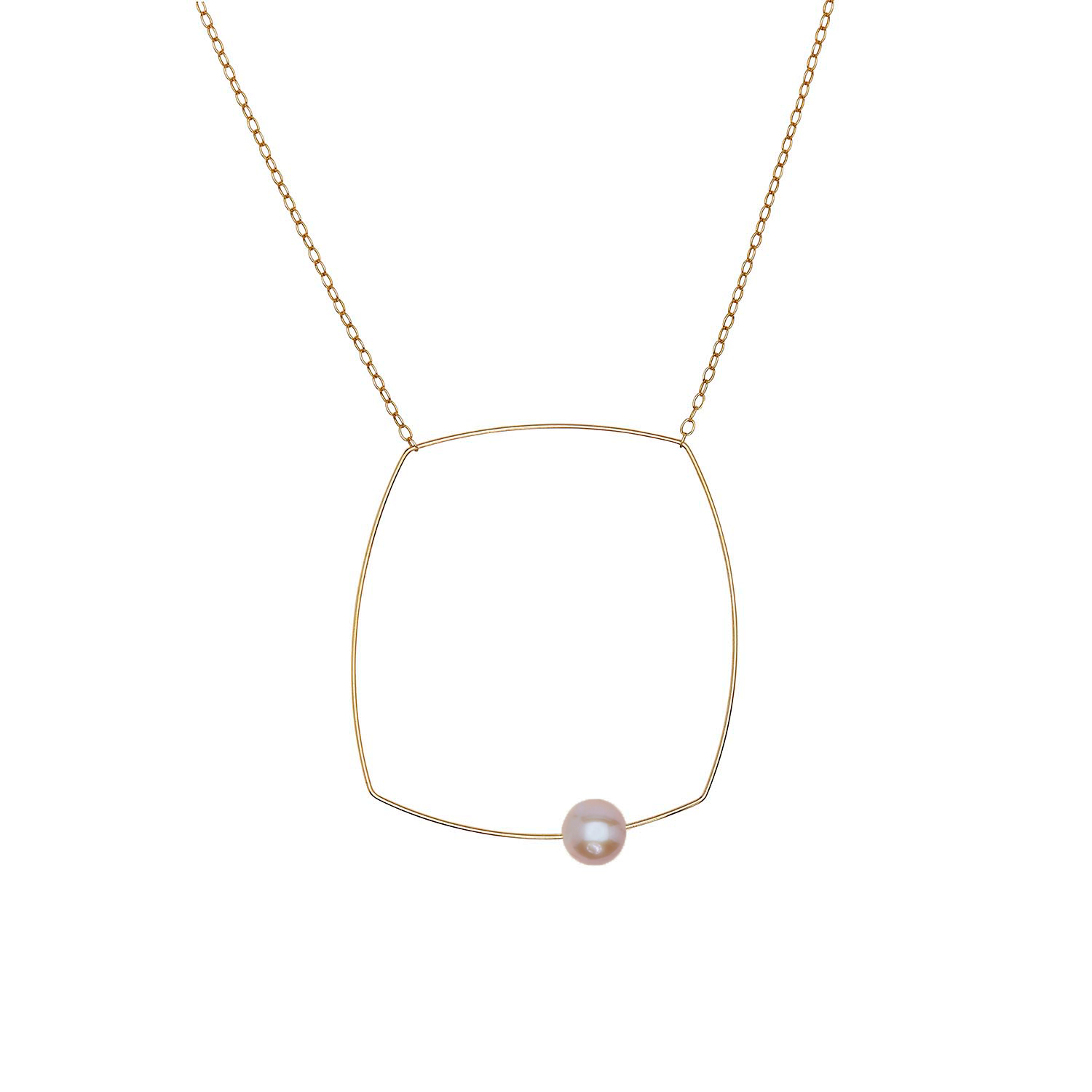 Large Square Pendant Necklace with Round Freshwater Pearl