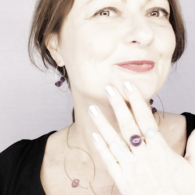 Deep shaded purple faceted nuggets of amethyst gemstones stand strong in these curvaceous earrings. Great to wear with a statement dress on a night out!