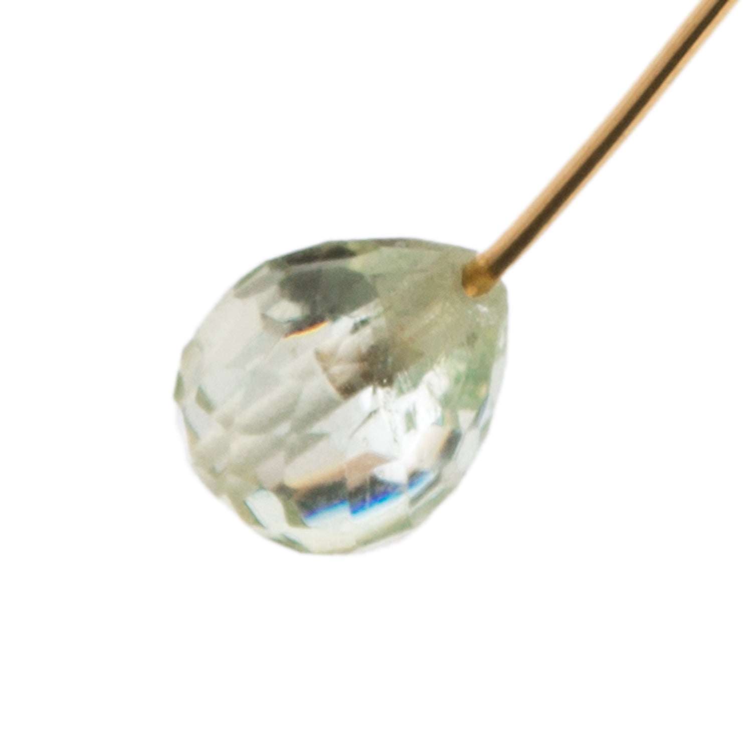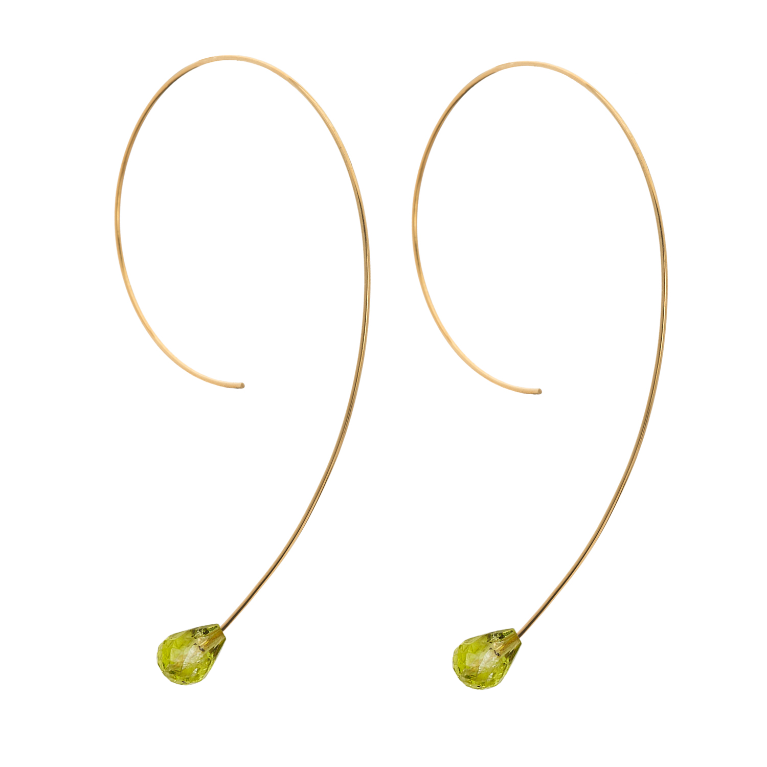 These delicate faceted pear shaped gemstones showcase a glass like lustre and its gorgeous tones of colours. Beautifully poised on the end of large curved earrings, a great stylish pair of earrings.
