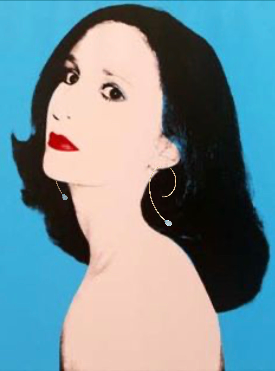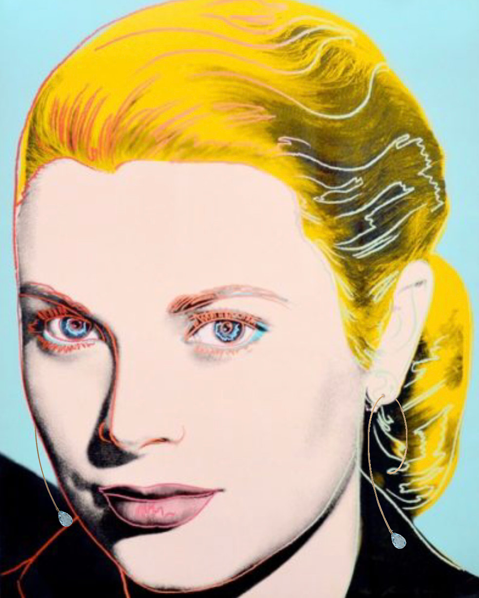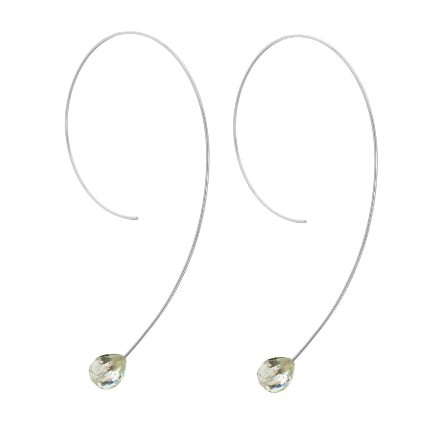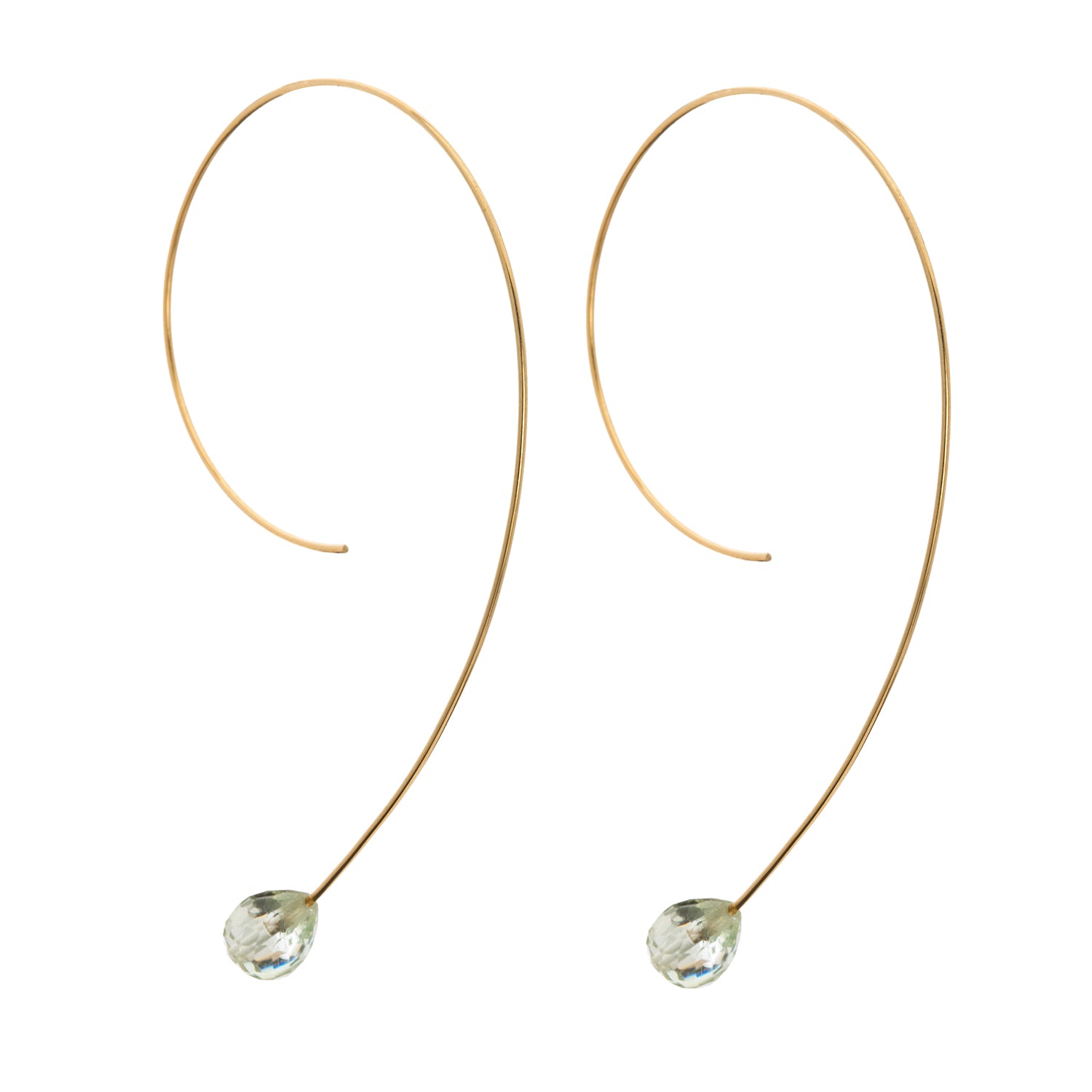 Large round curved wire earrings with dainty faceted drop gems make a sweet pair to wear especially with swept up hair. Perfect to wear in the daytime!