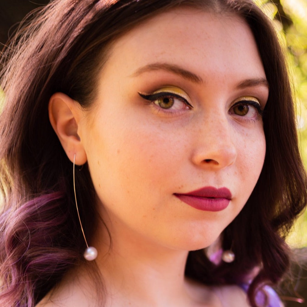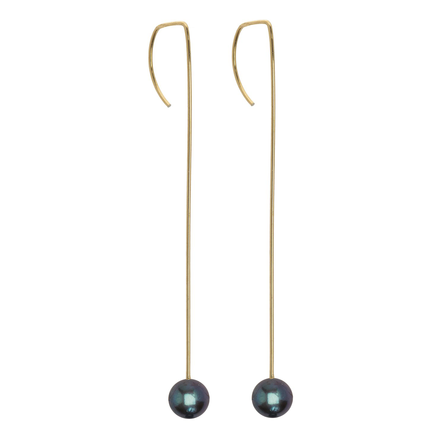 Long Straight Drop Earrings with Round Freshwater Pearls