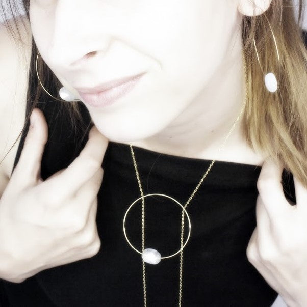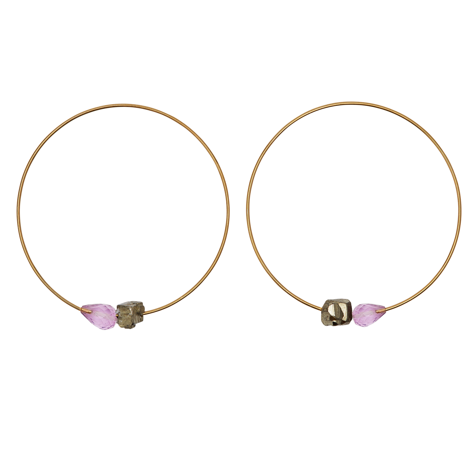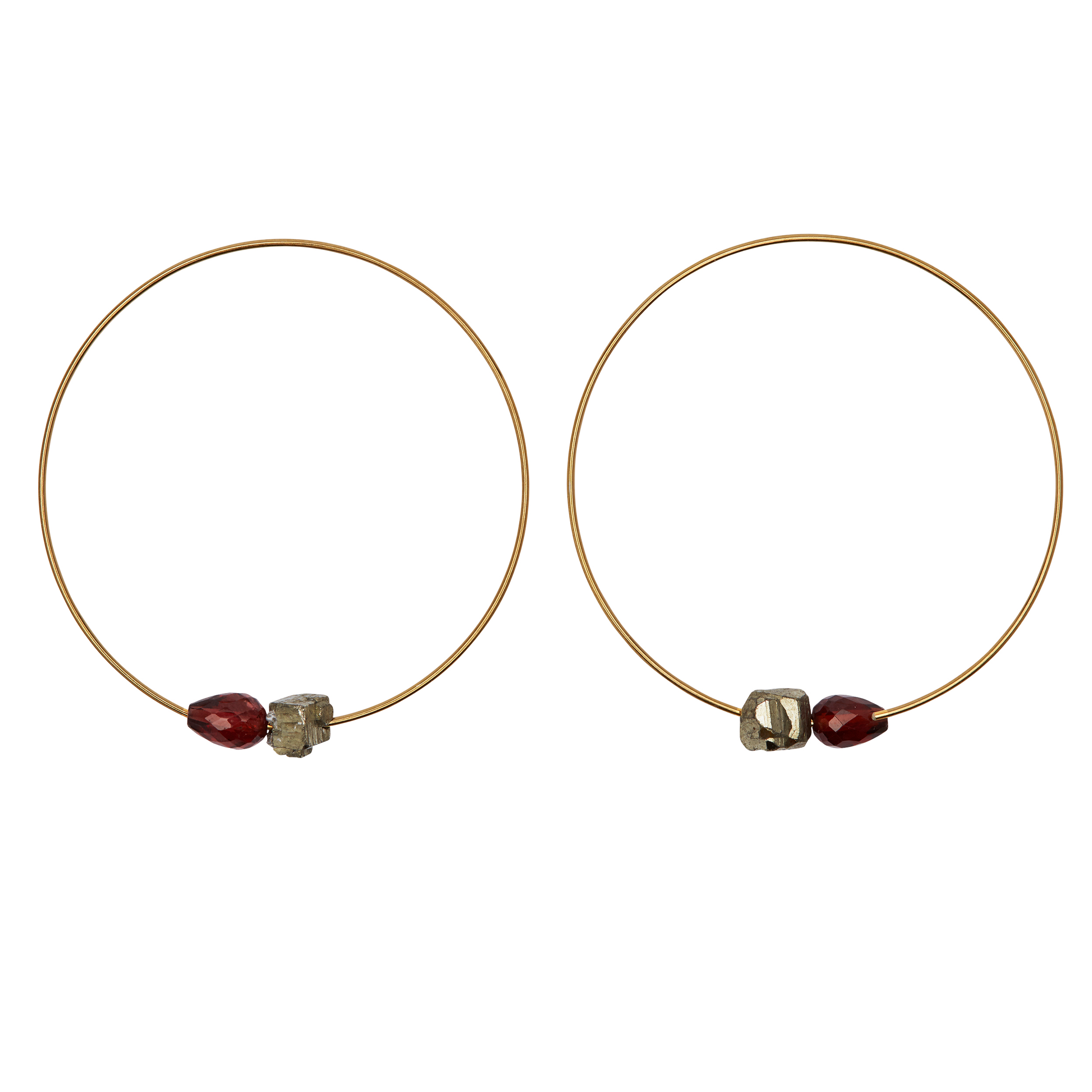 Medium Hoops with hand-cut drop Gemstones
