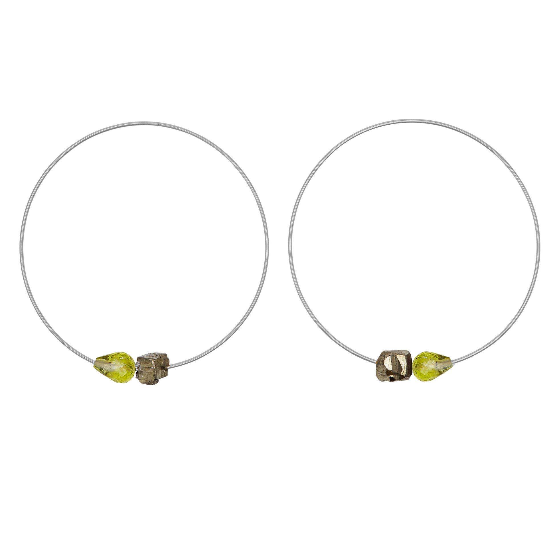 Drop gemstones have a glass like lustre and its gorgeous tones of colours, which shimmers offsets the gorgeous silver tones in the Pyrite.