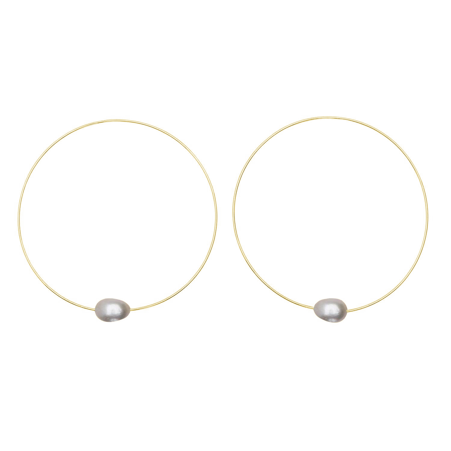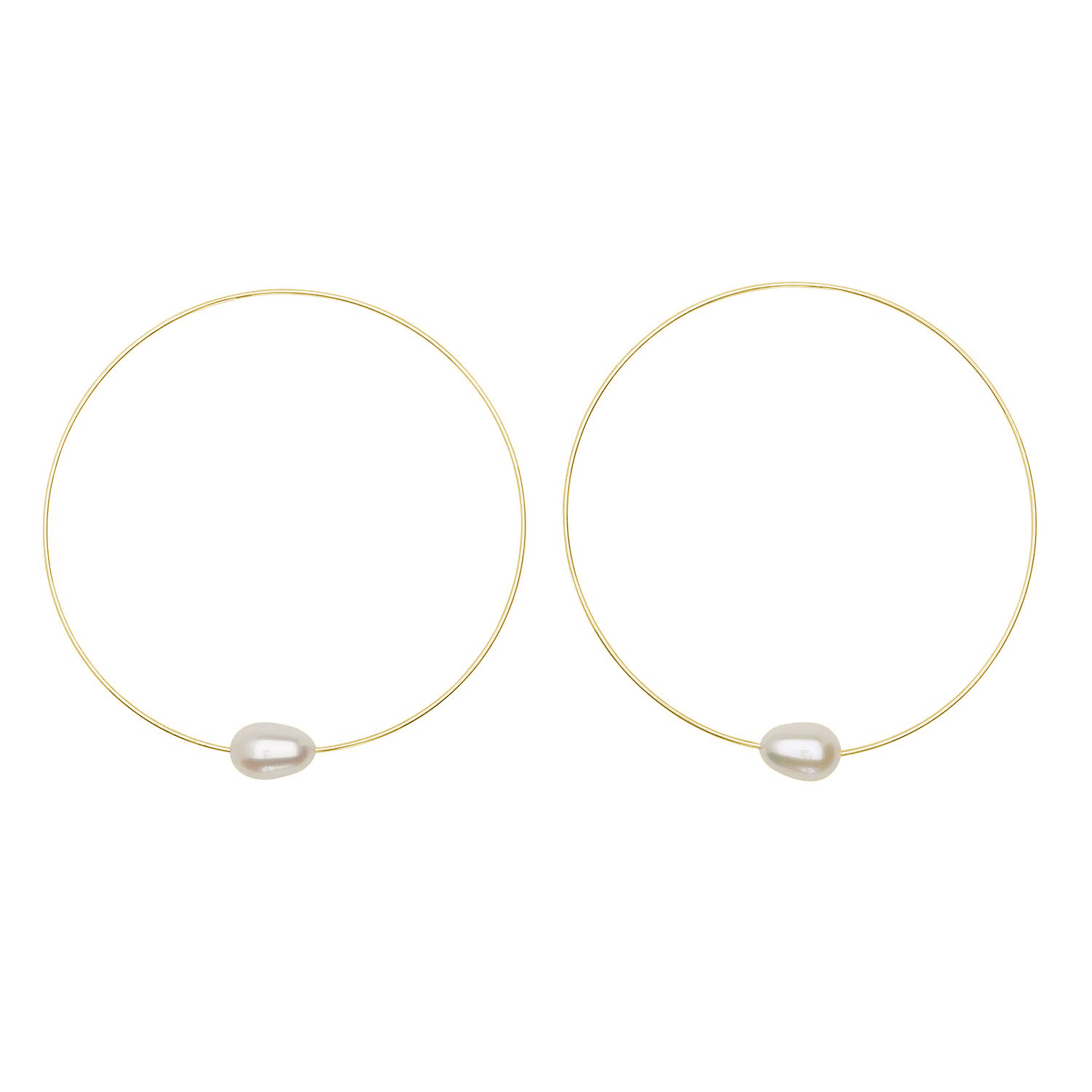Medium Round Hoops with Oval Medium Round Hoops with Oval Freshwater Pearls