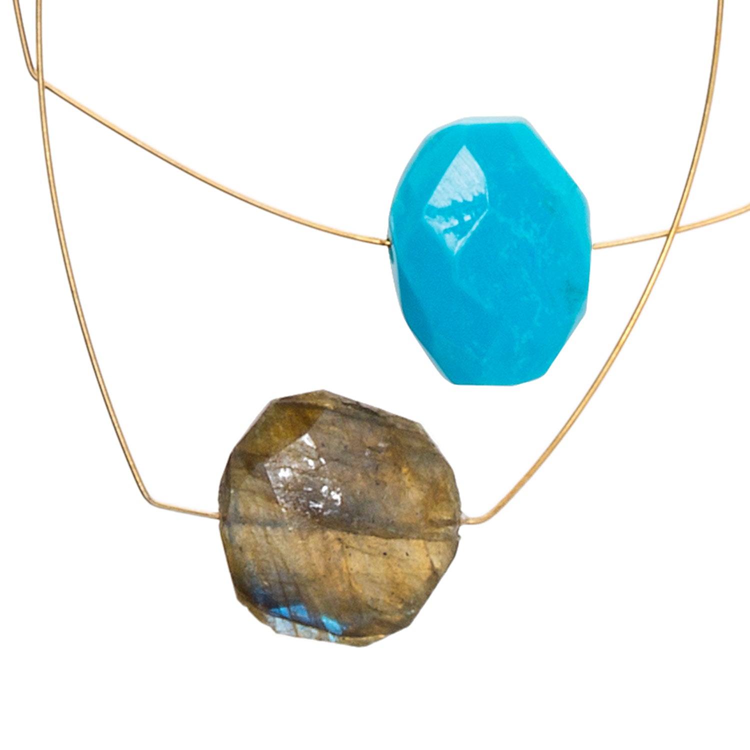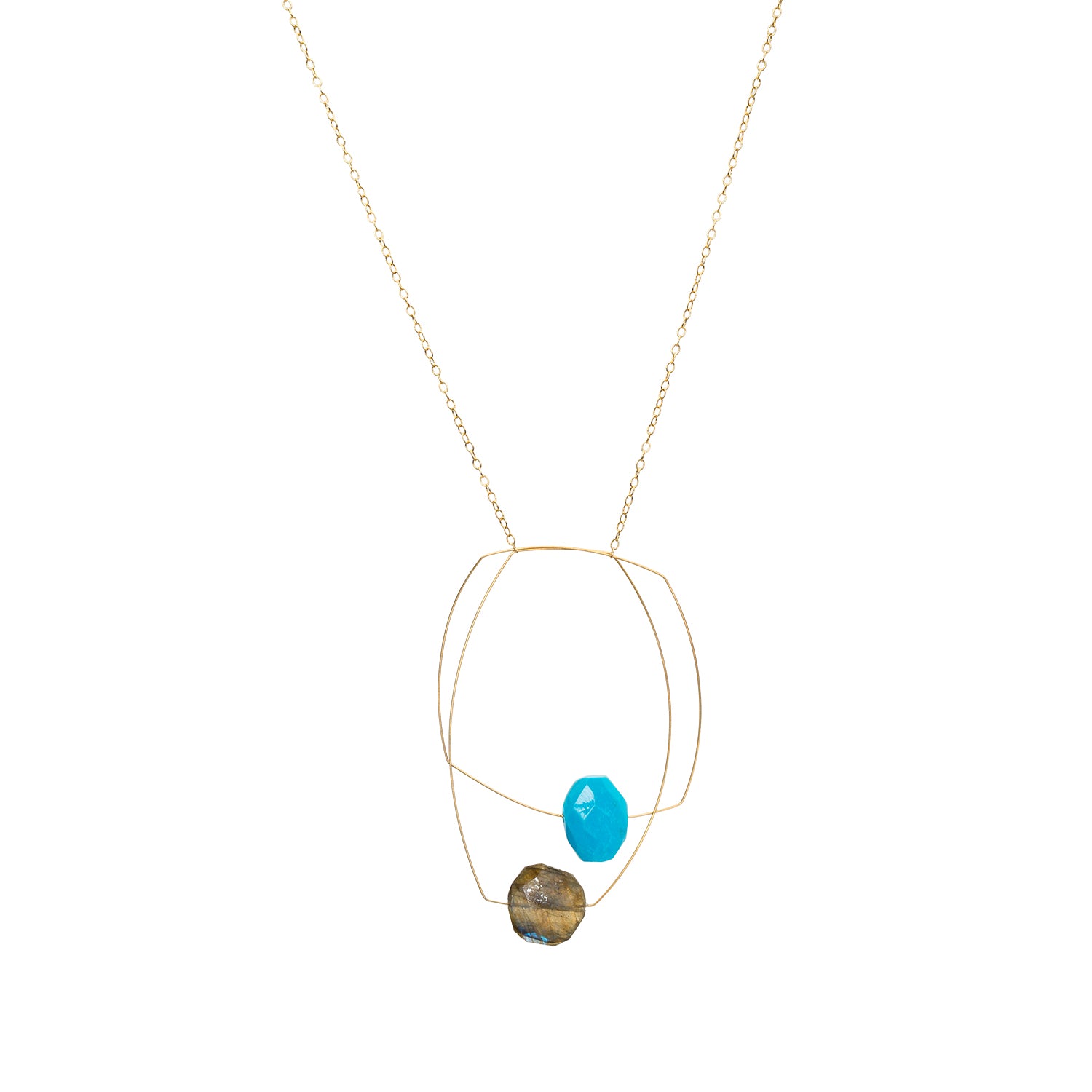 Multi Shape Pendant Necklace with Turquoise and Labradorite
