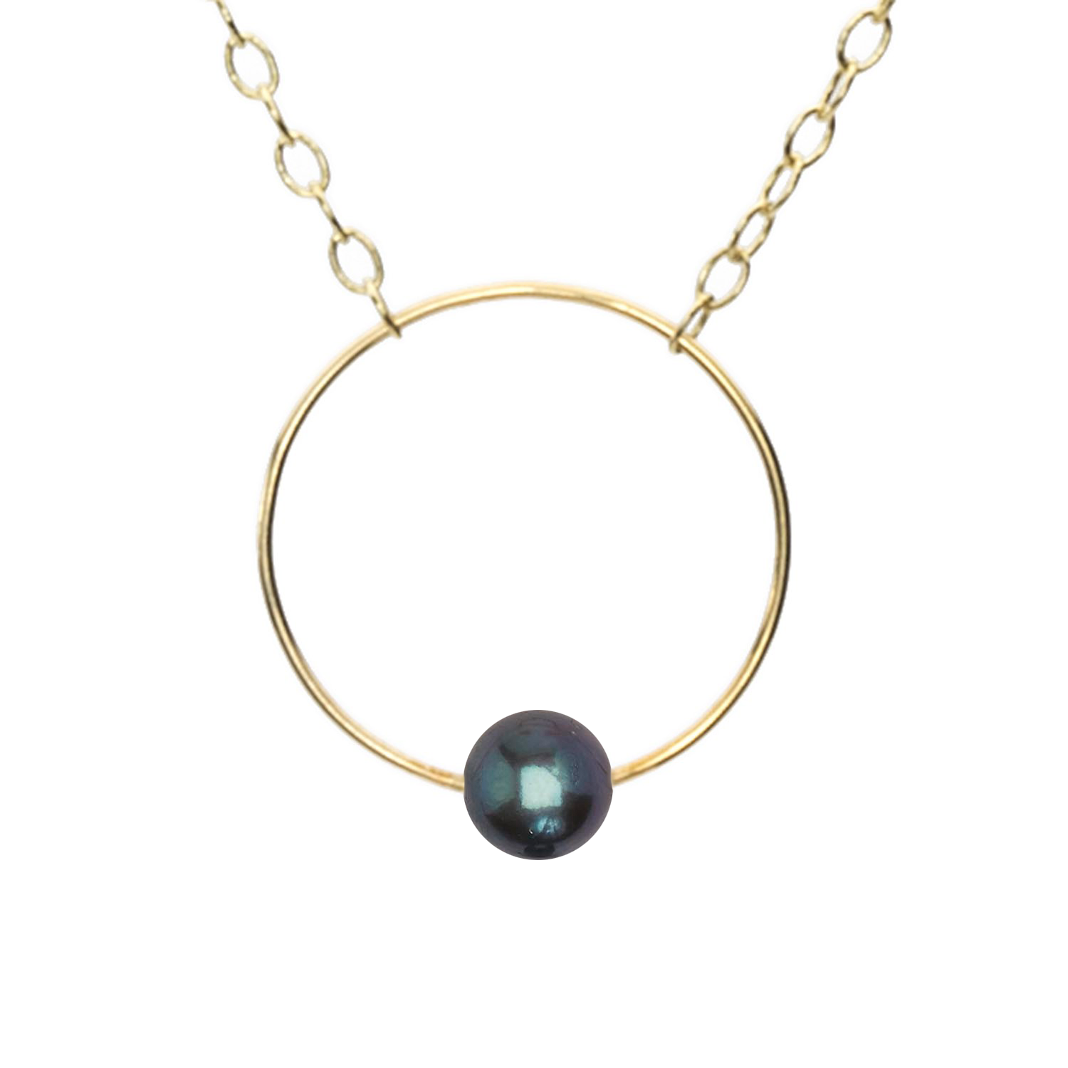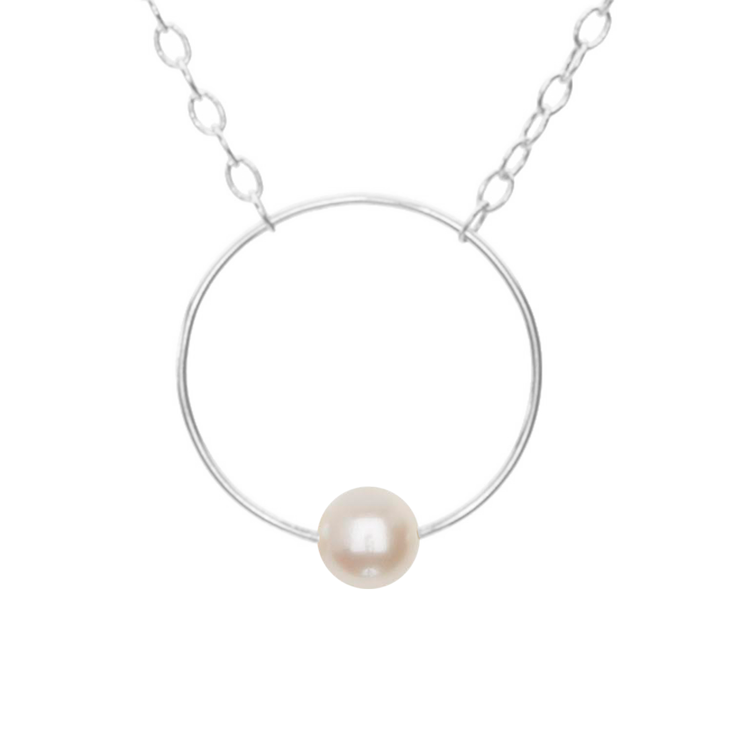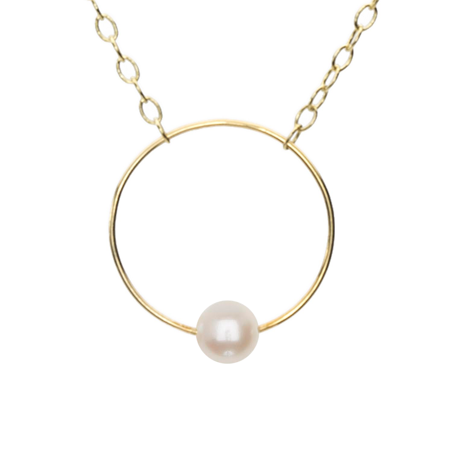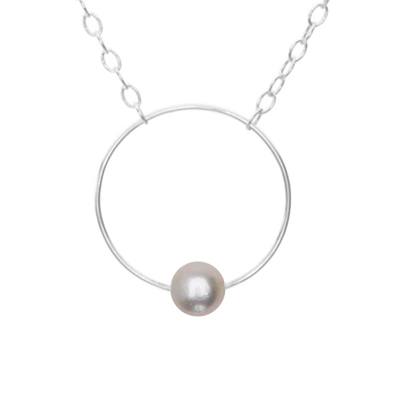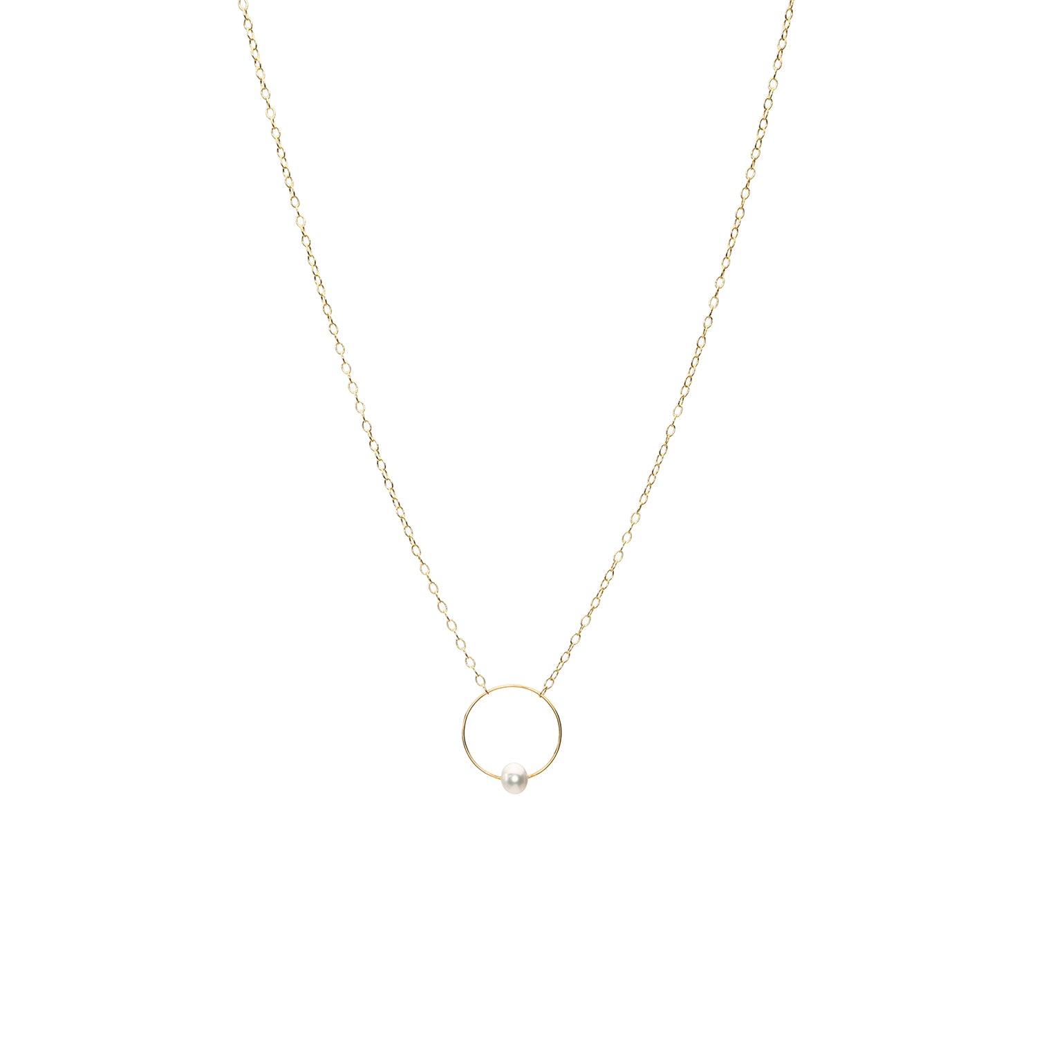 Petite Circle Pendant Necklace with Round Freshwater Pearl