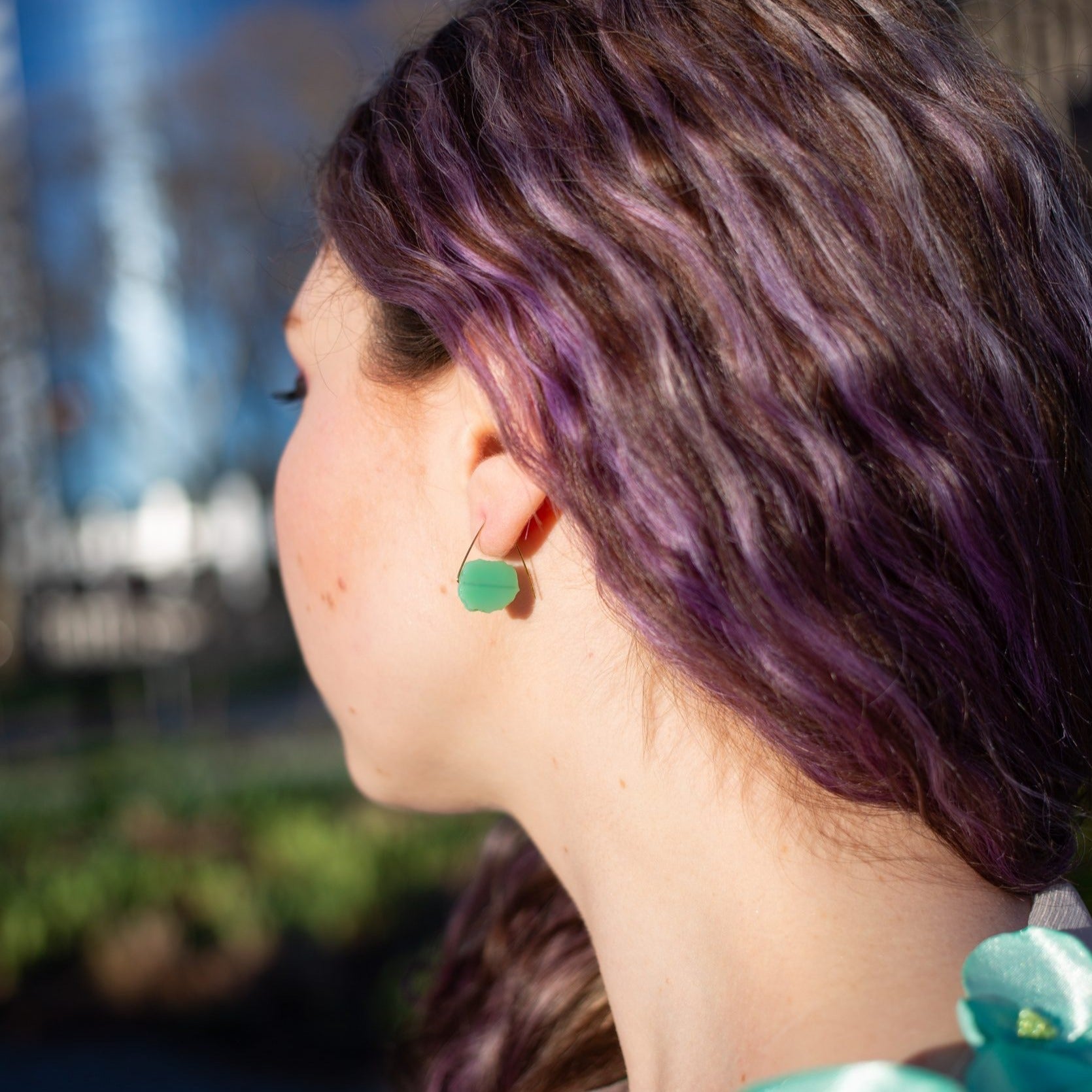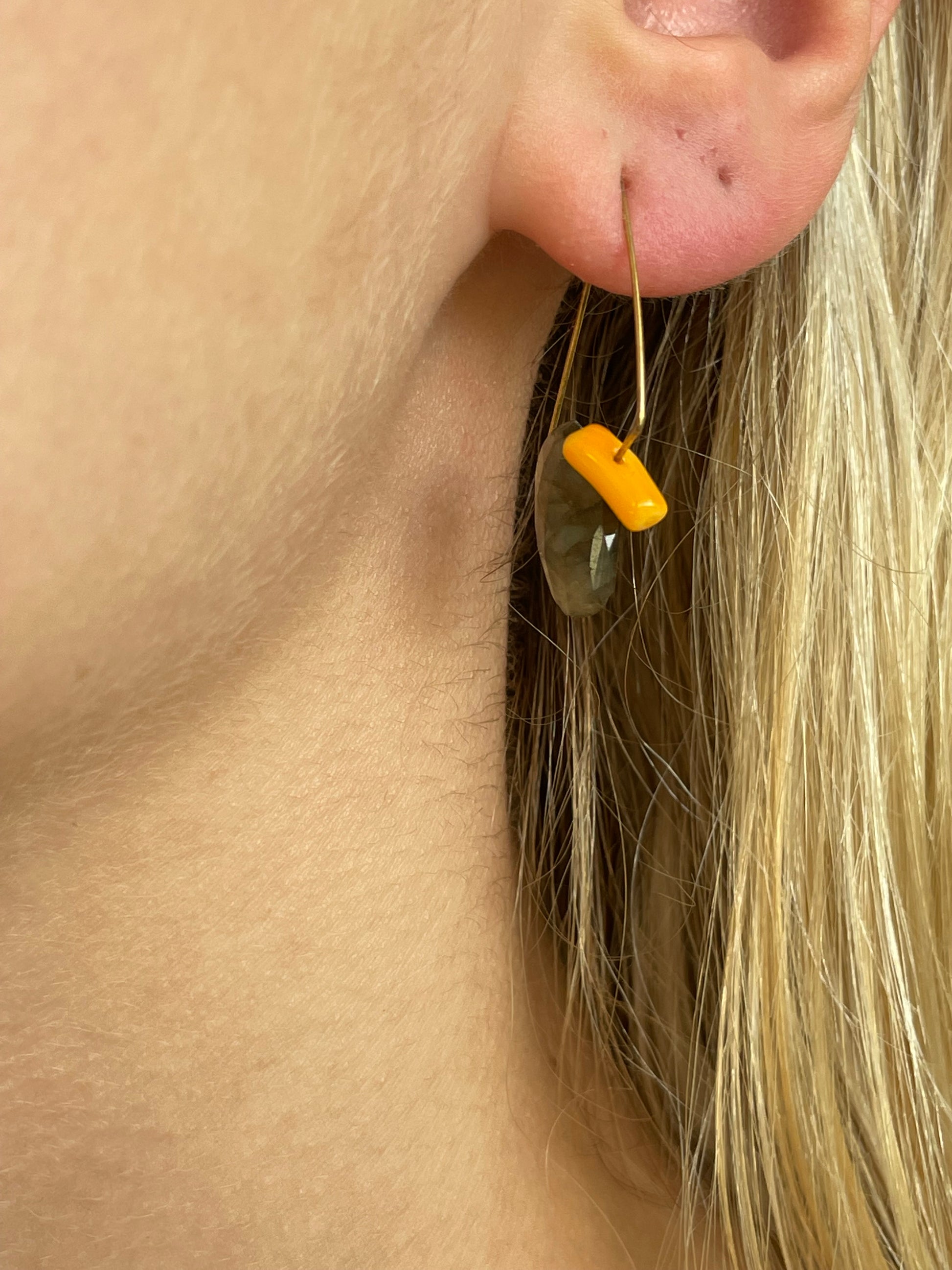 Sliced gemstones showcase its splendorous nature on this minimal pair of earrings. You can see the gorgeous colours highlighted very beautifully– glorious to wear all year round!