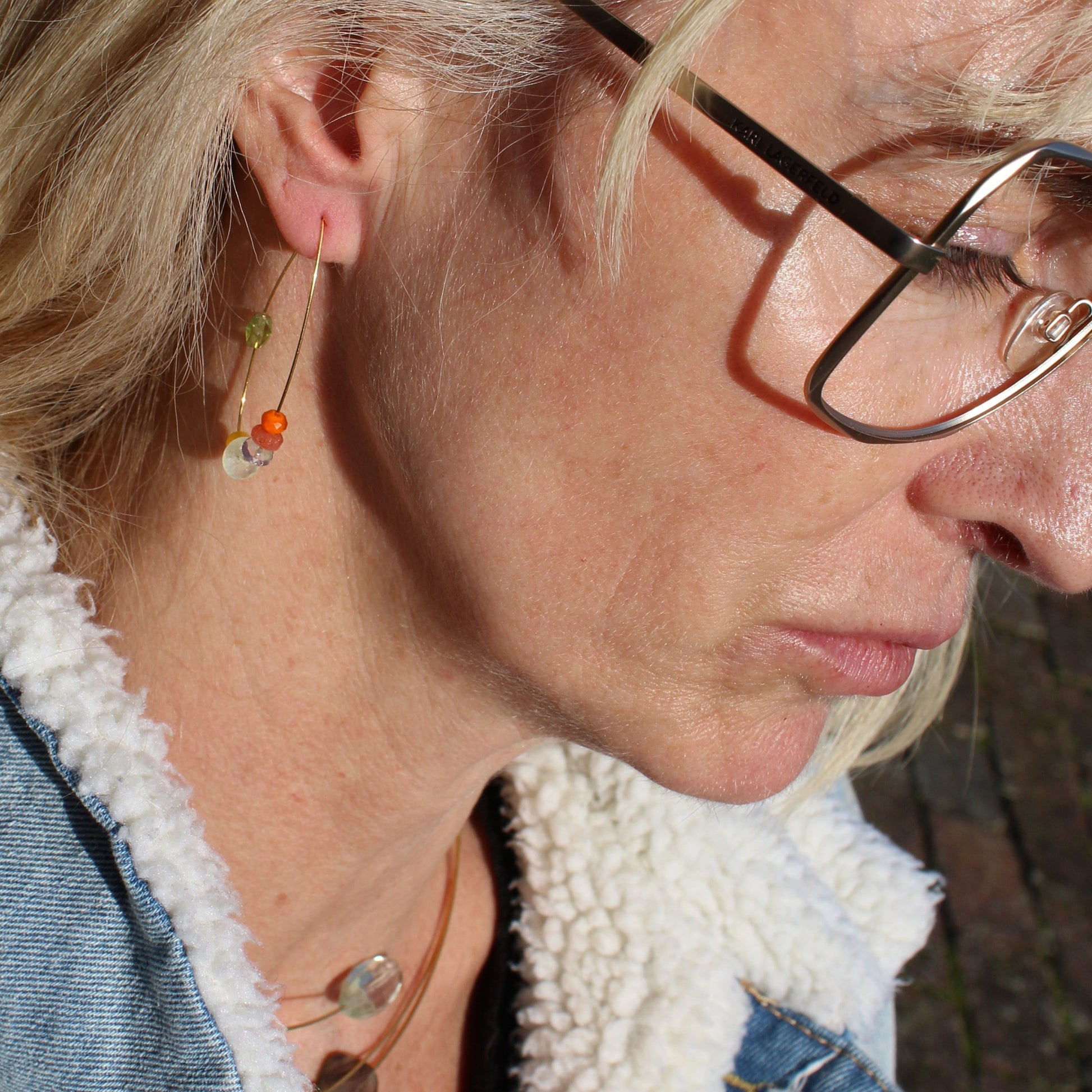 A dazzling pair of earrings whose shapes echo that of some of the gemstones that hang gracefully in between – a perfect addition to any outfit!