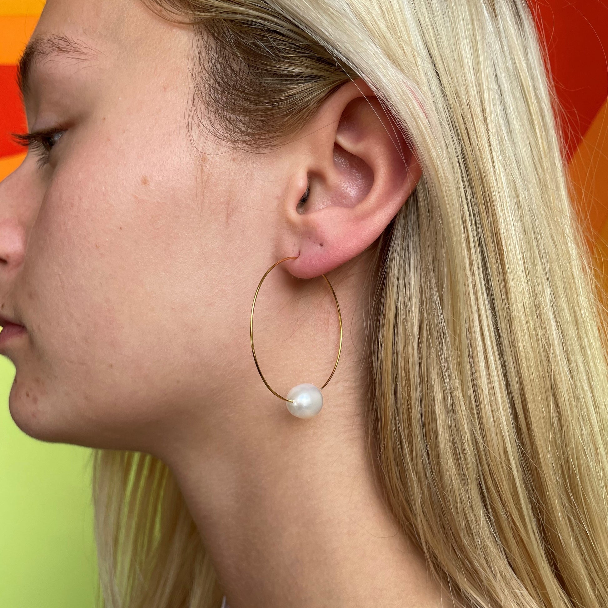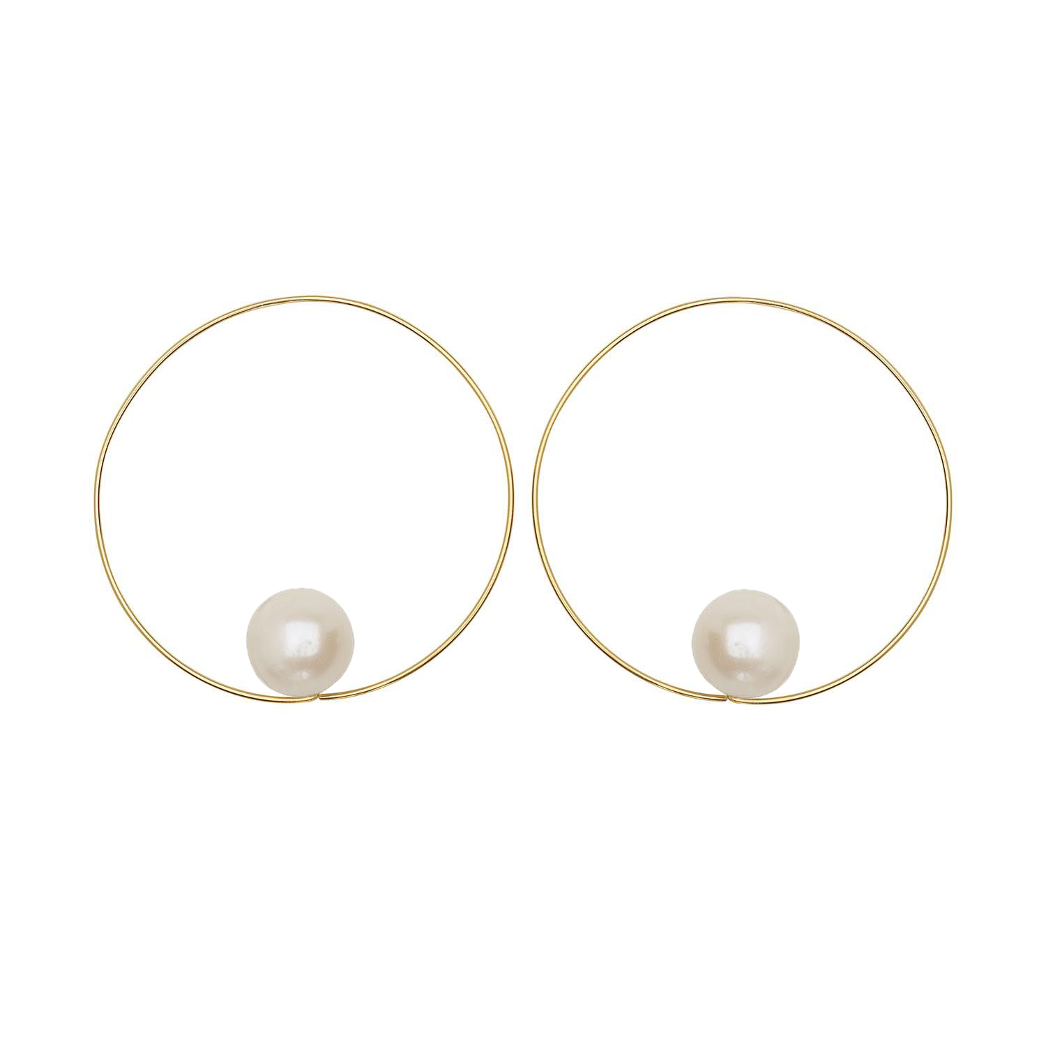 Small Round Hoops with Large Round Freshwater Pearls