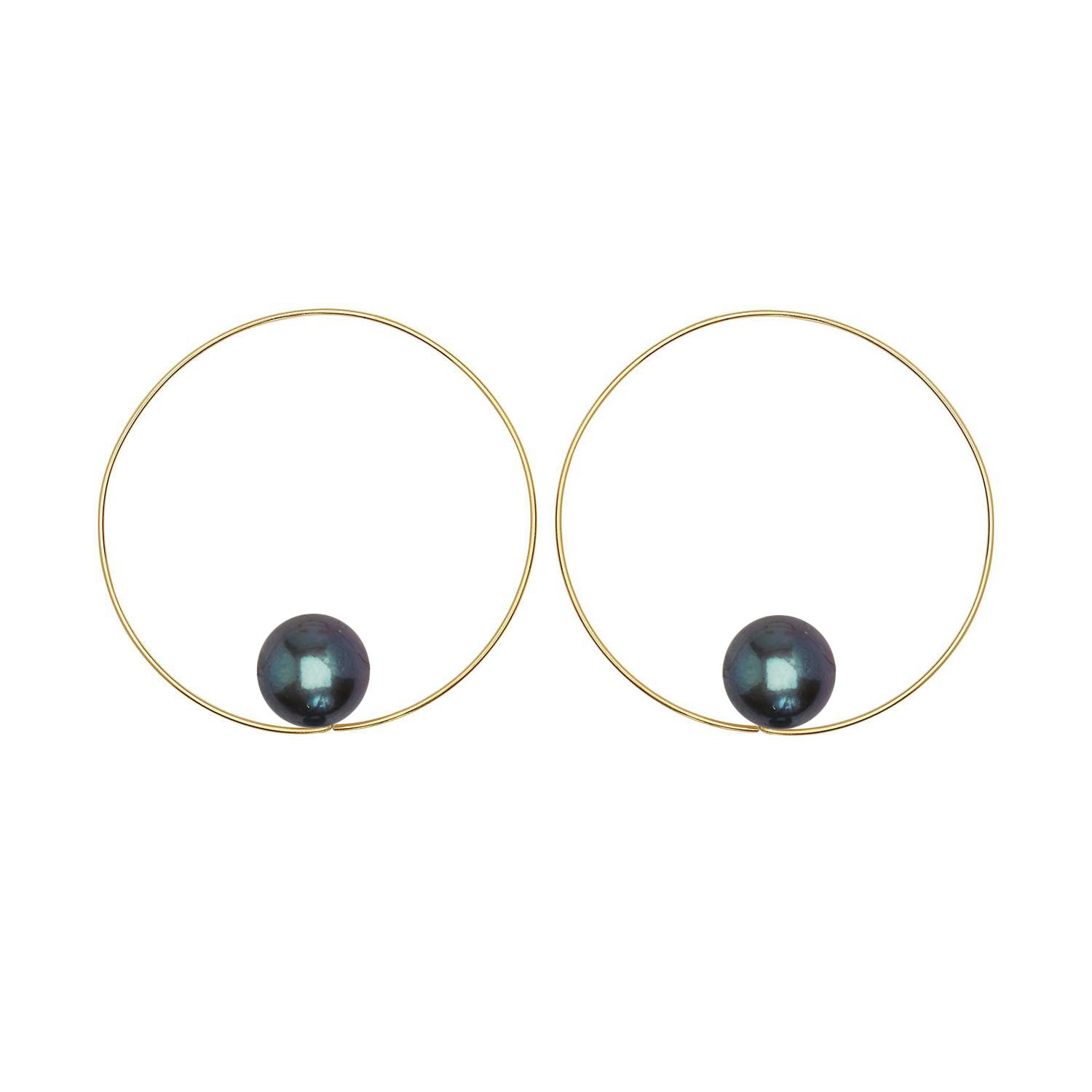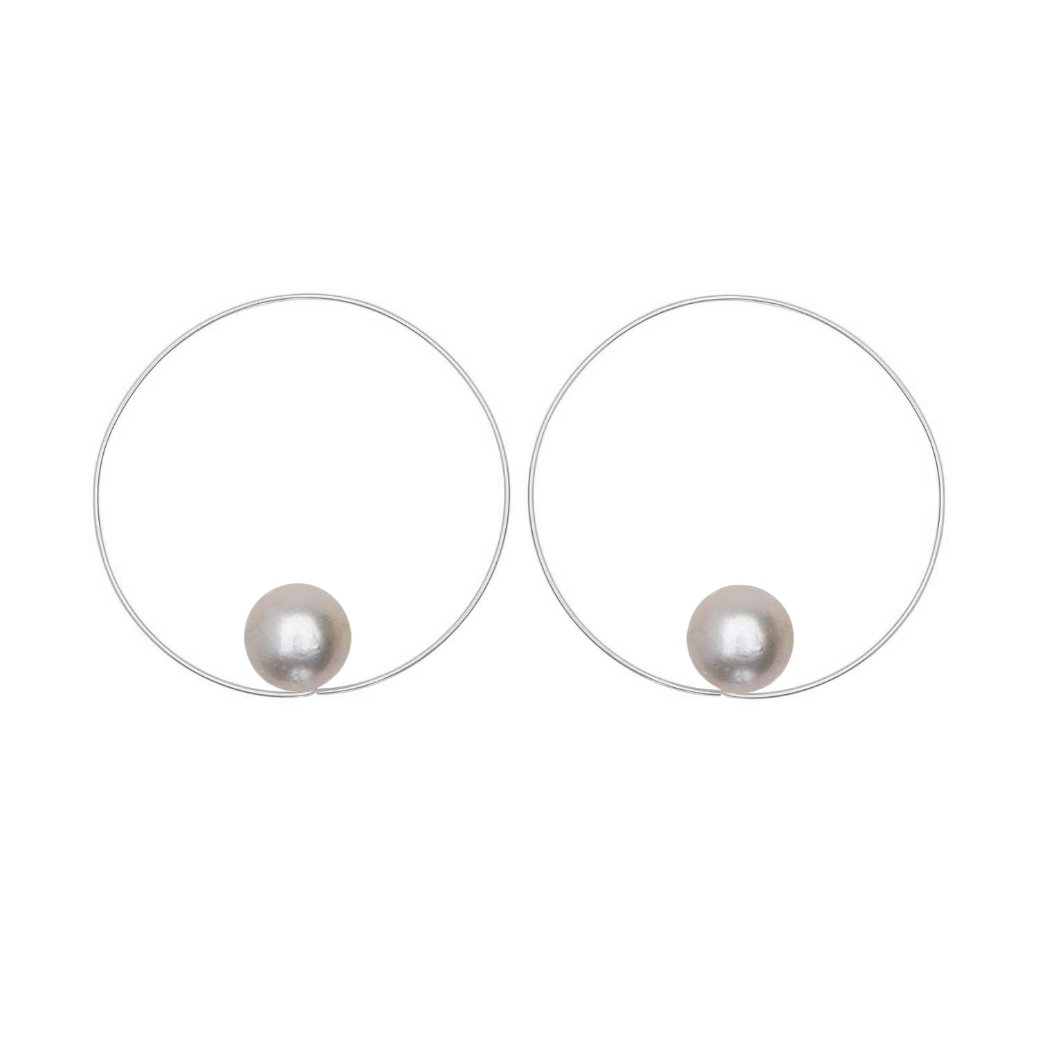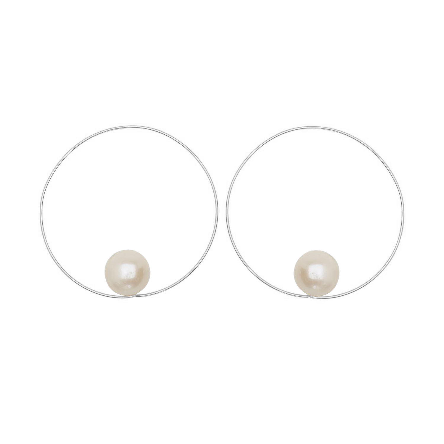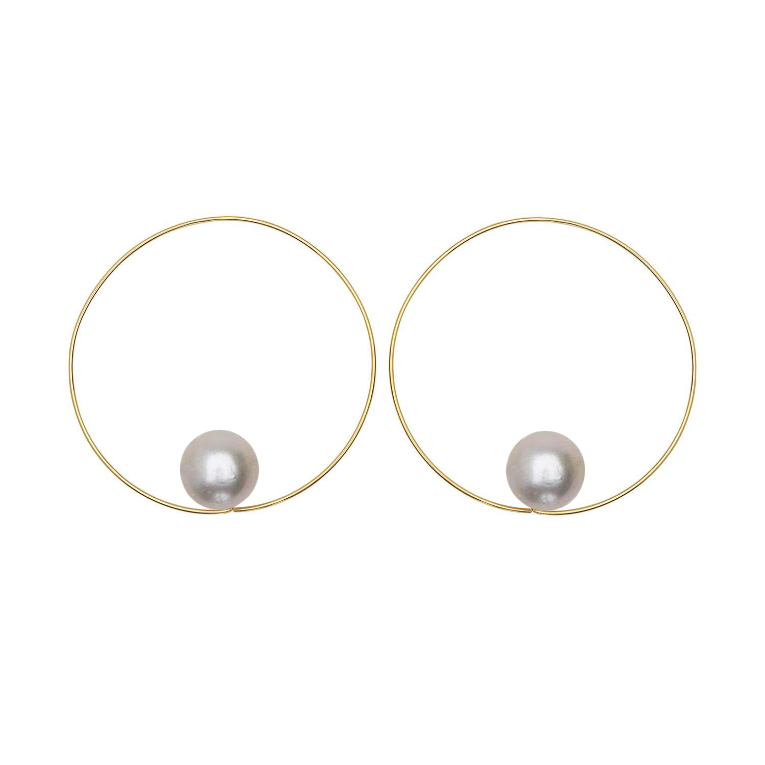 Large lustrous freshwater pearls appear to float in our medium-sized MMJ Signature Hoops - classic hoops for classic style!