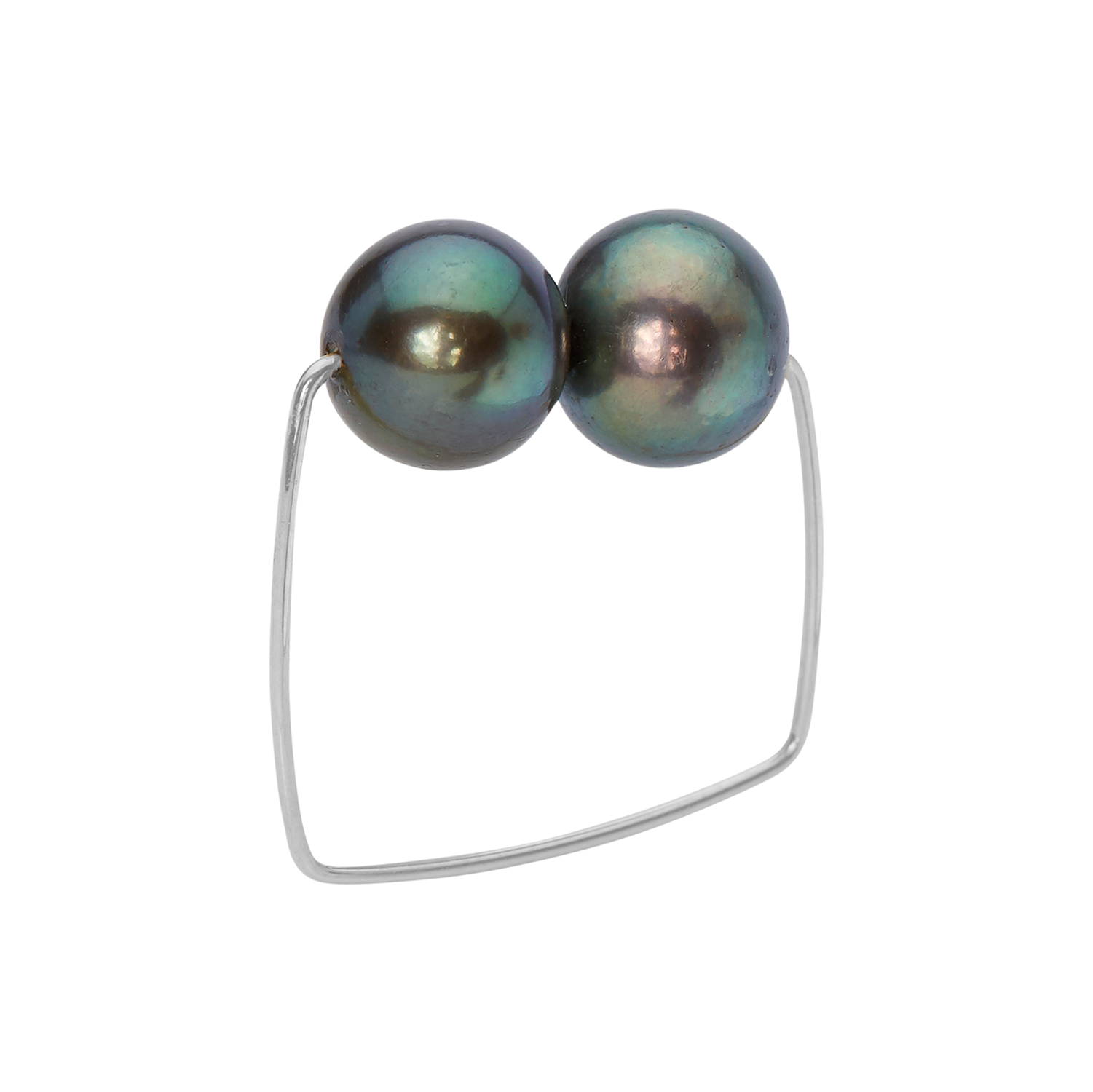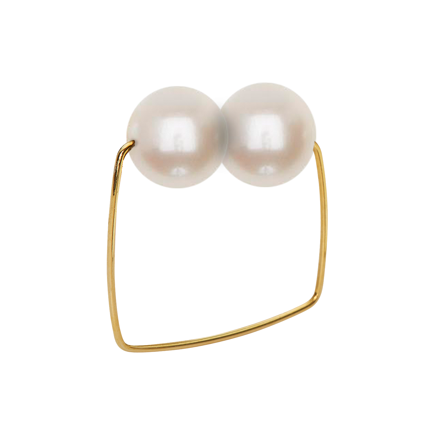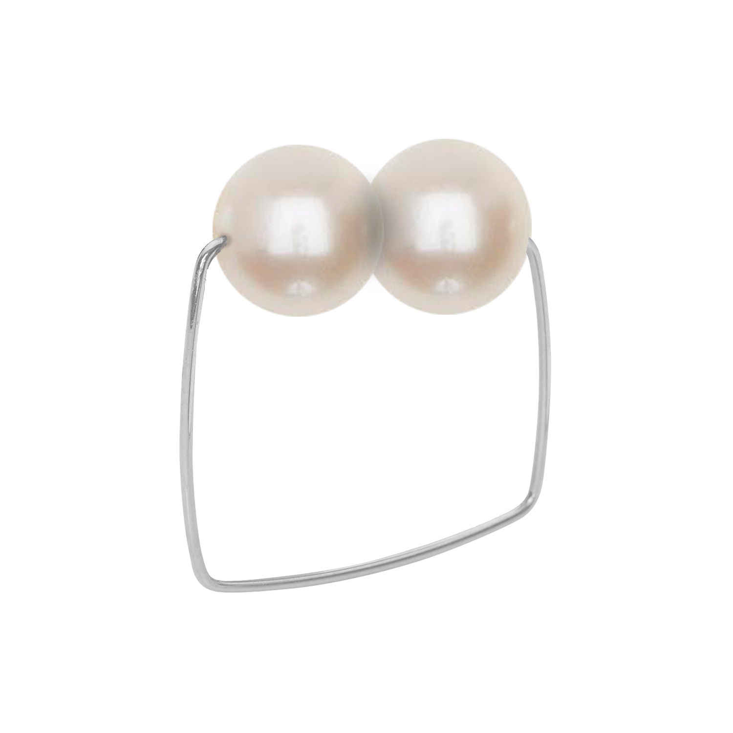 Square Ring with Round Fresh Water Pearls (12mm x 9mm)