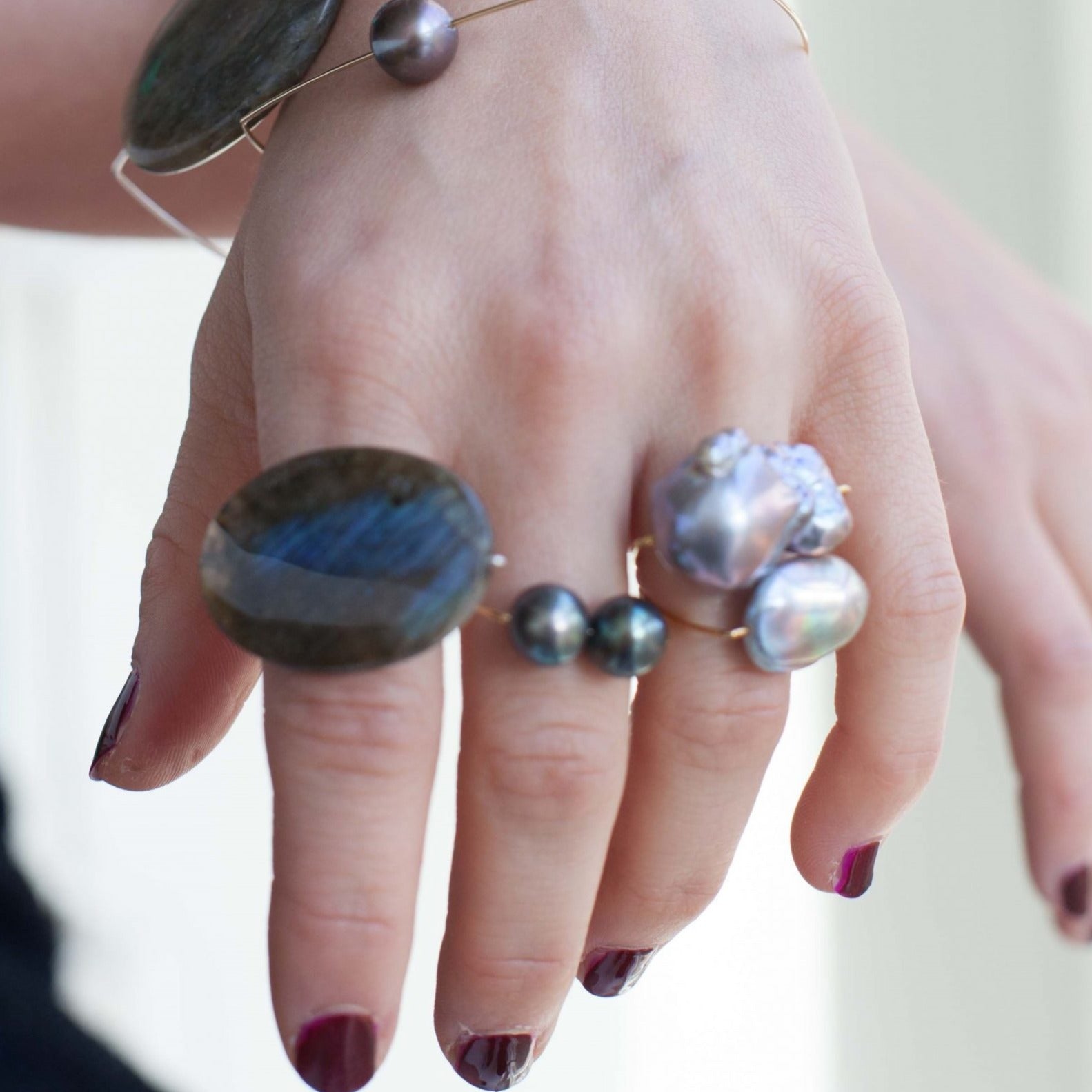 This ring measures 2.5cm in height. The pearls approximately measure between 9mm and 12mm. Available in Small, Medium and Large.