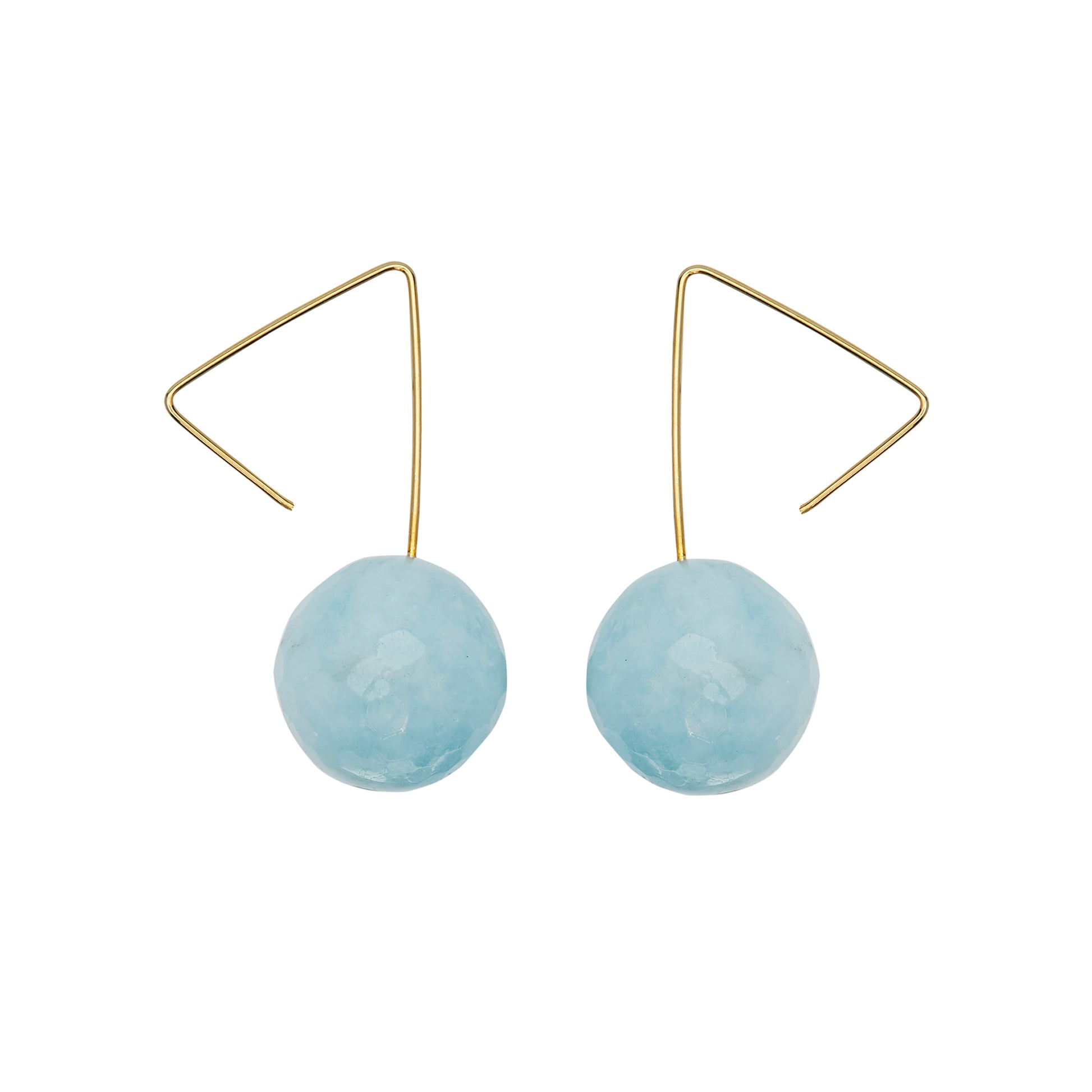 Triangle Twist Earrings with Aquamarine Round