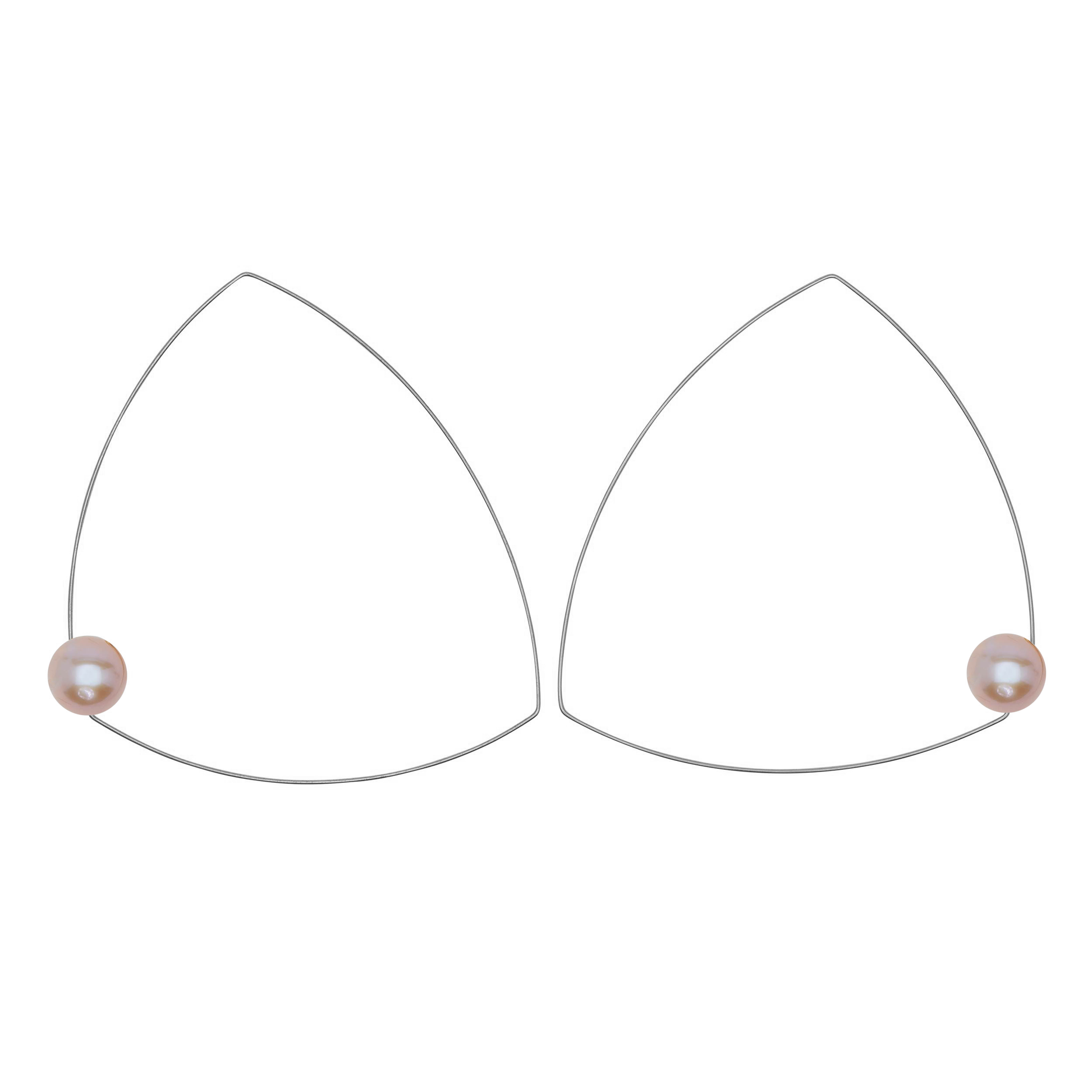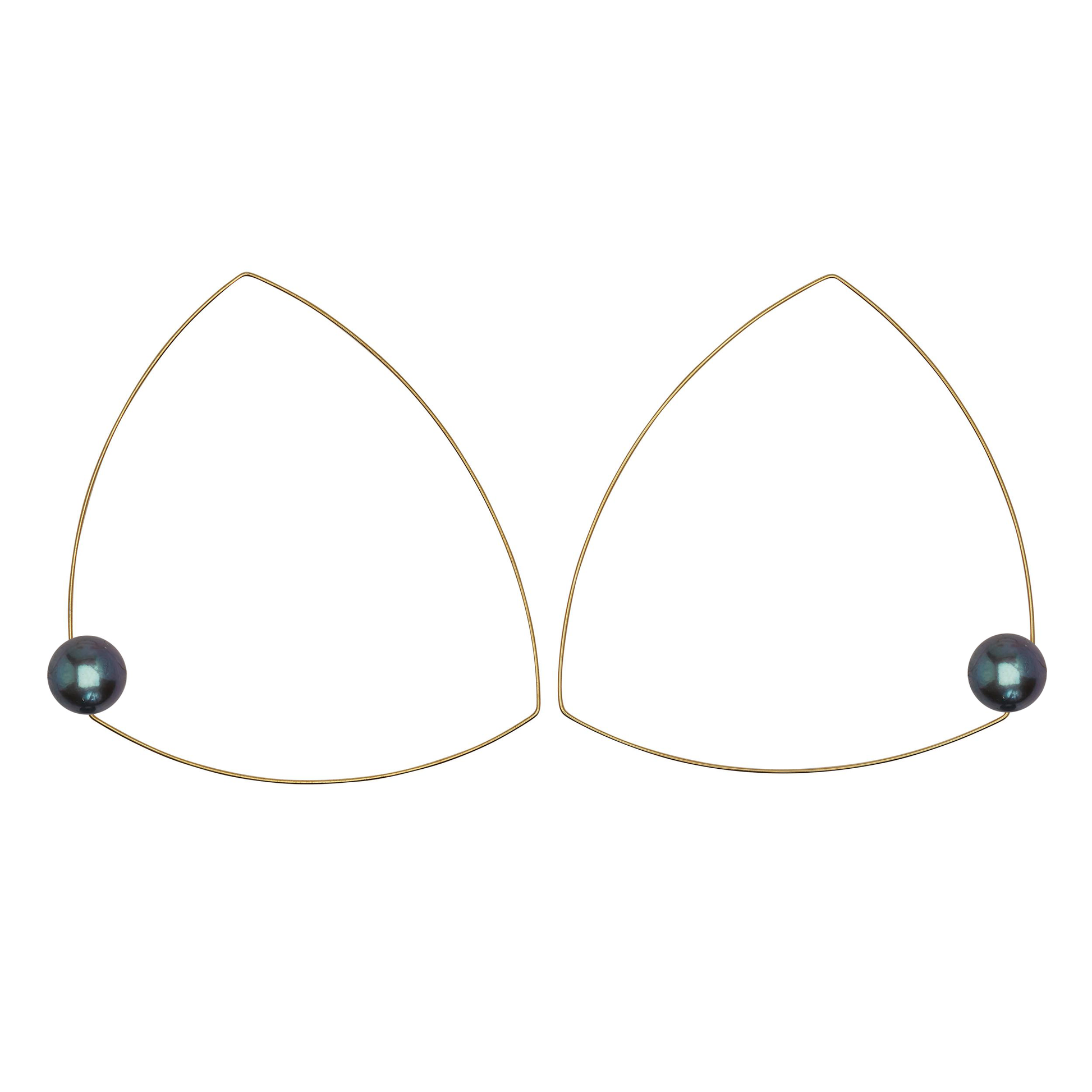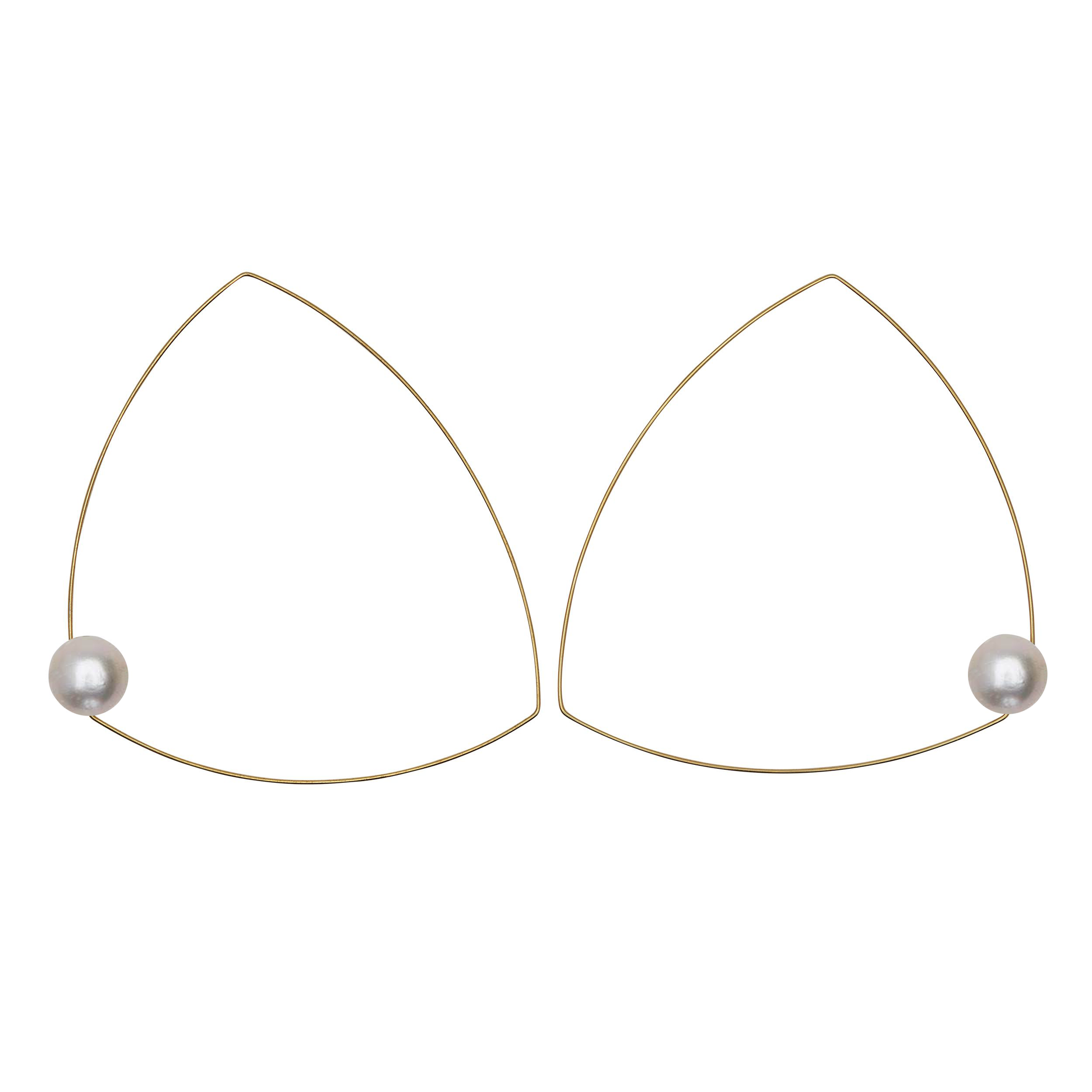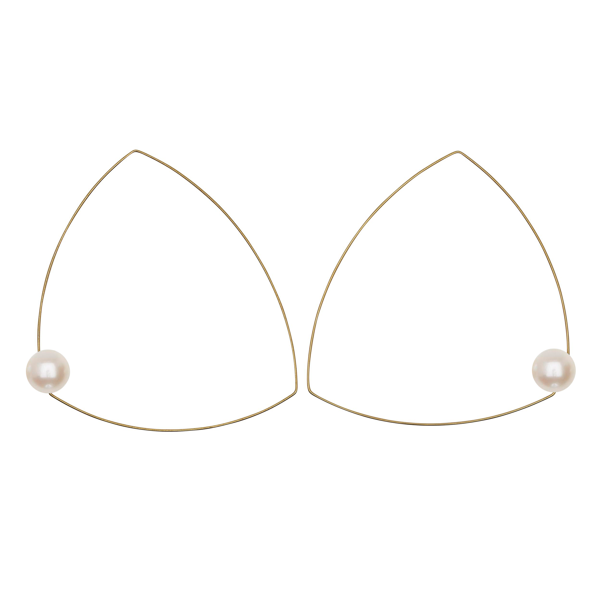 Wide Triangle Earrings with Round Fresh Water Pearl (12mm)
