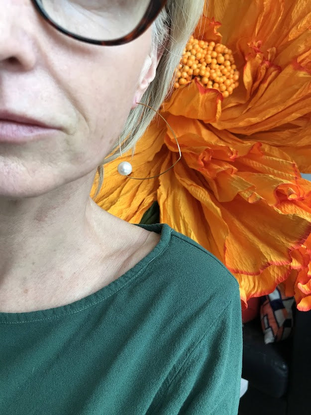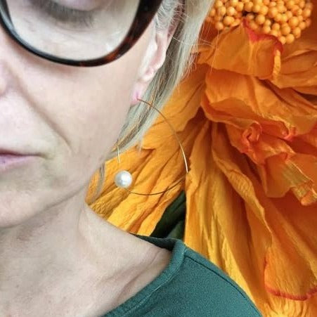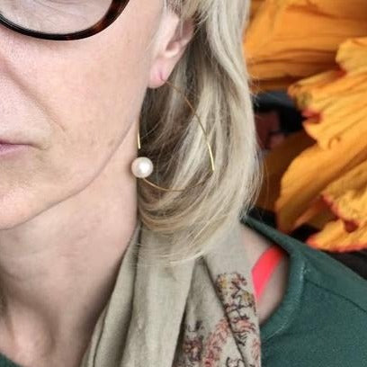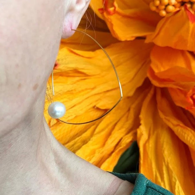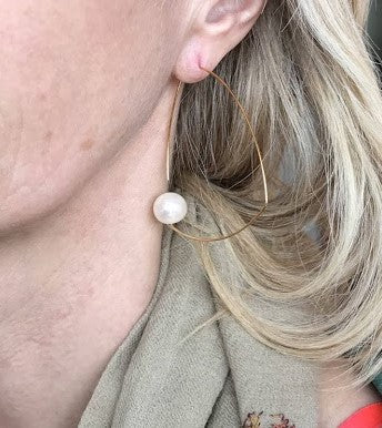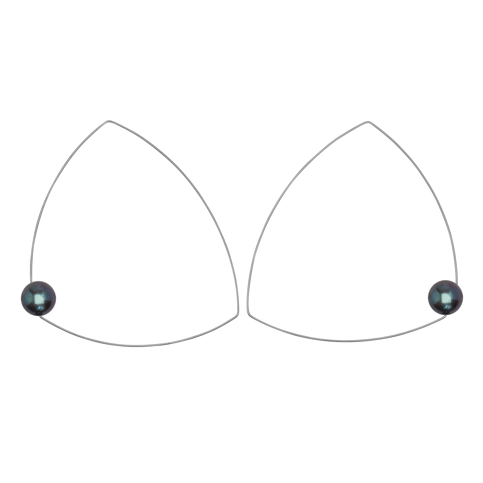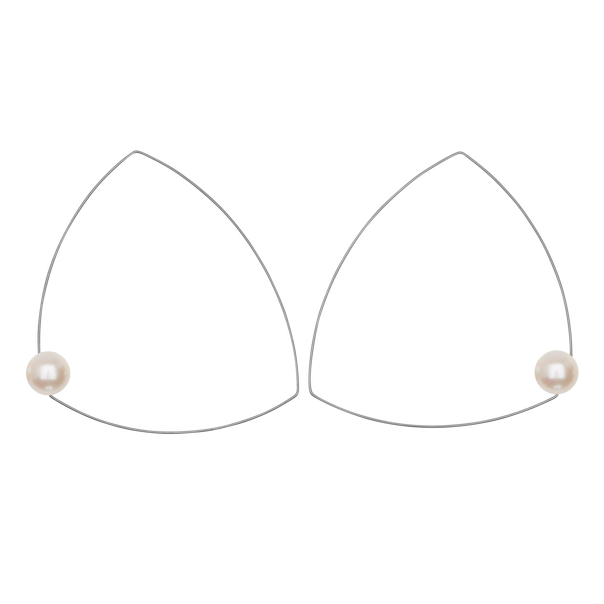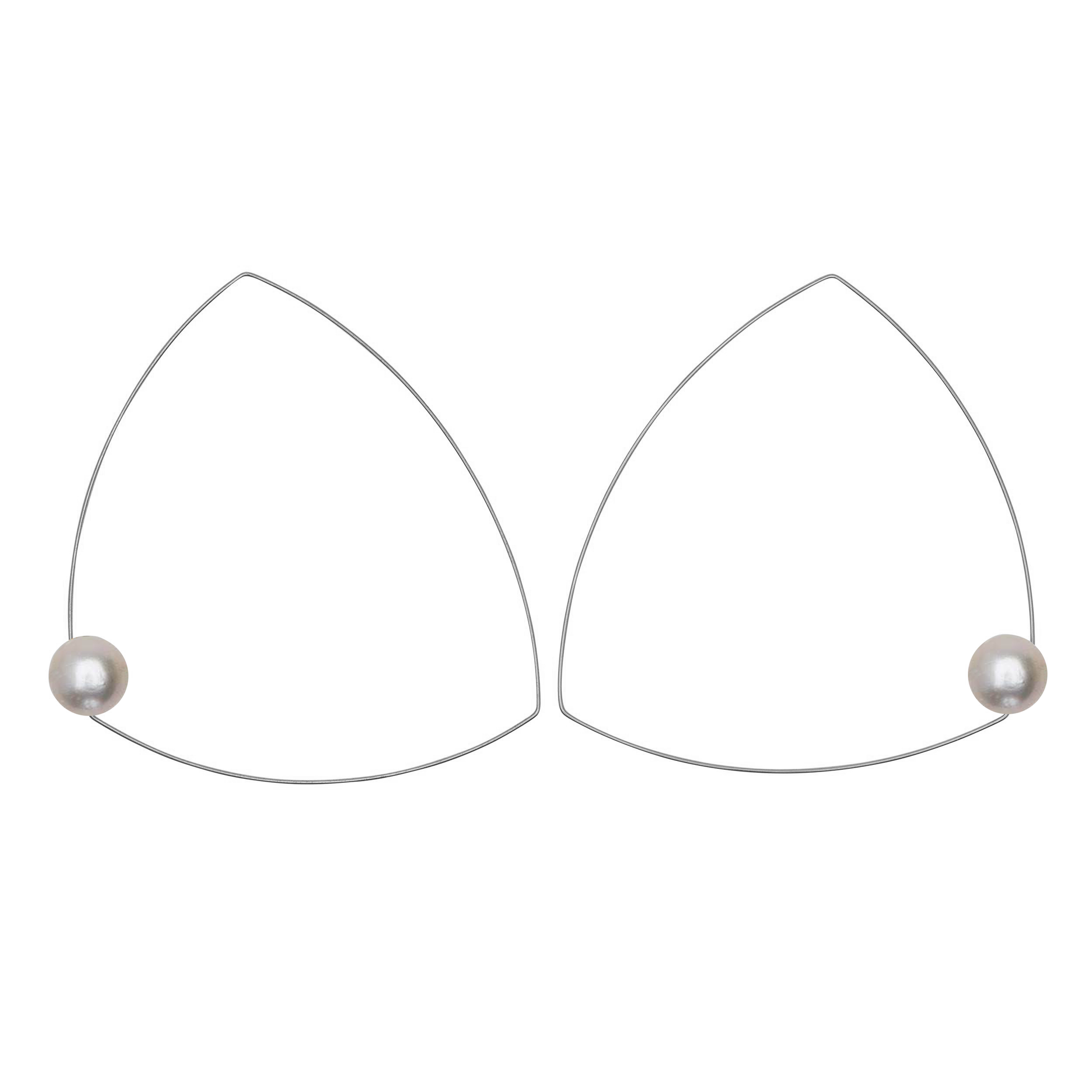 Wide Triangle Earrings with Round Fresh Water Pearl (12mm)