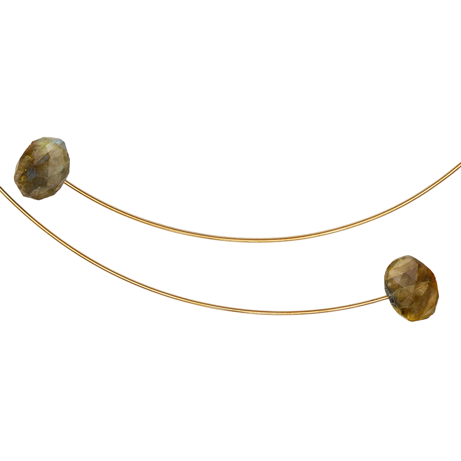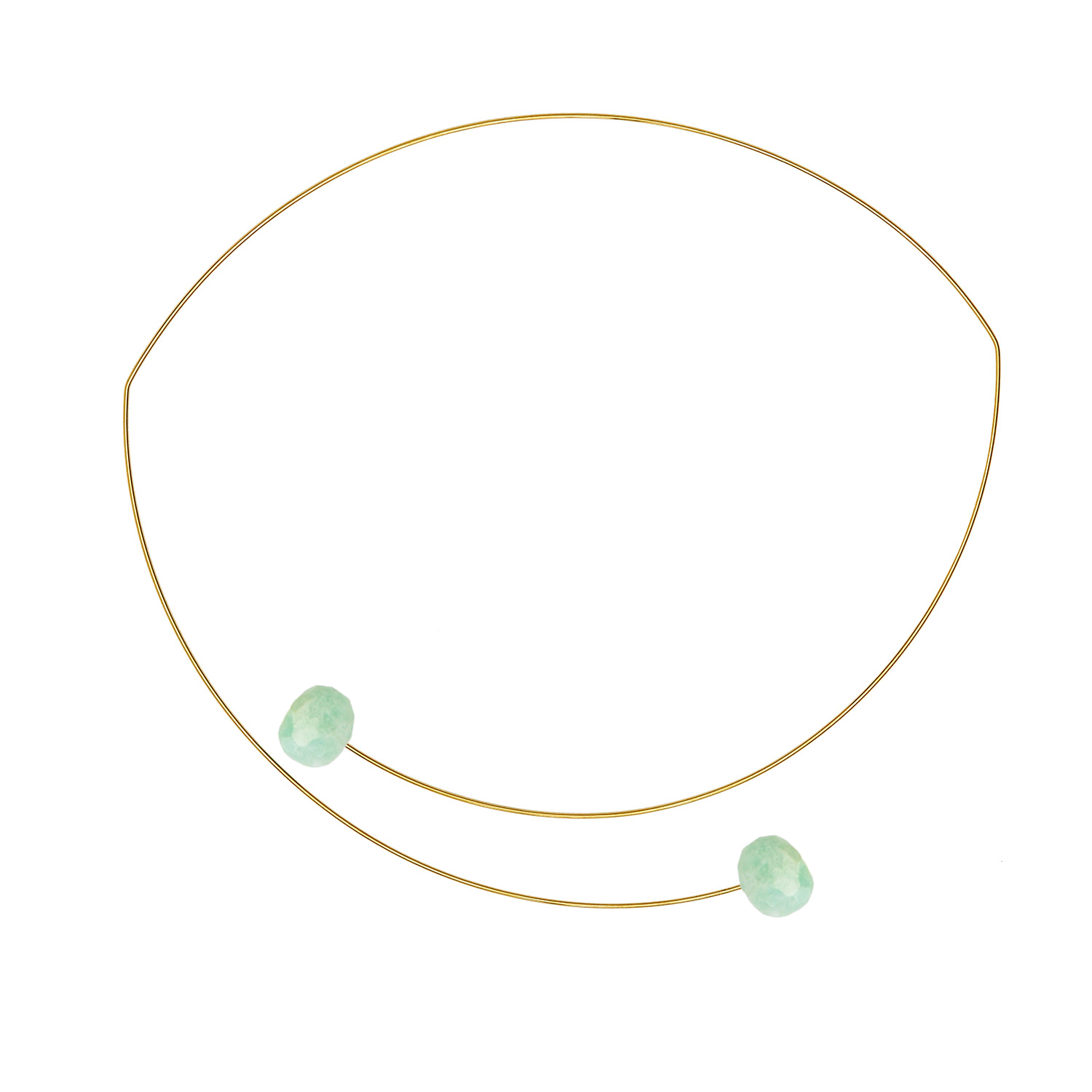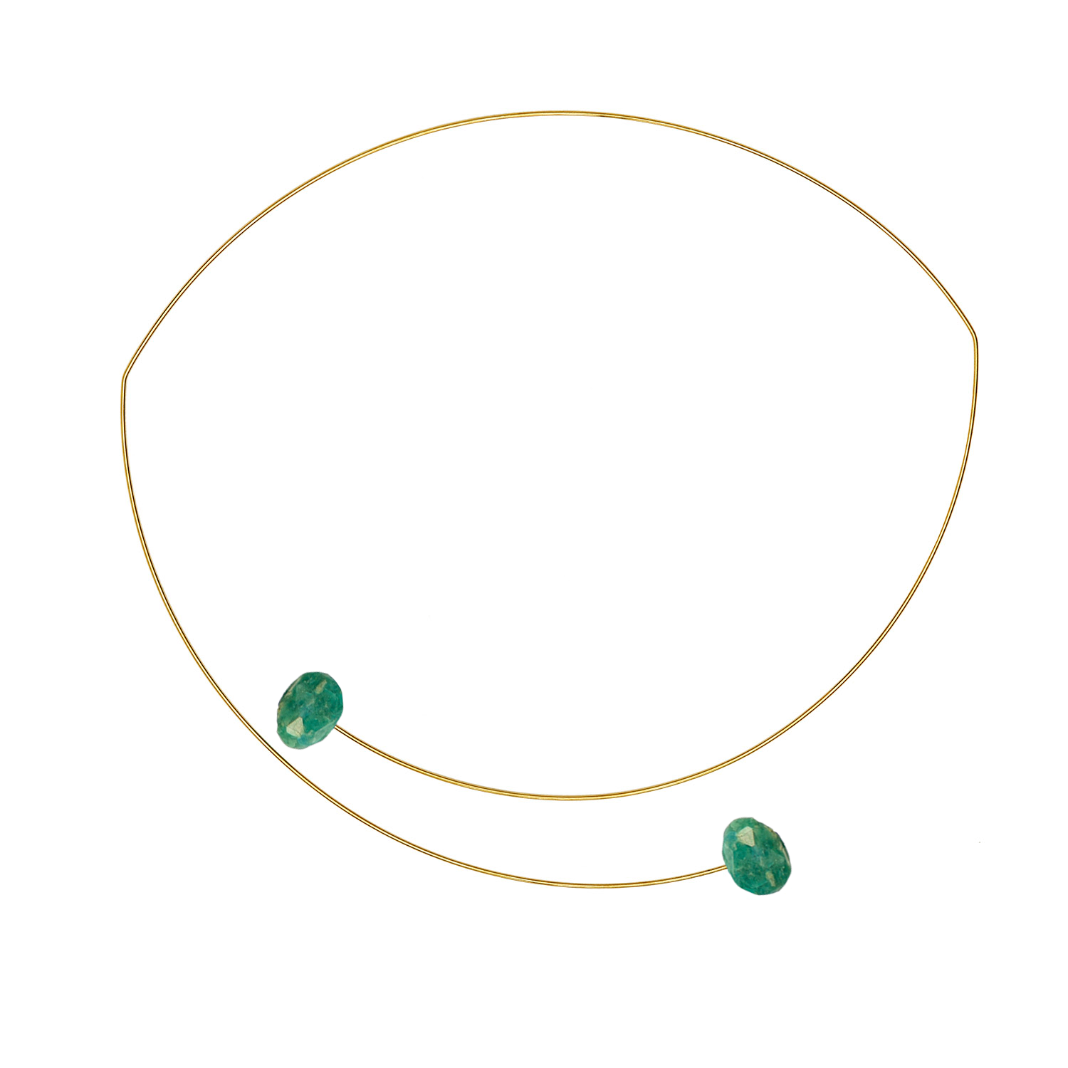 Bright and bold faceted hand-cut gemstones sit asymmetrically around the decolletage in this angular design. Experiment wearing it in different positions for other looks, a great versatile neck piece!