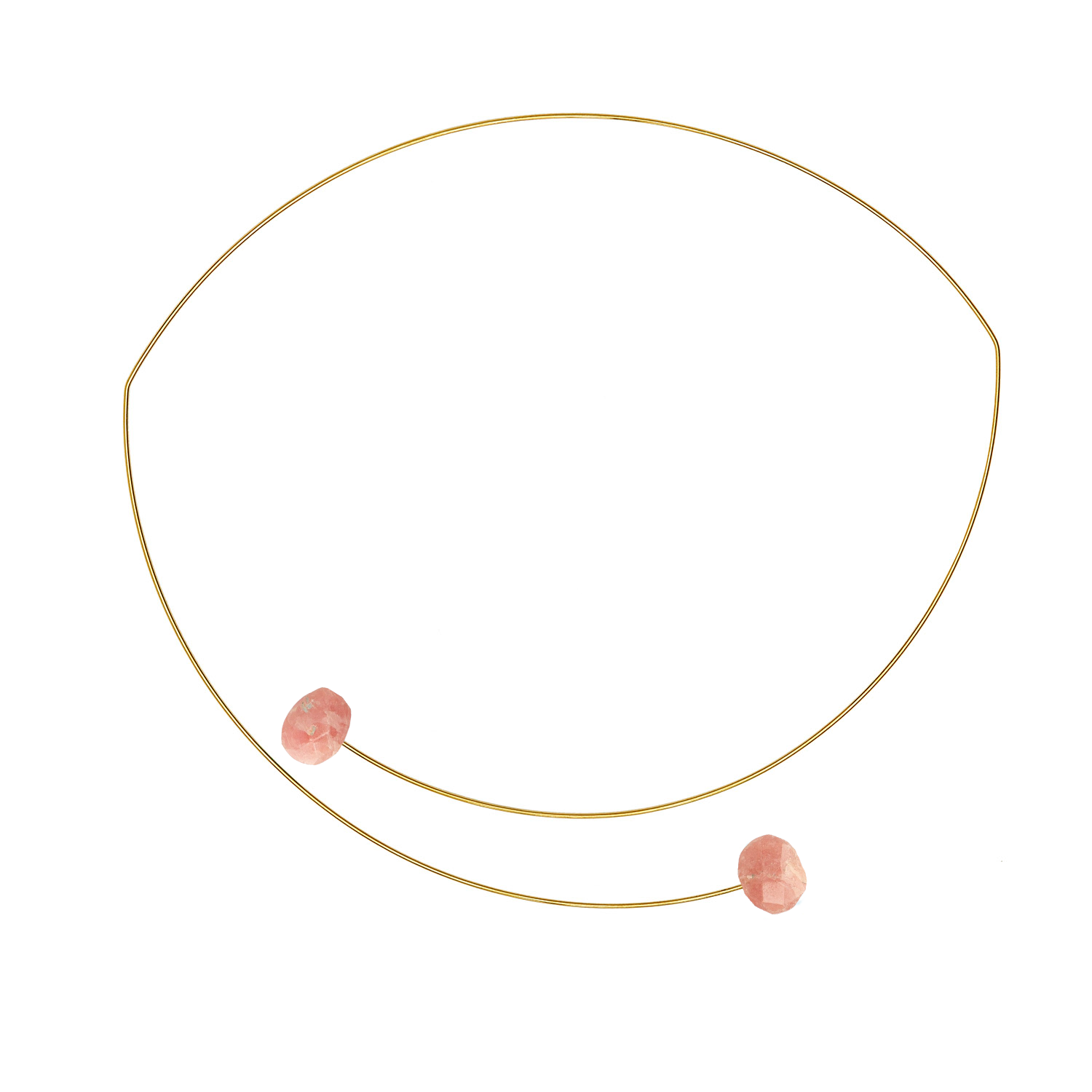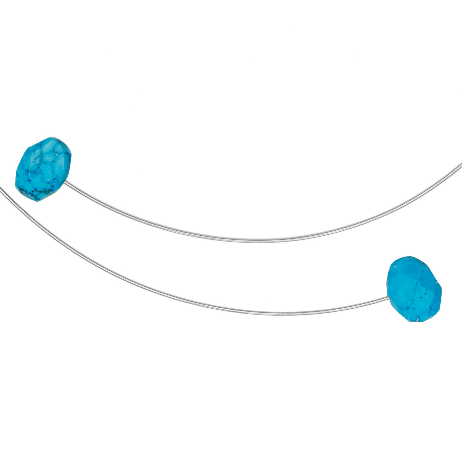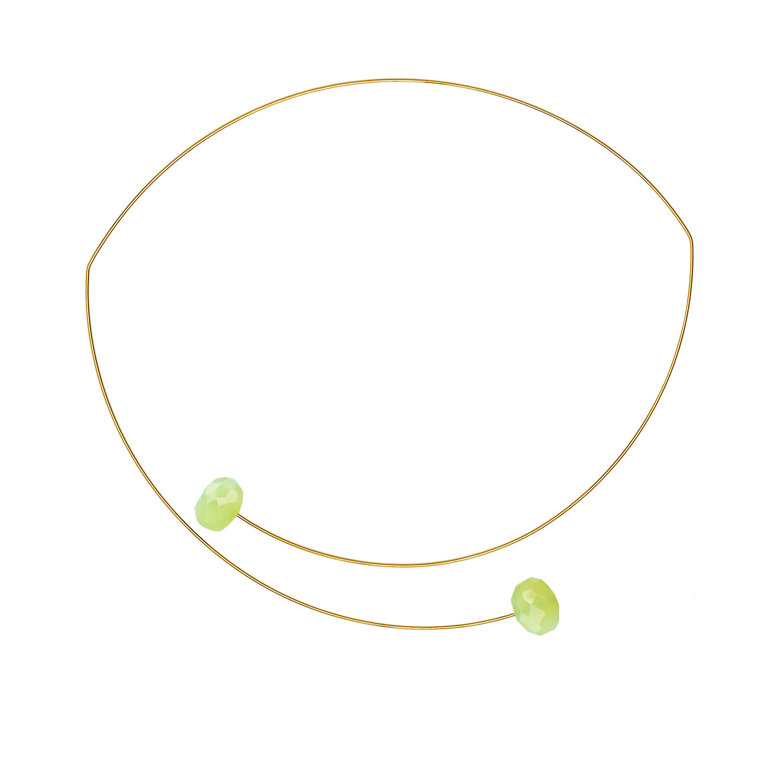 Bright and bold faceted hand-cut gemstones sit asymmetrically around the decolletage in this angular design. Experiment wearing it in different positions for other looks, a great versatile neck piece!